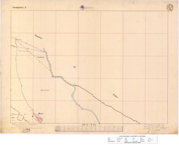 Descrizione contenuto: Delimitazione di un terreno comunale, di terreni privati e centro abitato |