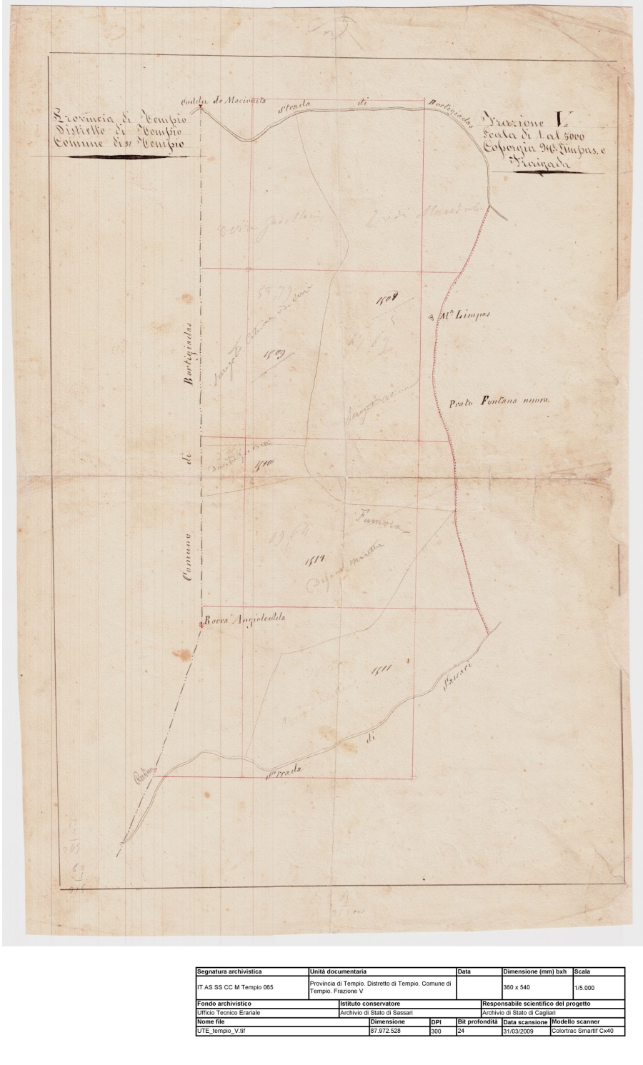 Denominazione: Provincia di Tempio. Distretto di Tempio. Comune di Tempio. Frazione V |