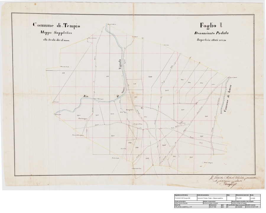 Denominazione: Comune di Tempio. Foglio J. Mappa suppletiva |
