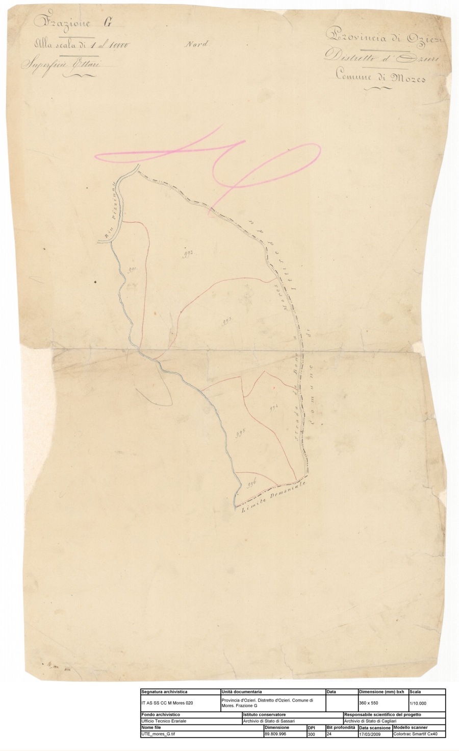 Denominazione: Provincia d'Ozieri. Distretto d'Ozieri. Comune di Mores. Frazione G |