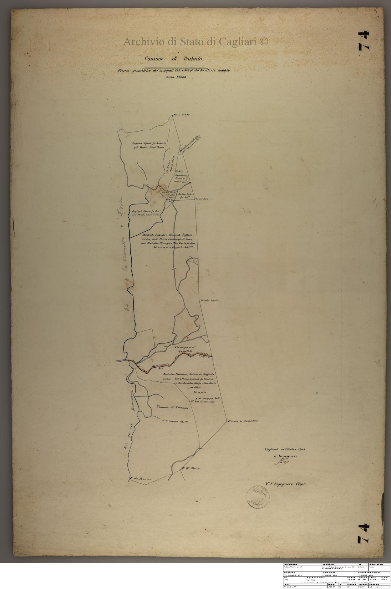 Denominazione: Comune di Teulada. Piano geometrico dei mappali 845 e 846 parte del territorio di suddetto |