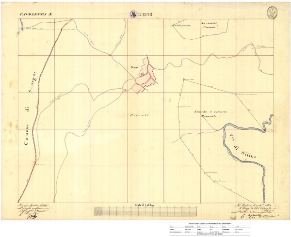 Descrizione contenuto: Delimitazione del terreno demaniale "Benardu is cuccurus", del terreno comunale "Su zinniviri", di terreni privati e centro abitato |