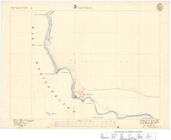 Descrizione contenuto: Delimitazione di terreni privati e centro abitato di Porto Scuso con la tonnara |