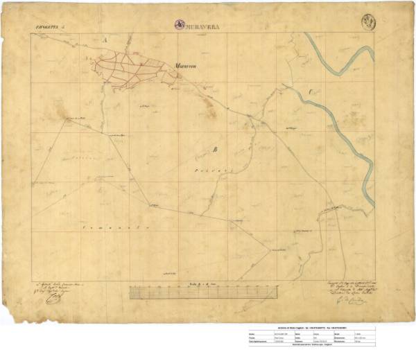 Descrizione contenuto: Delimitazione di un terreno comunale, di terreni privati e centro abitato |