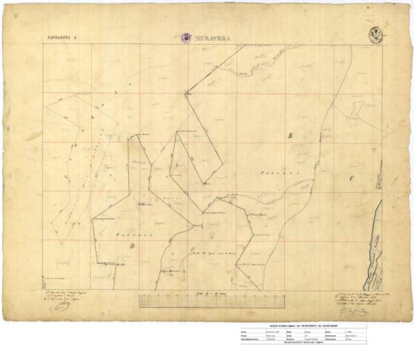 Descrizione contenuto: Delimitazione del terreno demaniale ["della Torre"], delle peschiere demaniali "Padrionas", di un terreno comunale con le porzioni "Accu de Sollastu" e "Monte Zippiri e accu de Senni", del terreno comunale ["Pru Mari"], dei terreni privati ["Seni"] e di terreni privati |