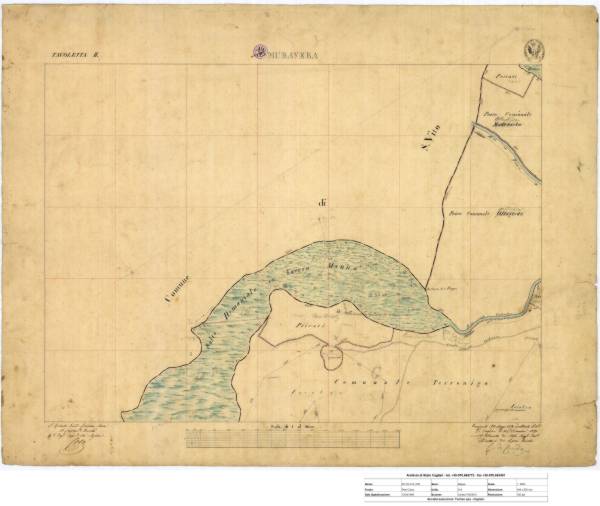 Sulla mappa sono presenti le seguenti annotazioni: Sono indicati i tipi di terreno: incolto, pascolo cespugliato, bosco d'ontani. Nei terreni privati č indicata la presenza di un chiuso cno il nome del proprietario. Nel terreno comunale sono presenti nomi di persona |