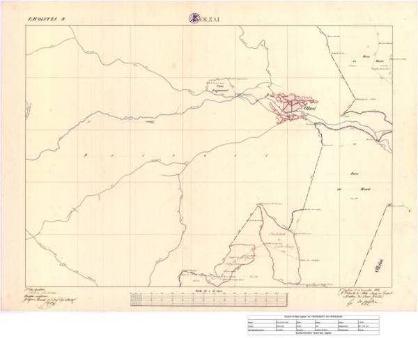 Descrizione contenuto: Delimitazione del terreno demaniale "su Monti", del terreno comunale "Lugunneri", di terreni privati e centro abitato |