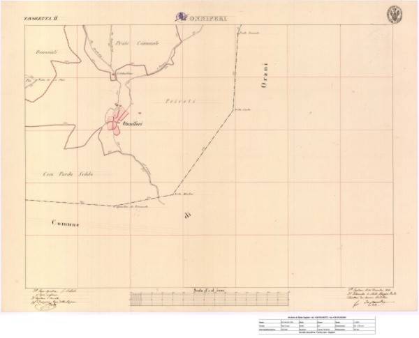 Descrizione contenuto: Delimitazione di terreni demaniali, del terreno comunale "Pardu Siddu", del Prato comunale, di terreni privati e centro abitato |