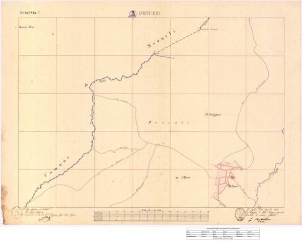 Descrizione contenuto: Delimitazione di un terreno comunale, di terreni privati e centro abitato |