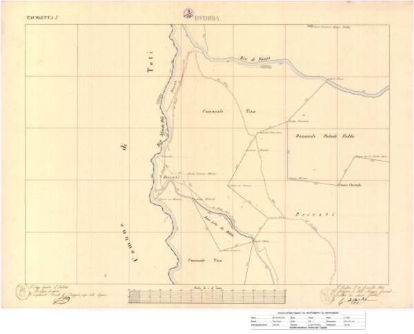 Descrizione contenuto: Delimitazione dei terreni demaniali ["Pizzuri"], "Padenti Foddis" e "Litu de Bidda", del terreno comunale "Tino" e di terreni privati |