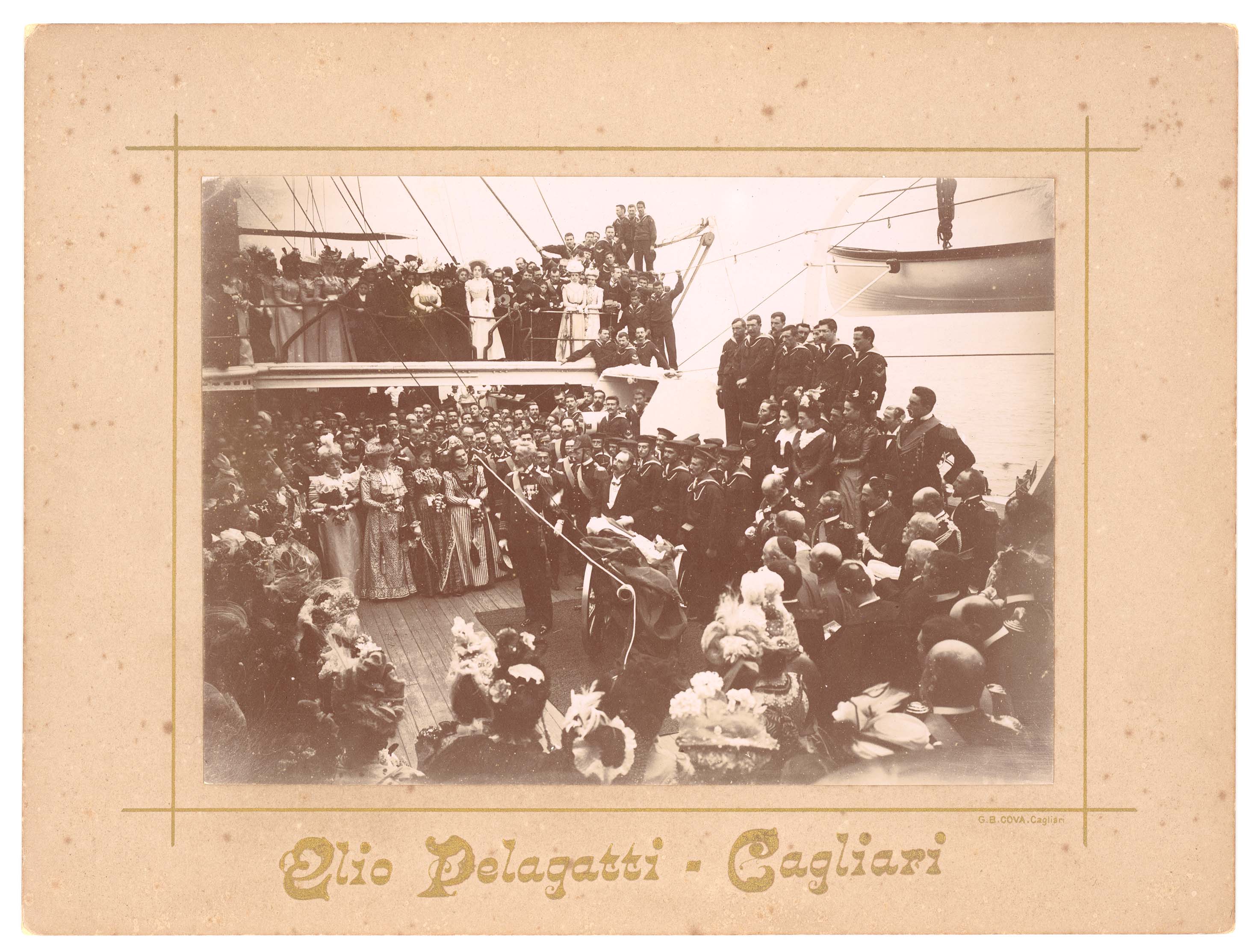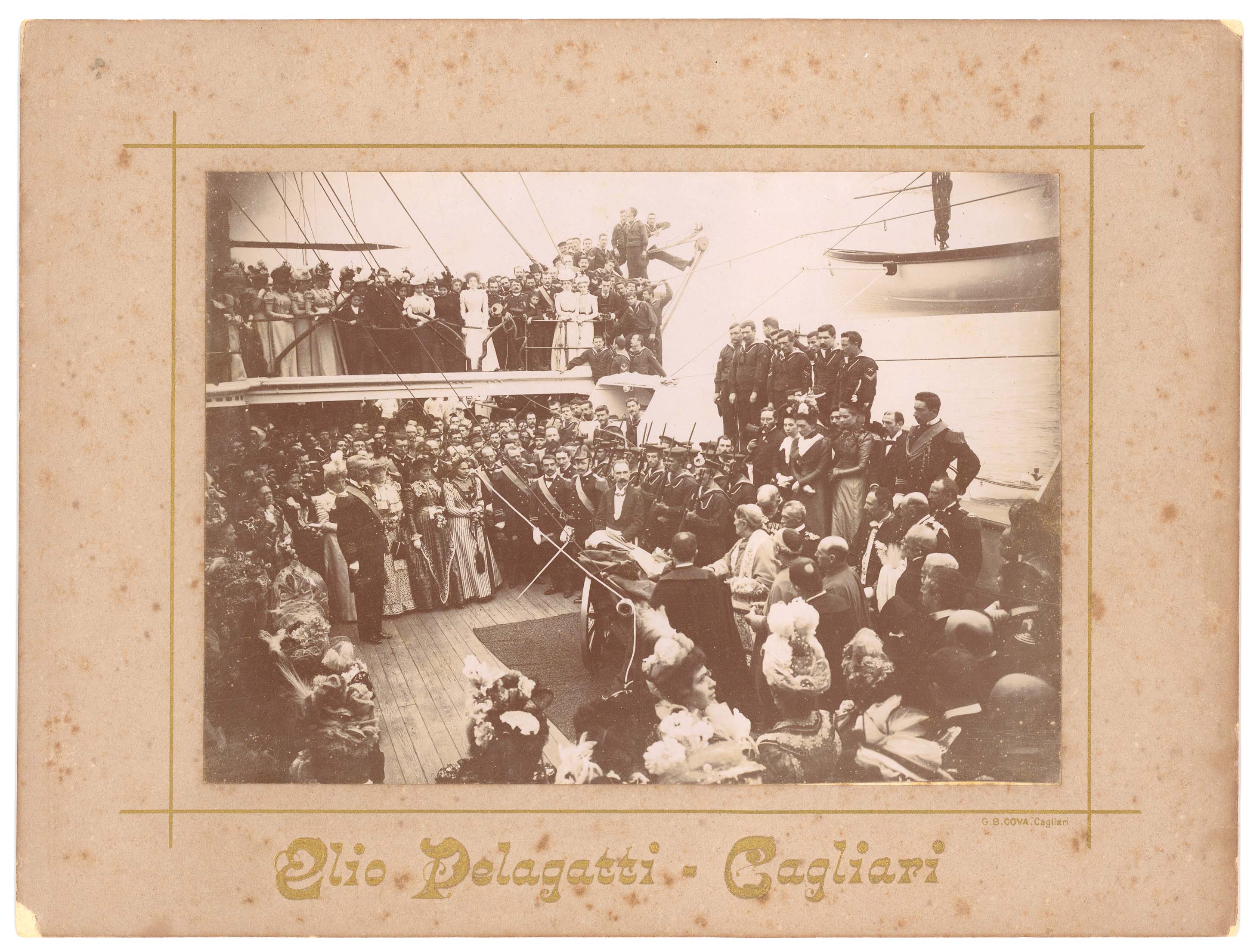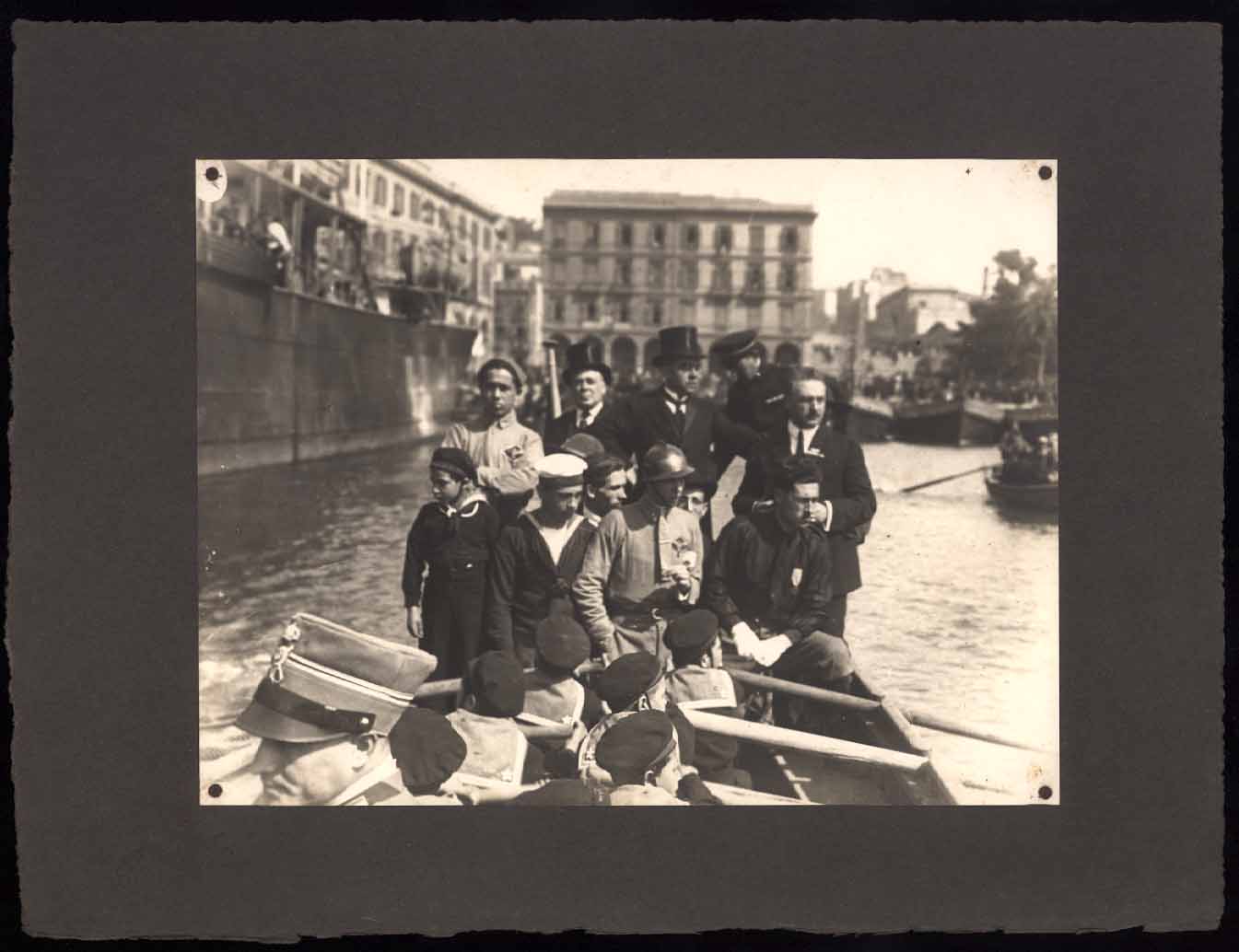 - Nella foto vediamo dei militari su un imbarcazione nel porto di Cagliari in occasione di una cerimonia commemorativa in onore dei caduti in mare svoltasi nel 1924.