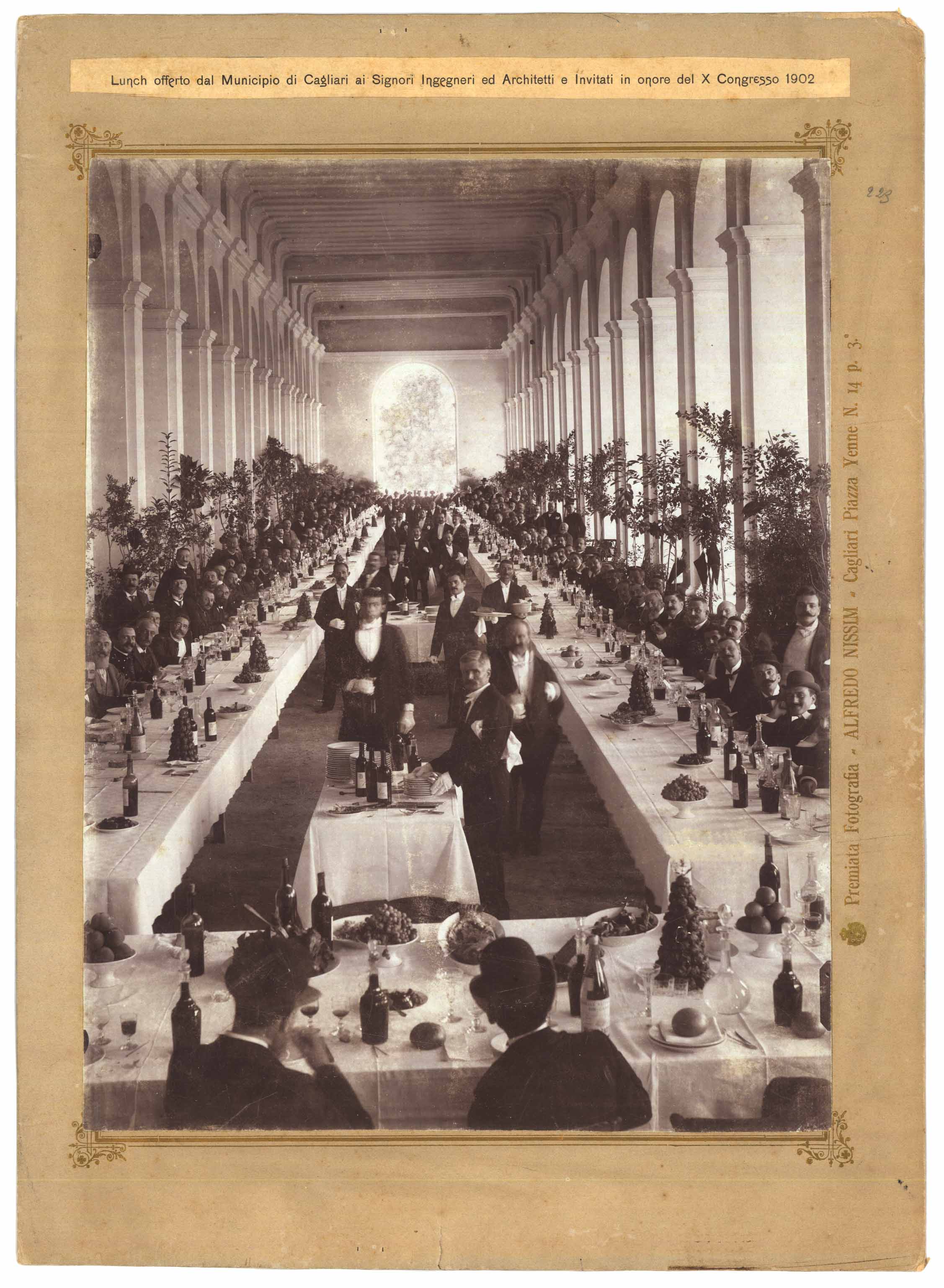- Pranzo offerto dal Comune di Cagliari ad ingegneri ed architetti in occasione del X congresso del 1902 presso la passeggiata coperta nel bastione San Remy.