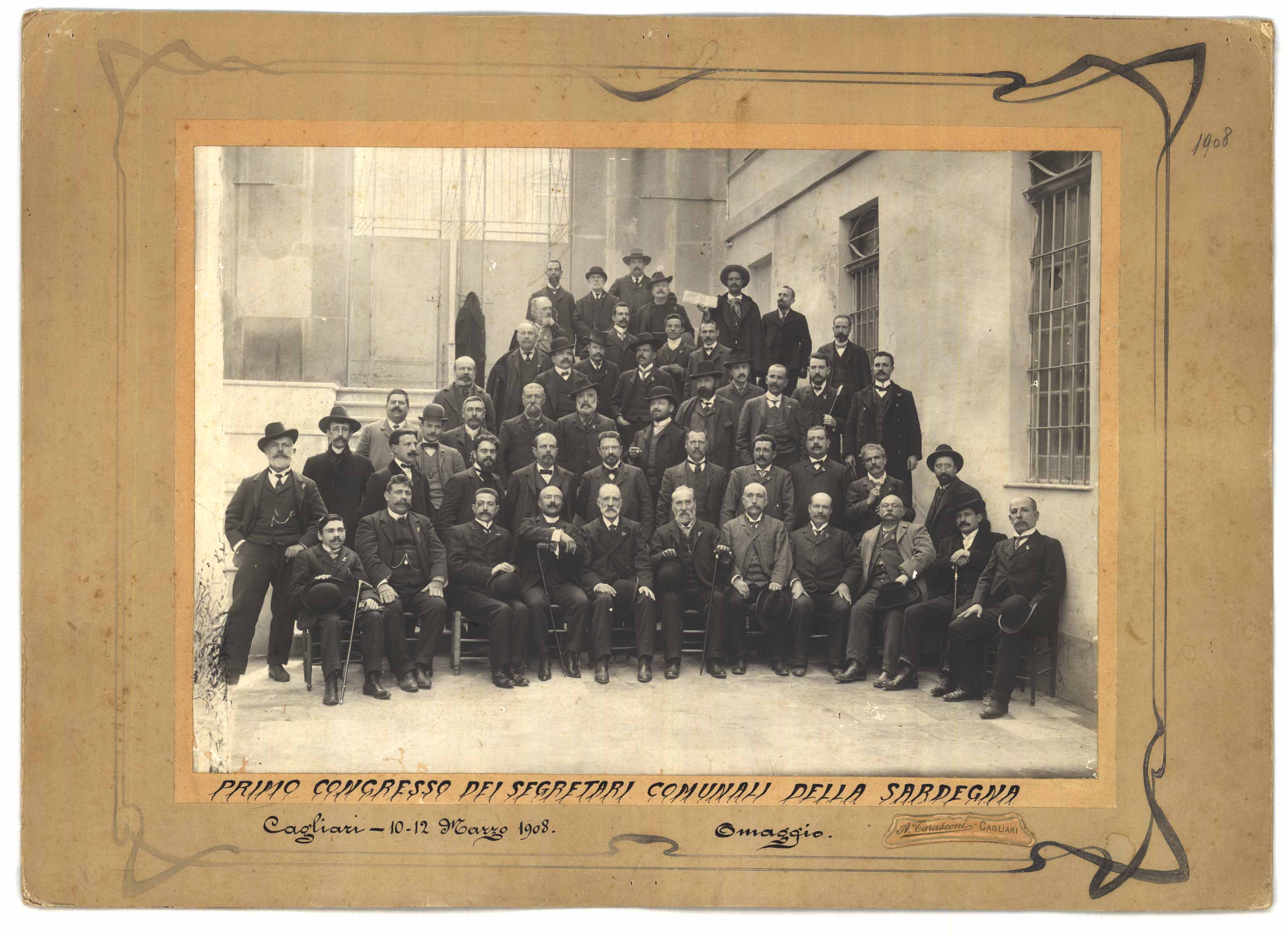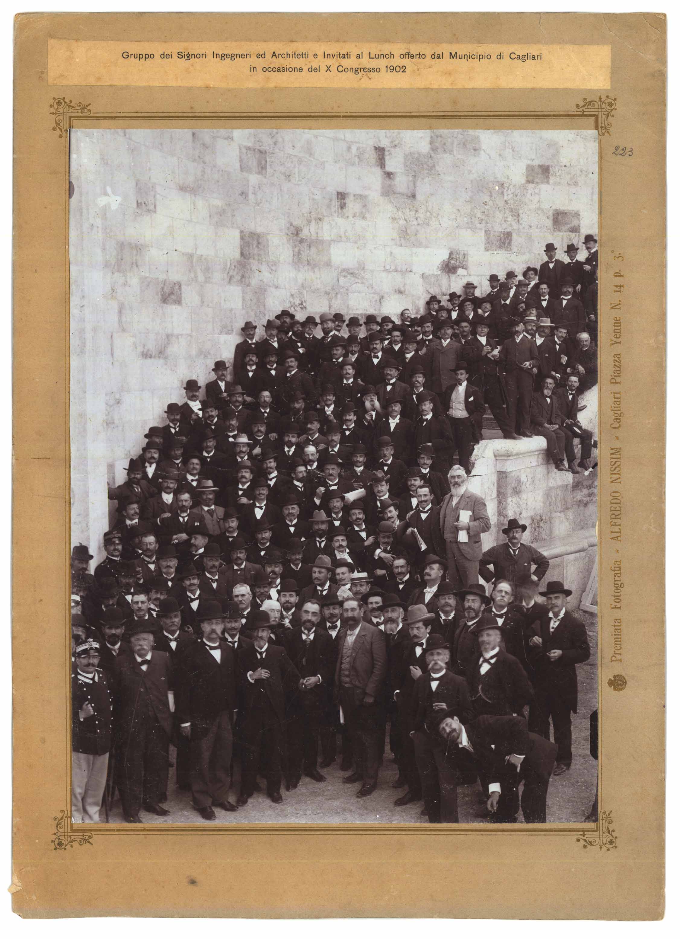 - Gruppo di ingegneri ed architetti sulle scale del bastione San Remy in occasione del pranzo offerto dal Comune di Cagliari per il X congresso del 1902 .