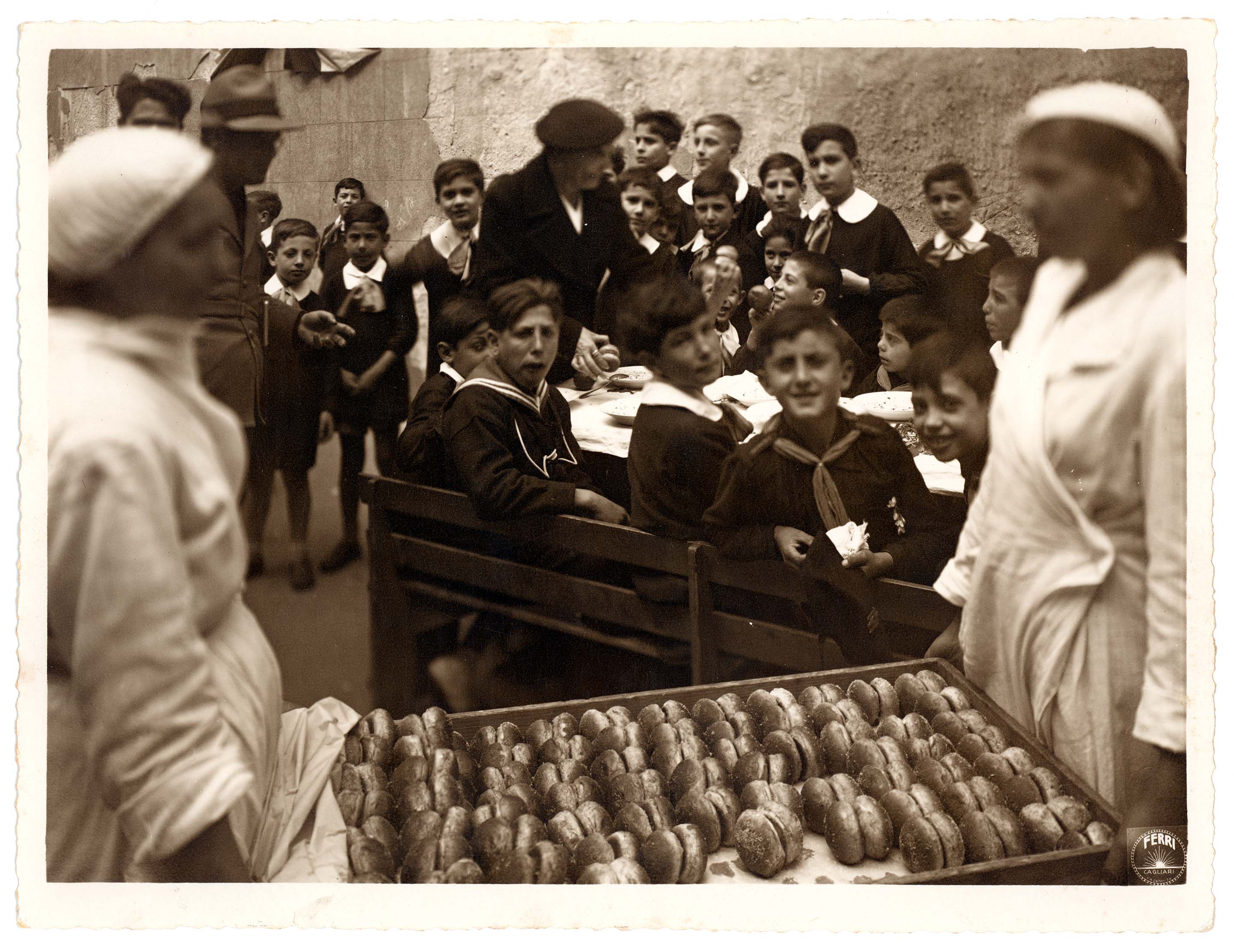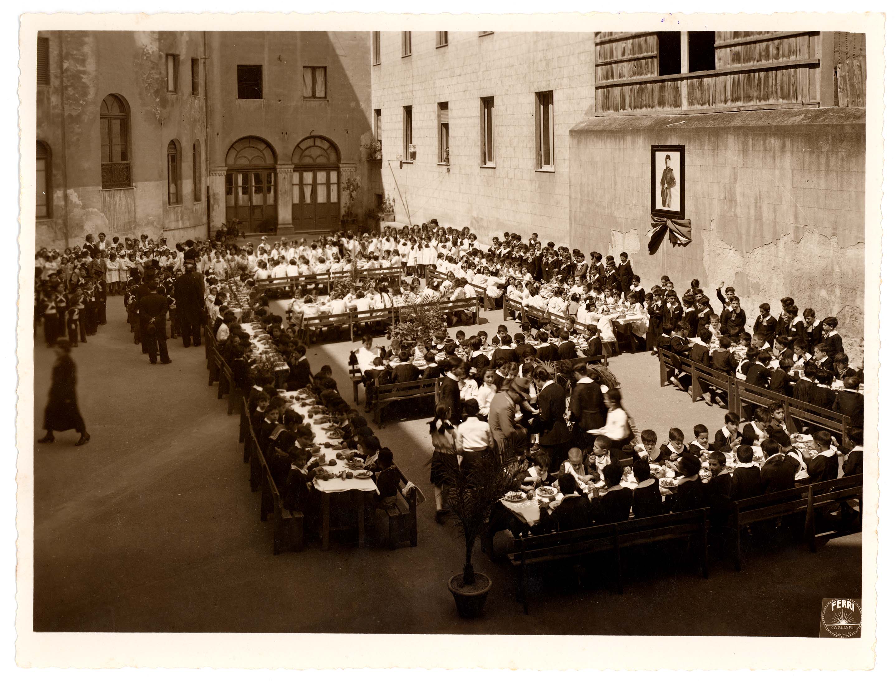 - La foto ci mostra gli alunni della scuola elementare S. Satta di Cagliari durante un pranzo imbandito nel cortile.