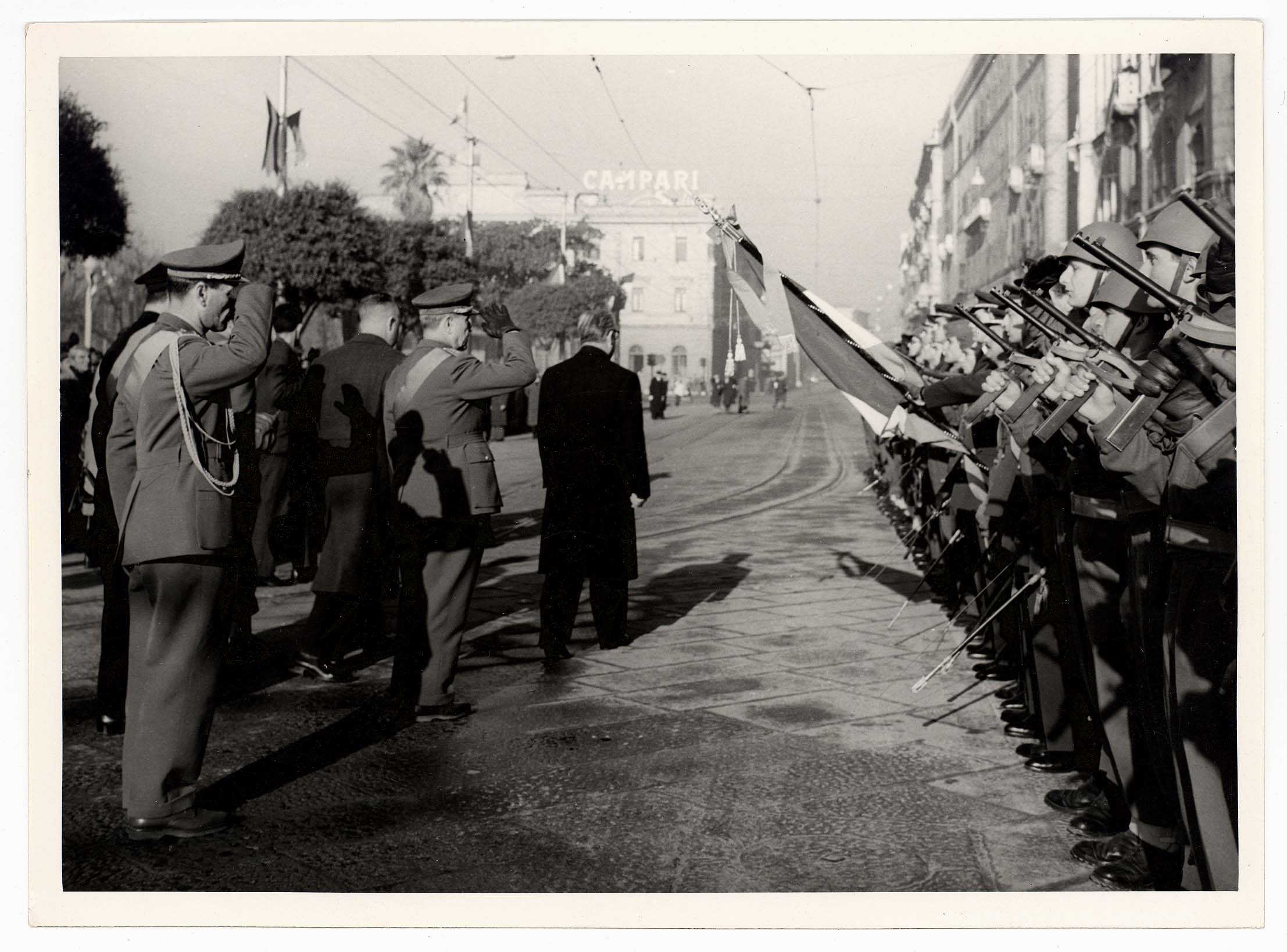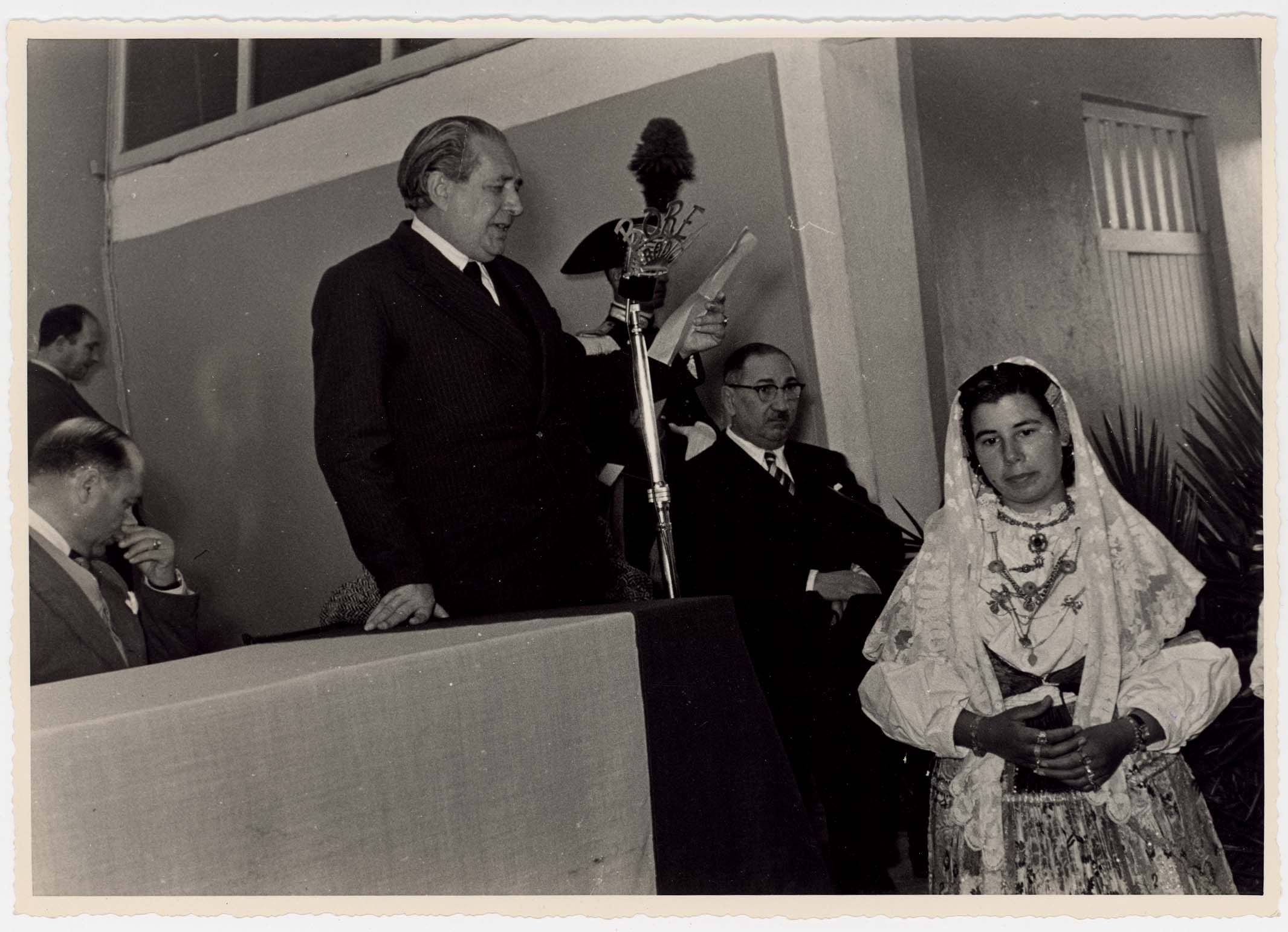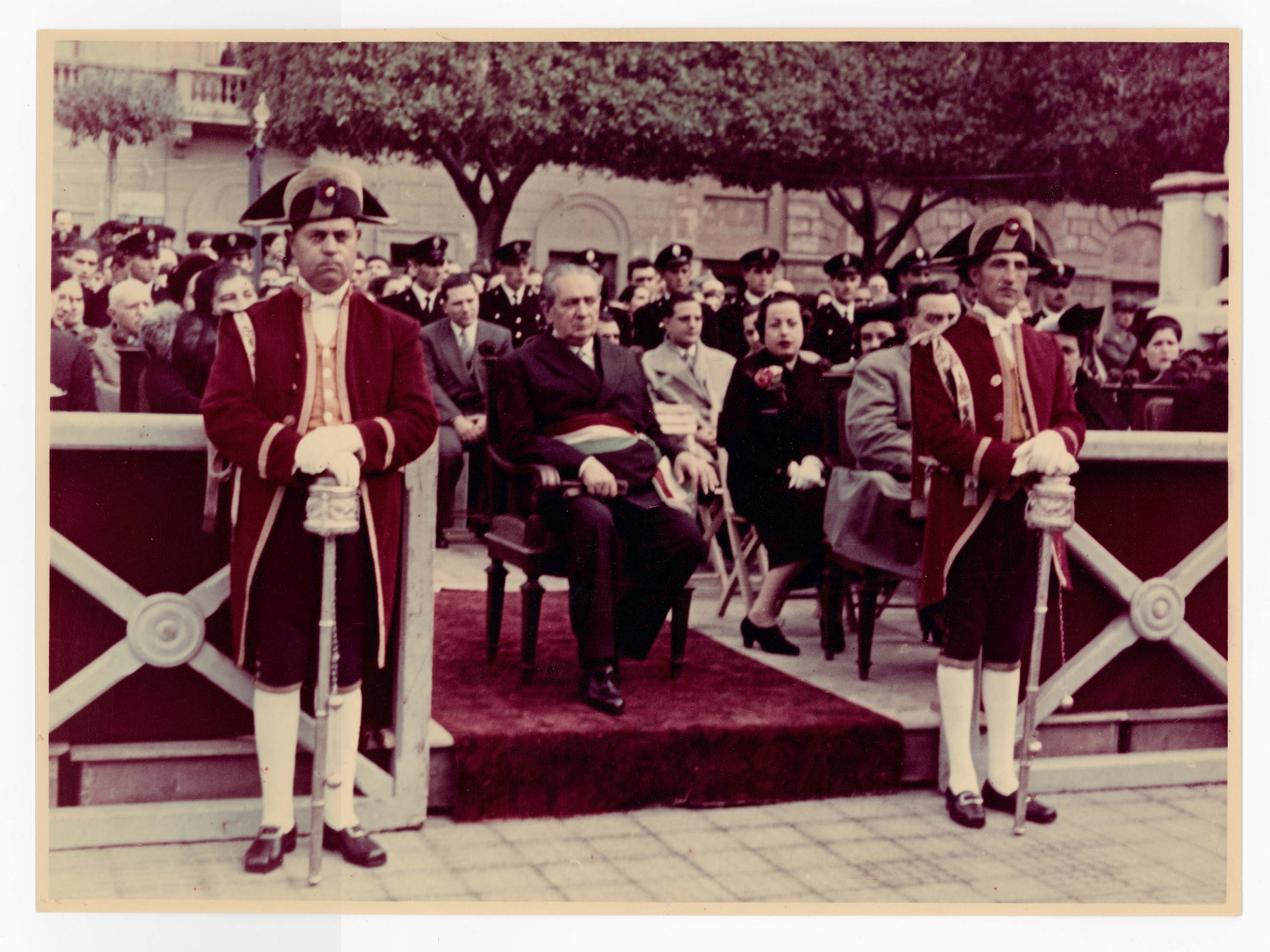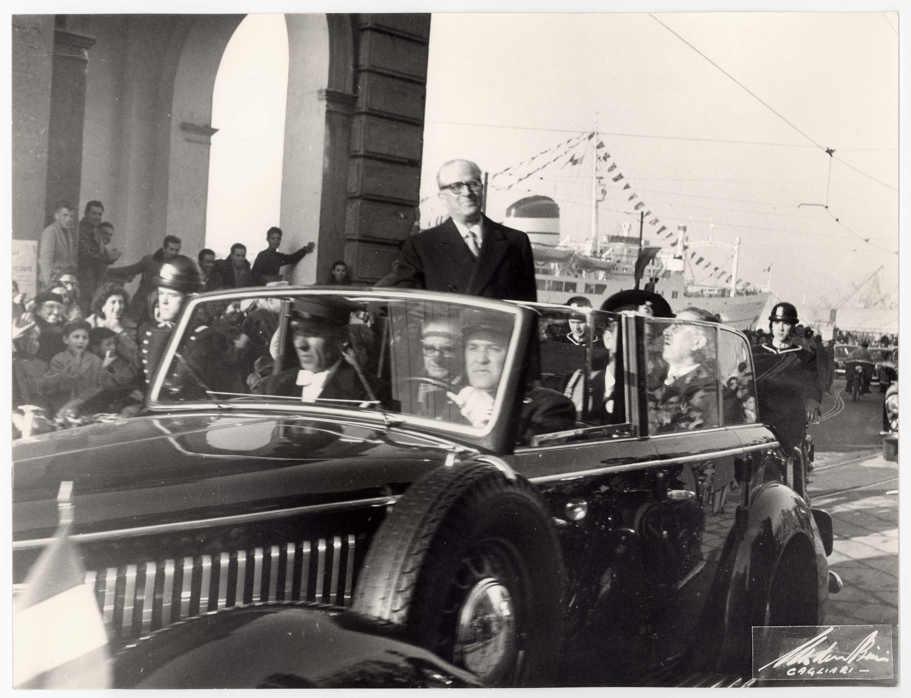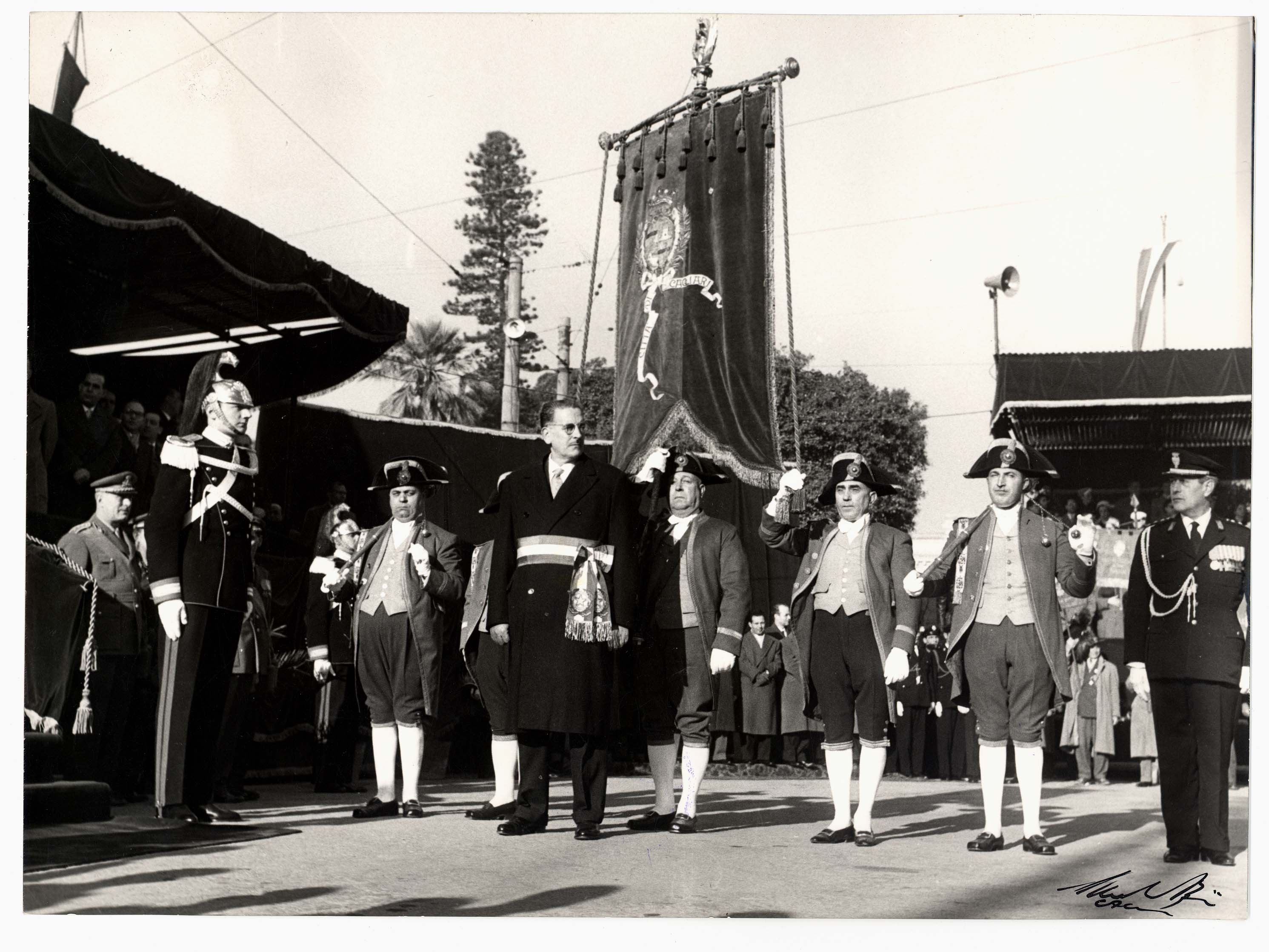 - Nella foto vediamo il Sindaco di Cagliari Palomba in occasione di una visita in città del Capo dello Stato Gronchi.