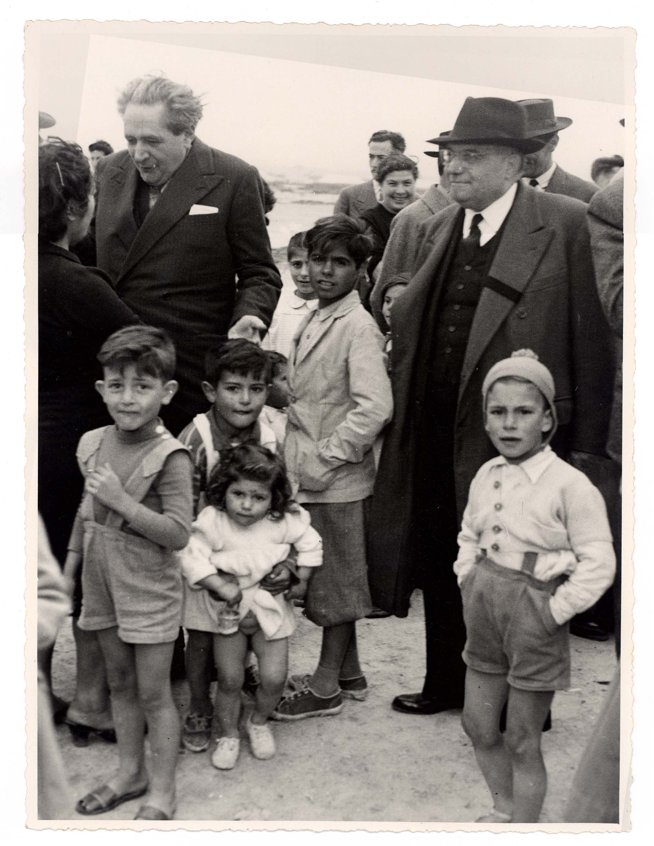 - Benedizioe e posa della prima pietra per la costruzione di case popolari, alla presenza del sindaco Leo e del Prof. Brotzu.