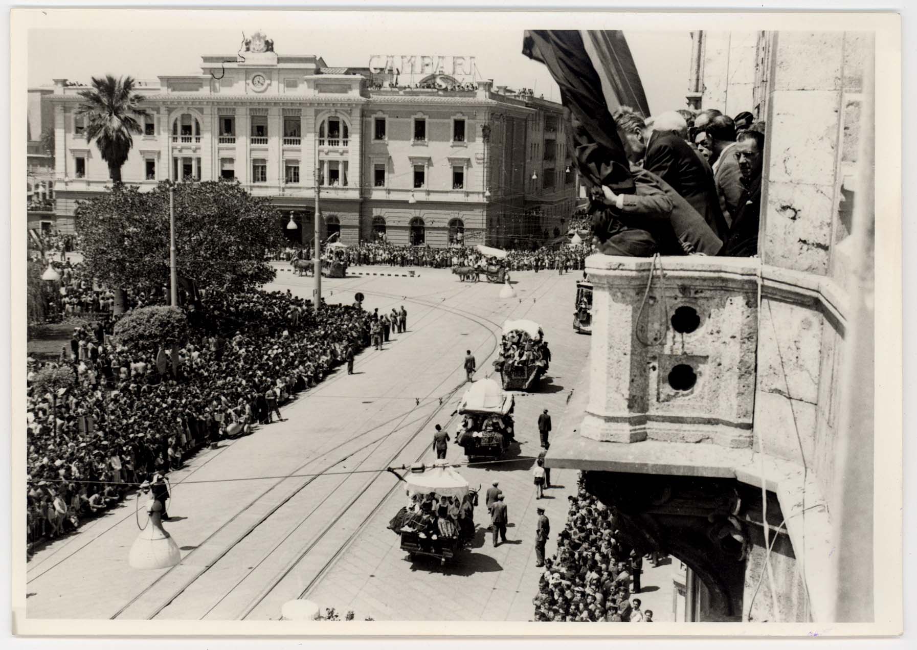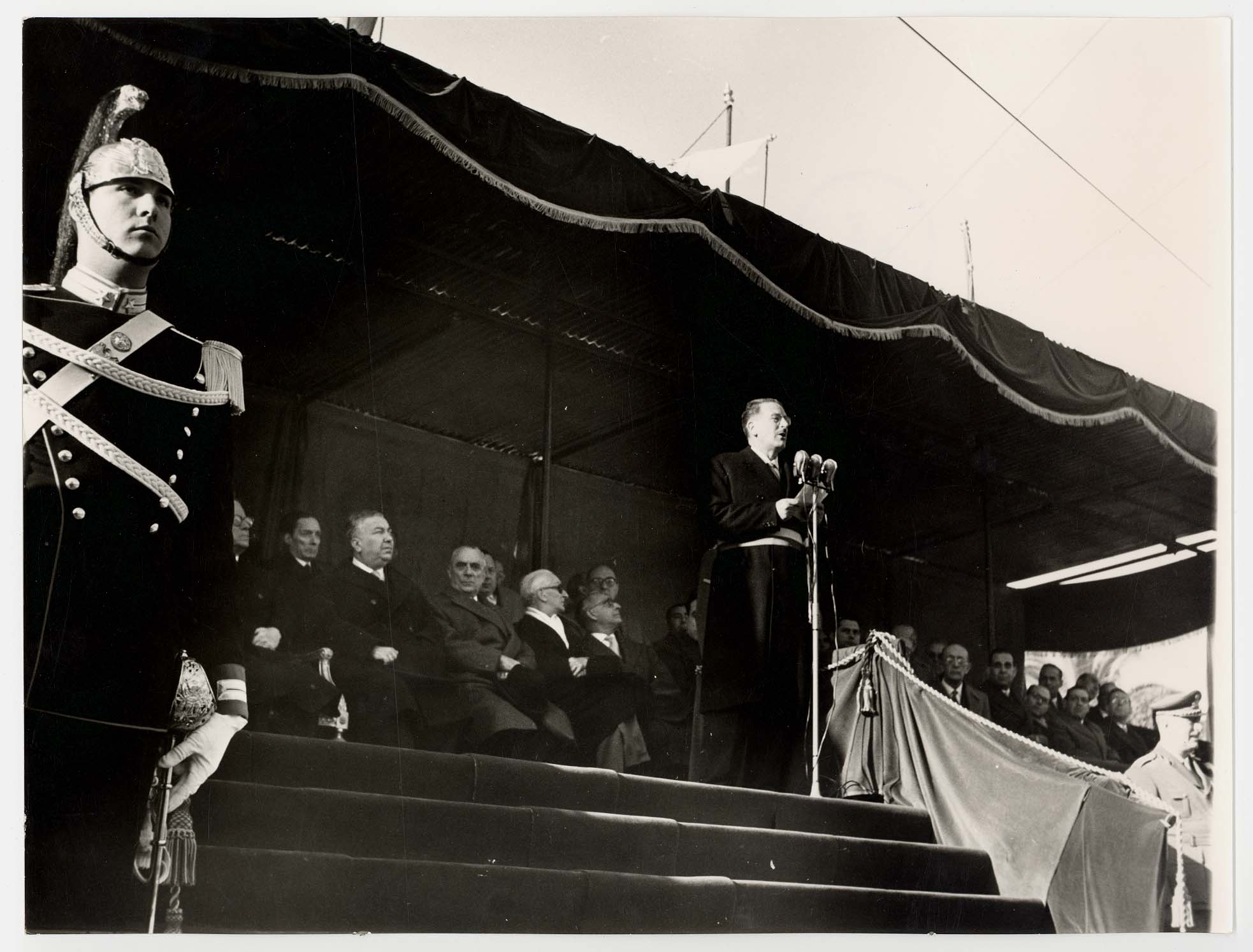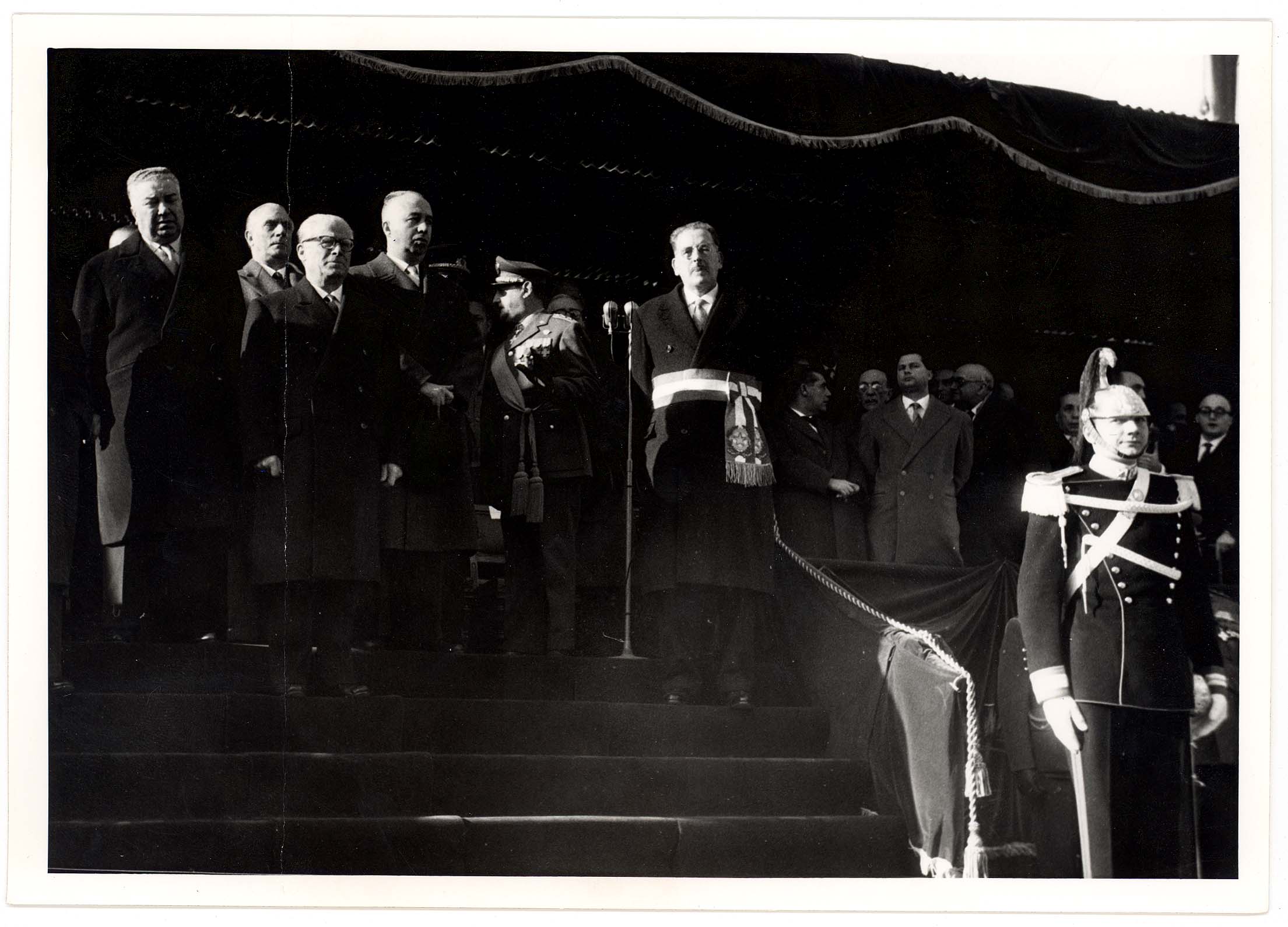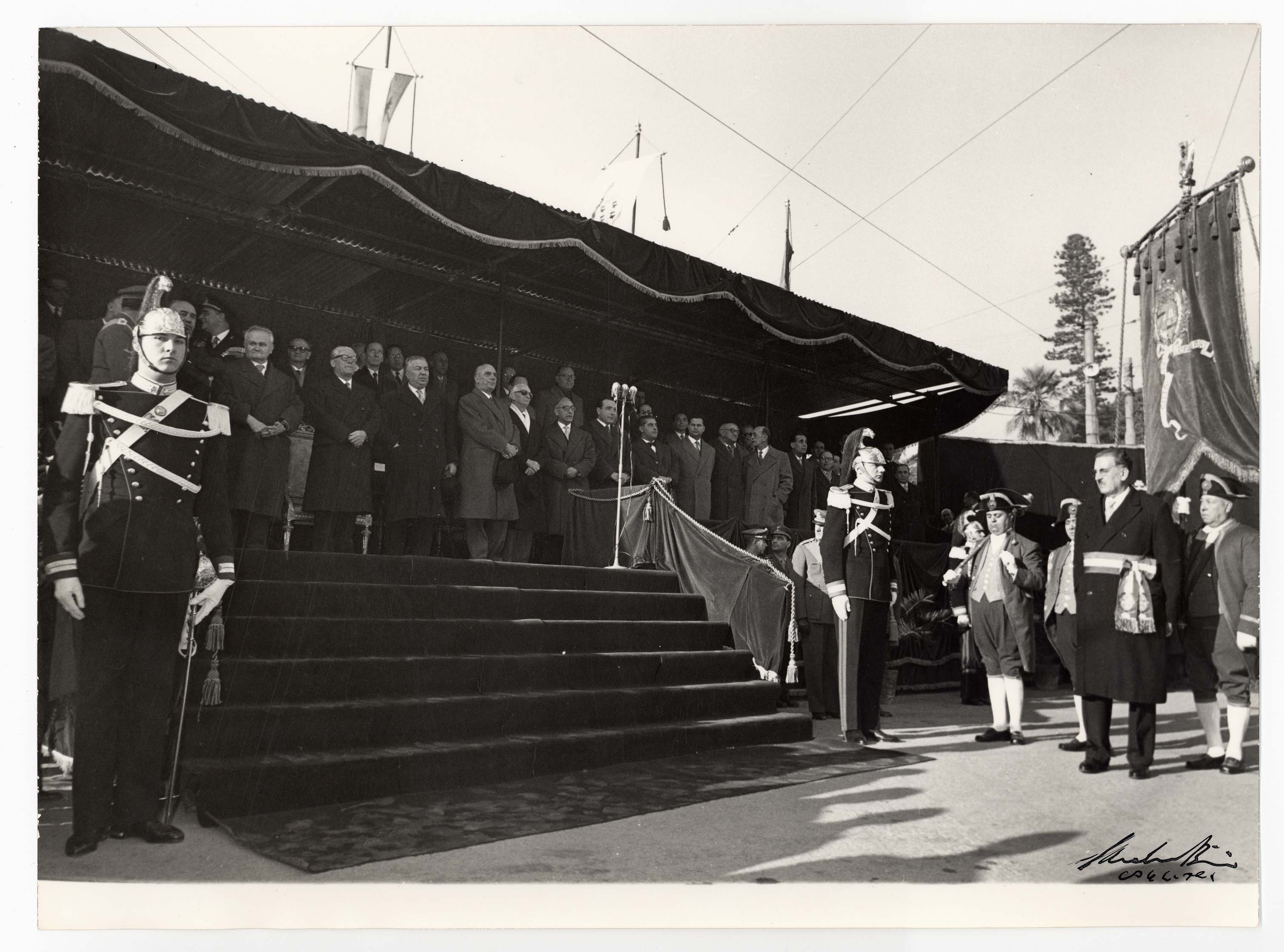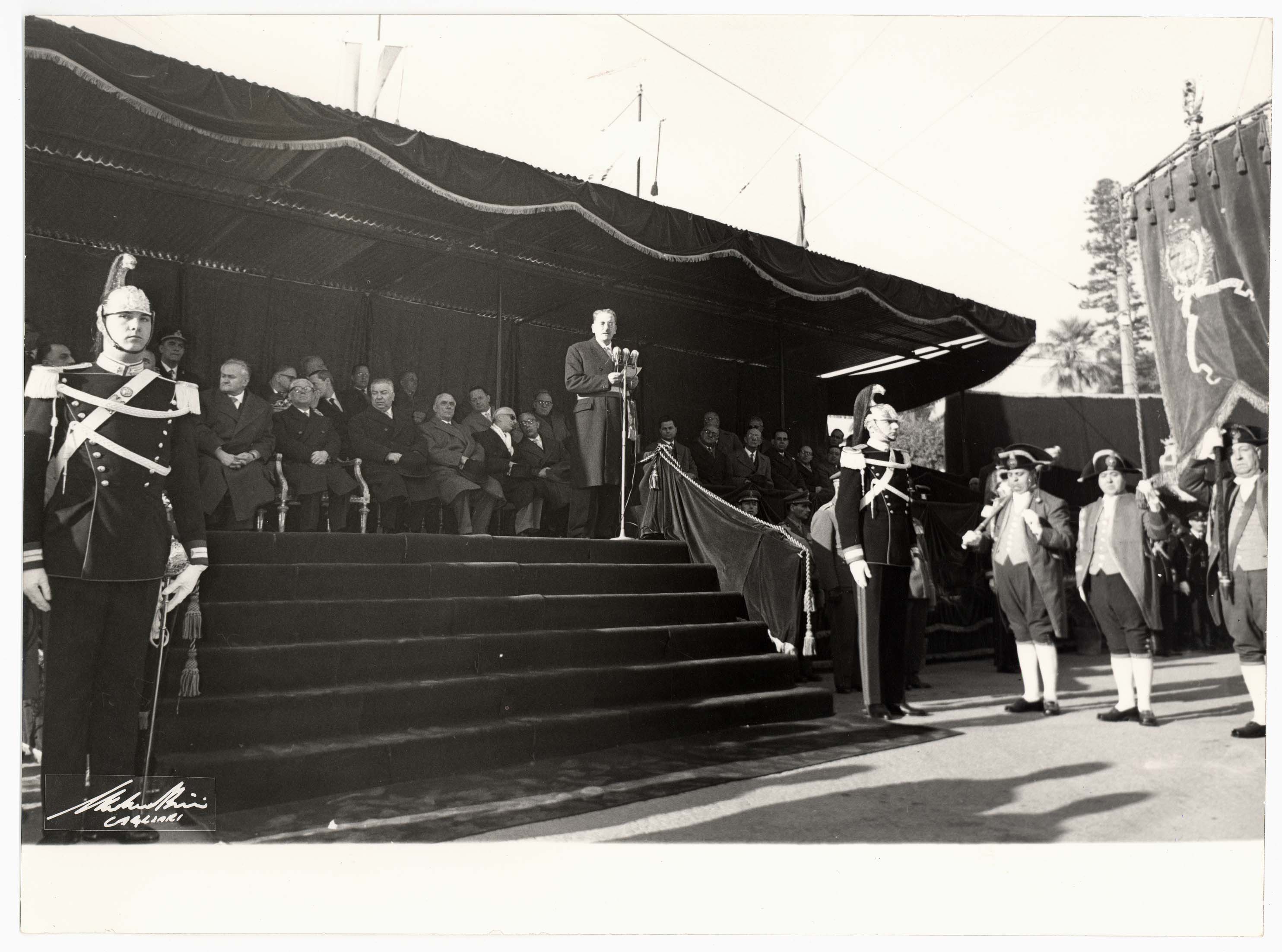 - Nella foto vediamo il Sindaco di Cagliari Palomba e Il presidente dello Stato Gronchi sulla tribuna con altre personalità in occasione di una sua visita in città.