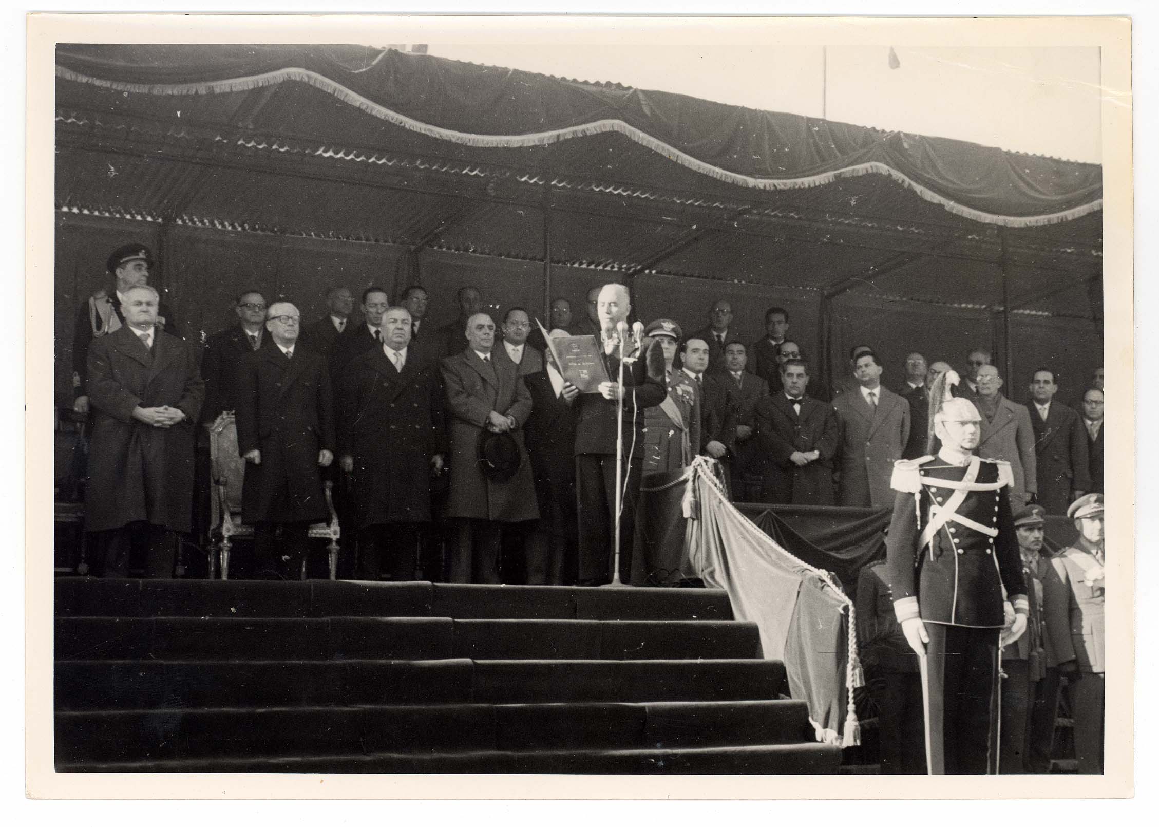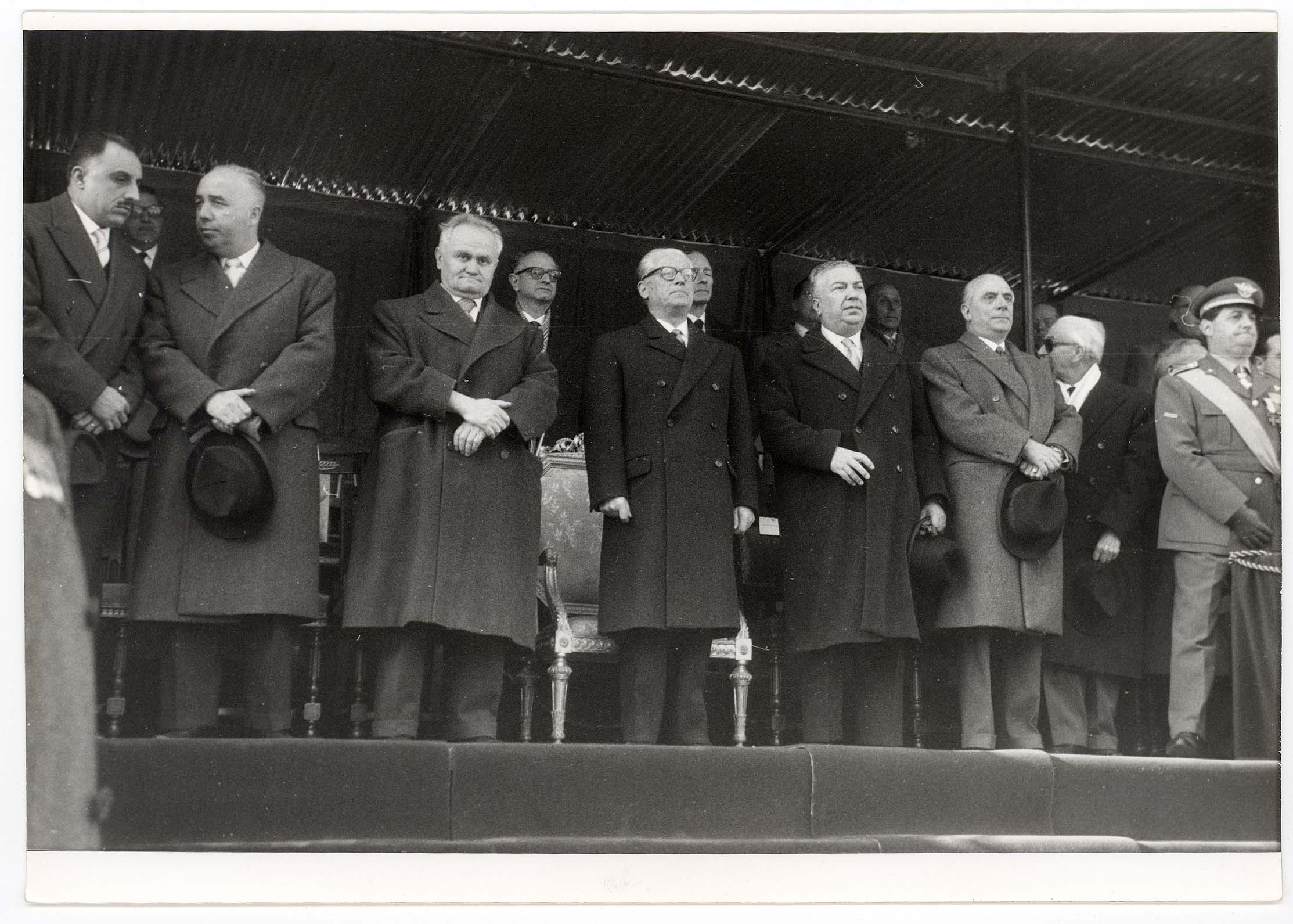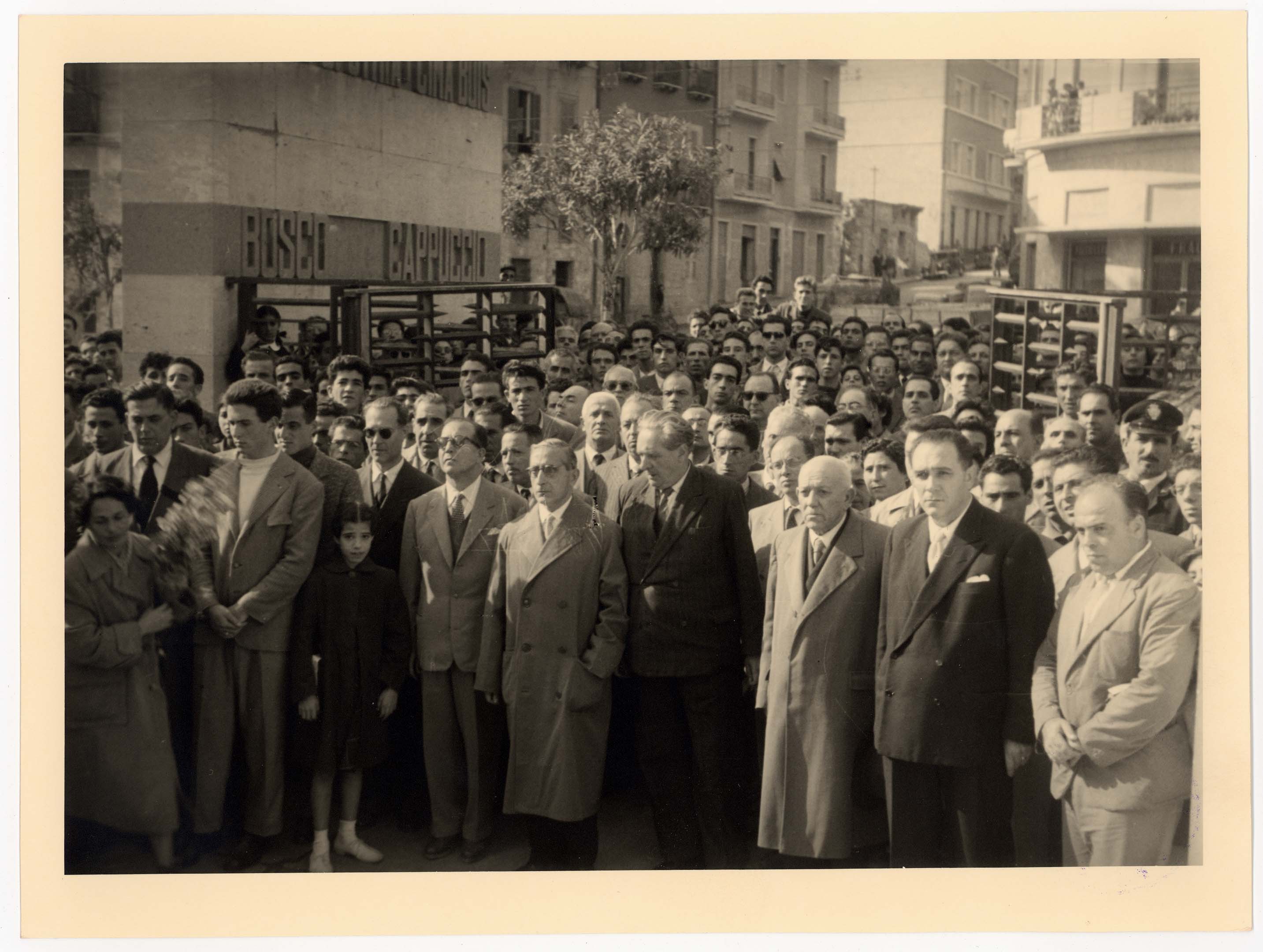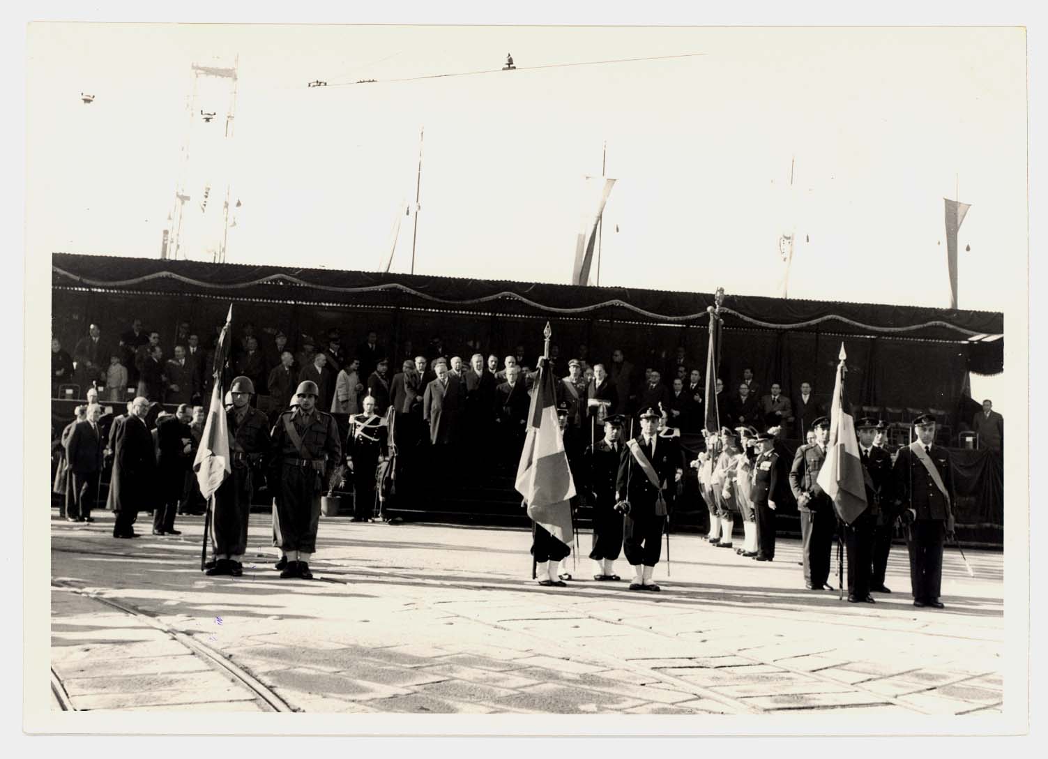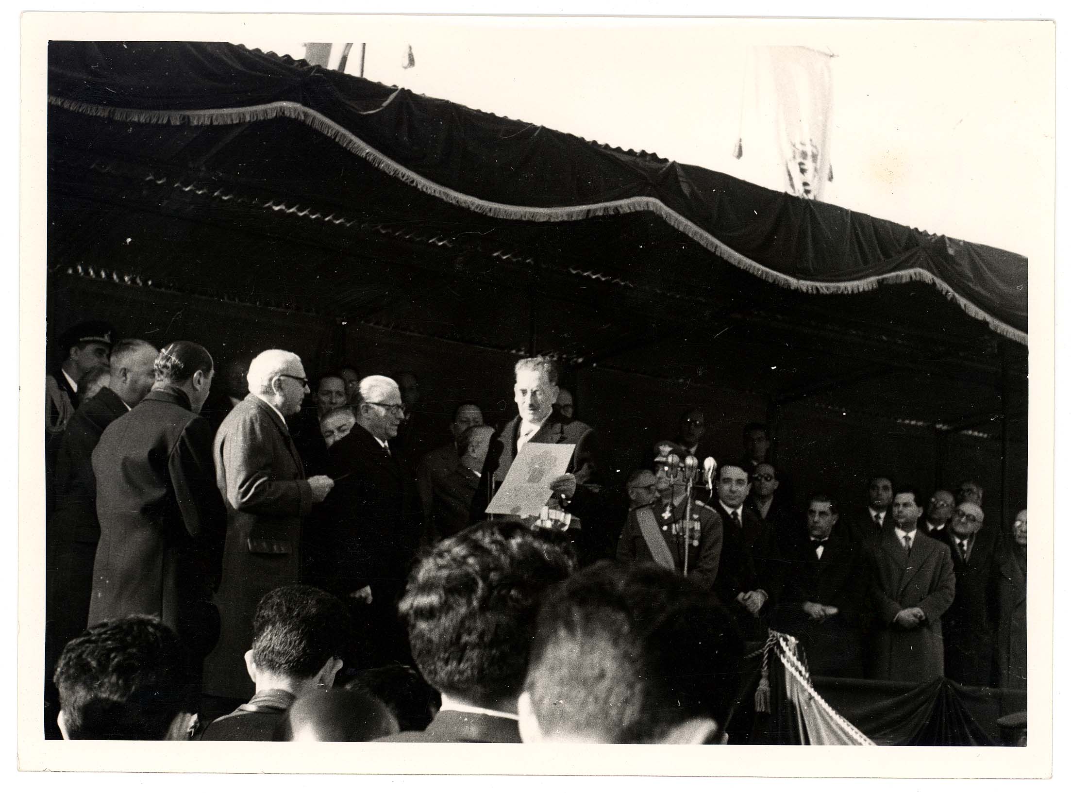 - Nella foto vediamo il Sindaco di Cagliari Palomba e Il presidente dello Stato Gronchi sulla tribuna con altre personalità in occasione di una sua visita in città.