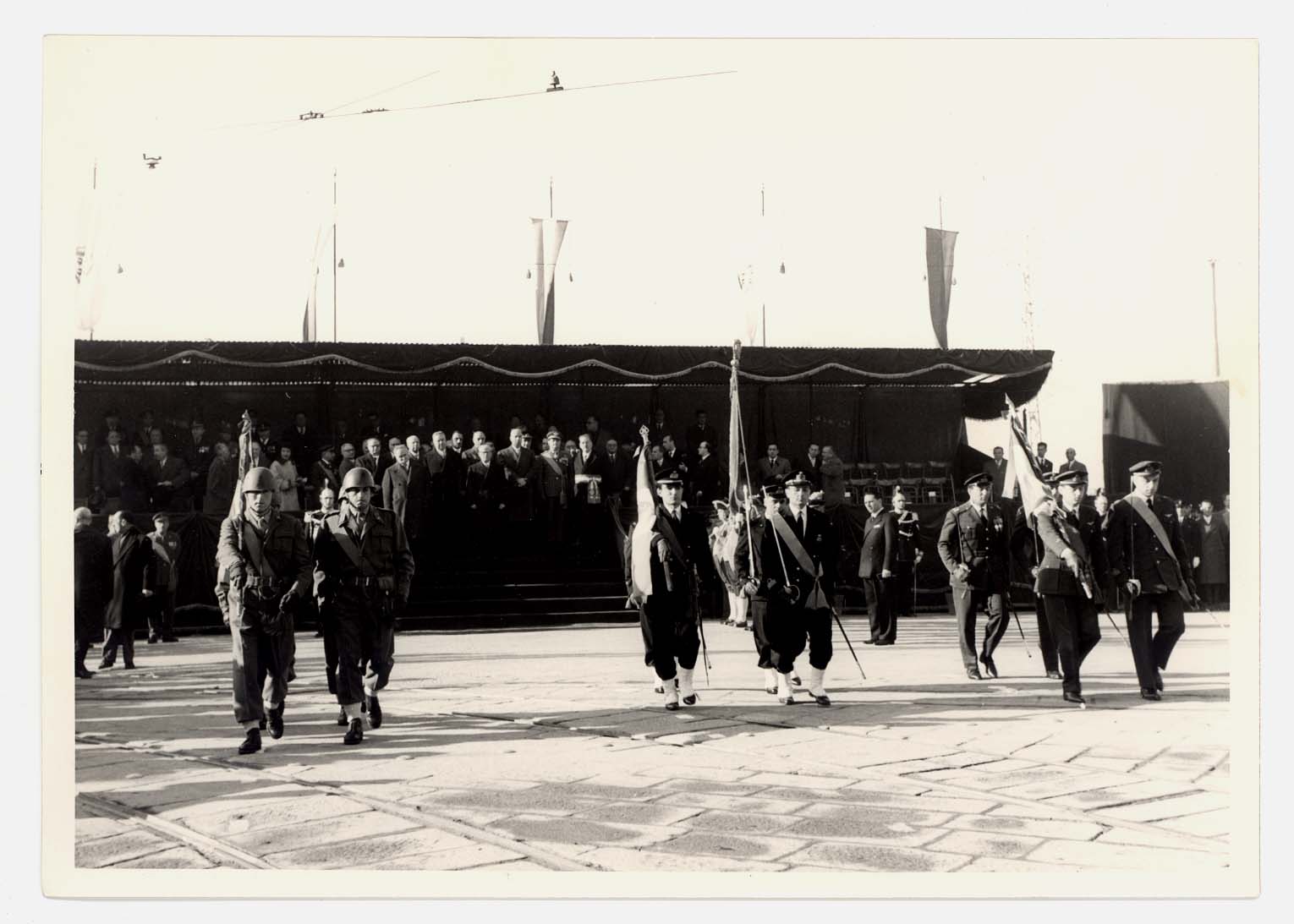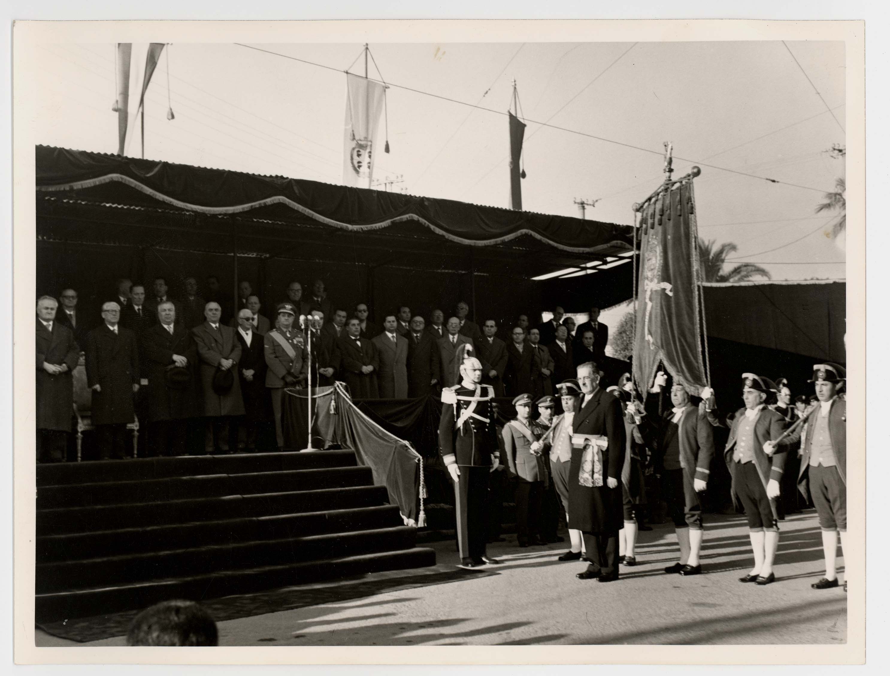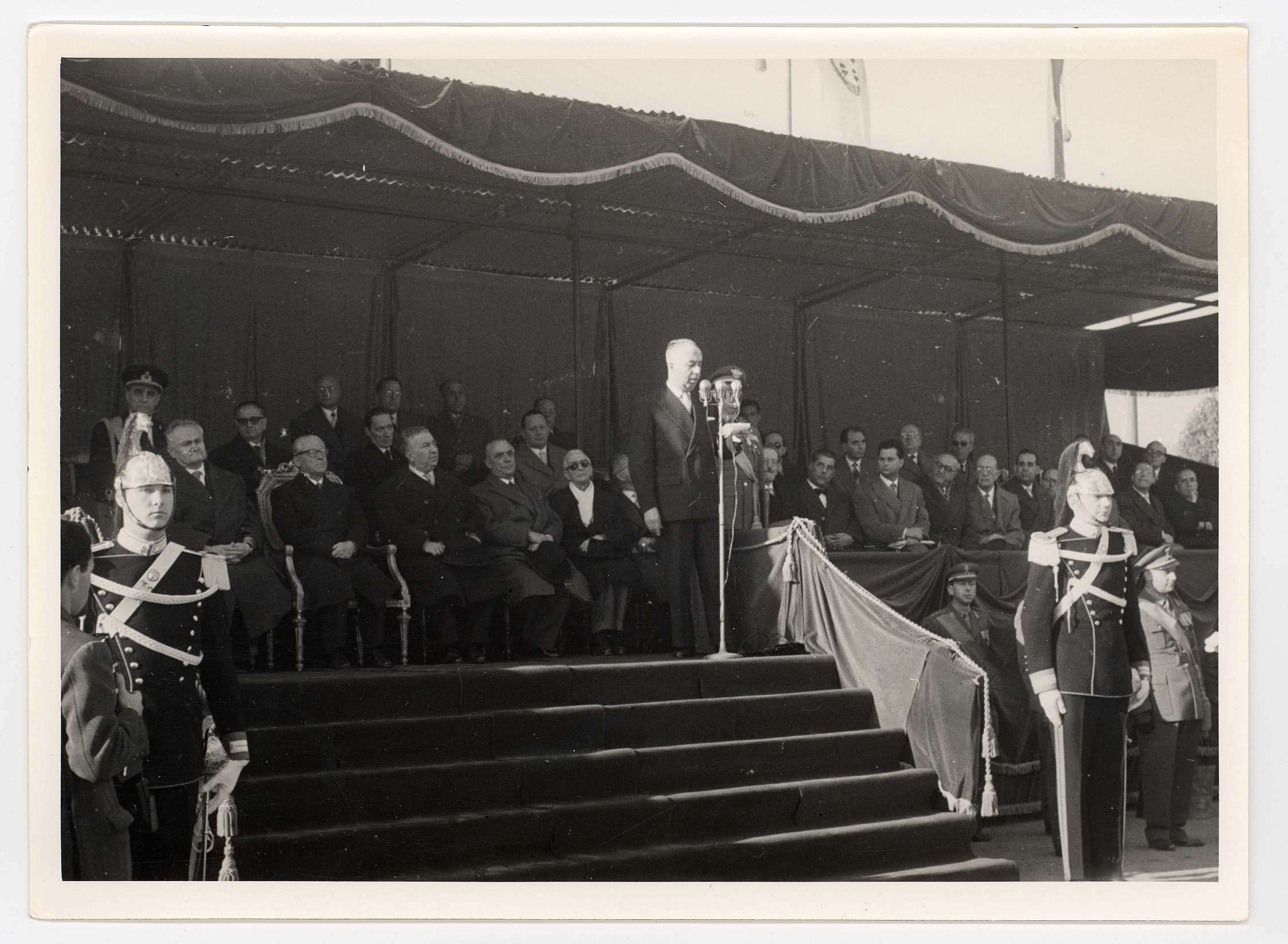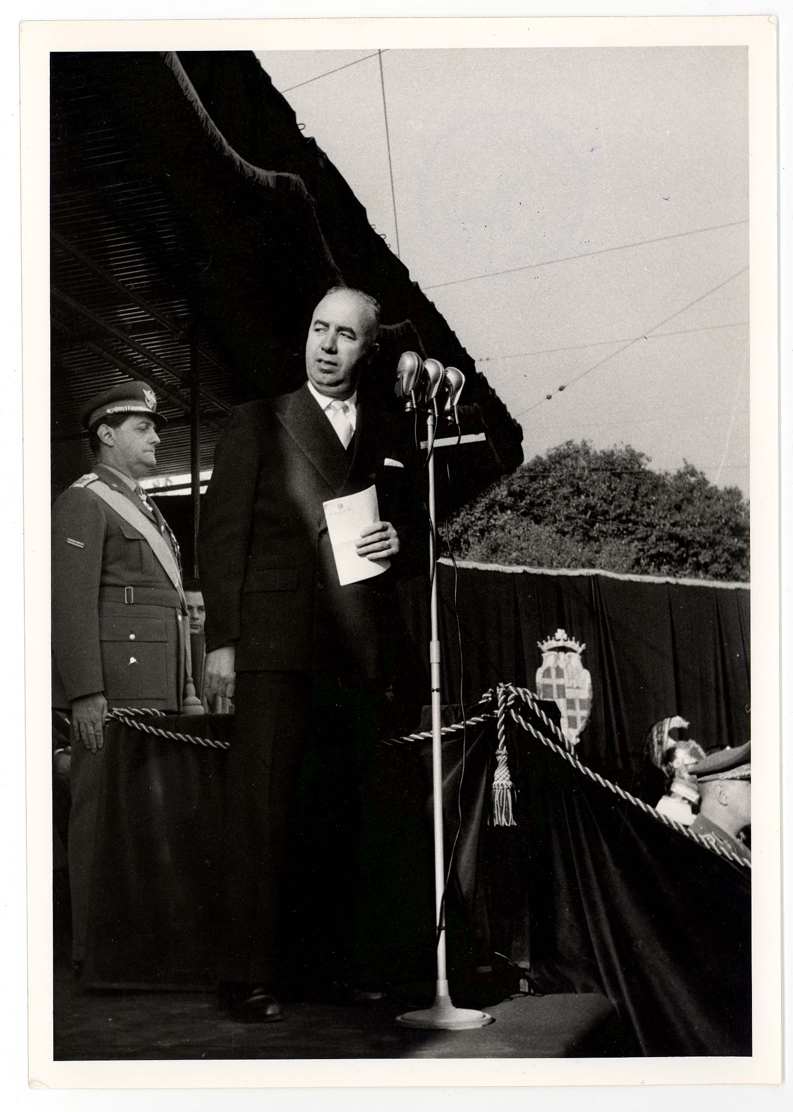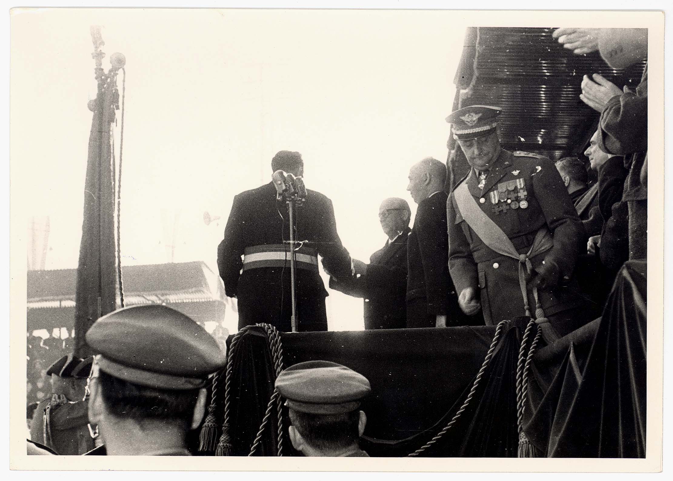 - Nella foto vediamo il Sindaco di Cagliari Palomba e Il presidente dello Stato Gronchi sulla tribuna con altre personalità in occasione di una sua visita in città.