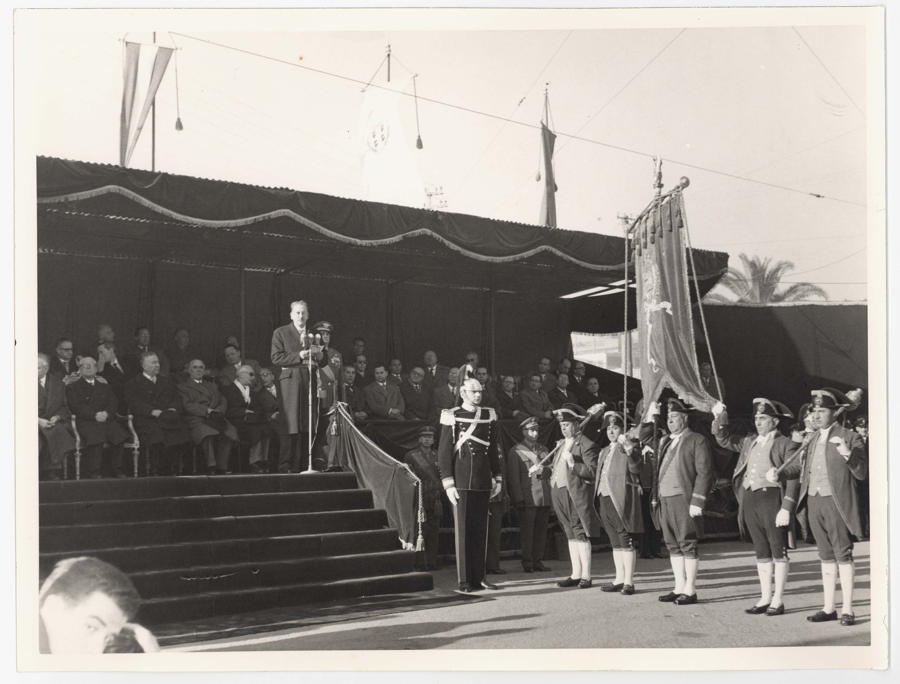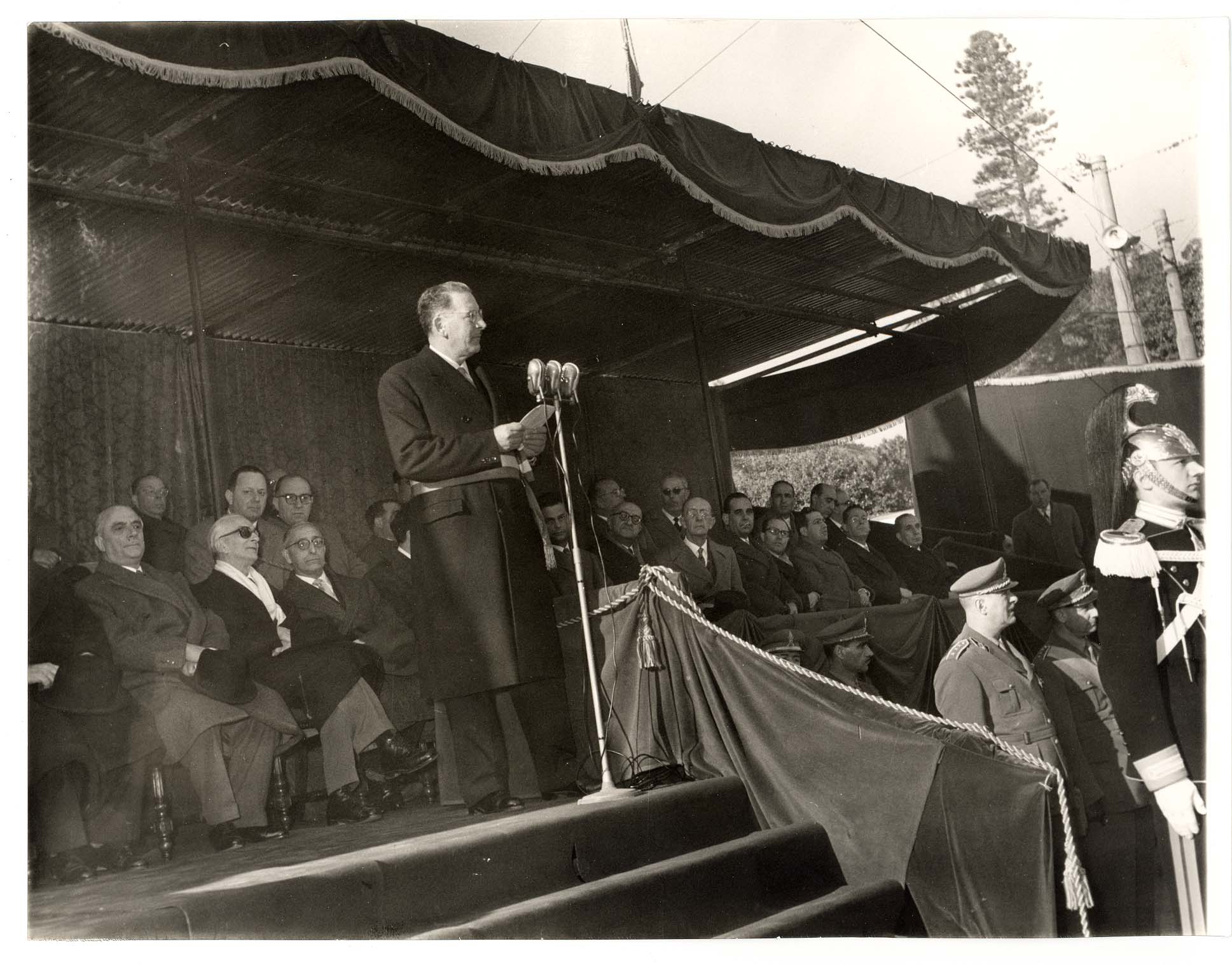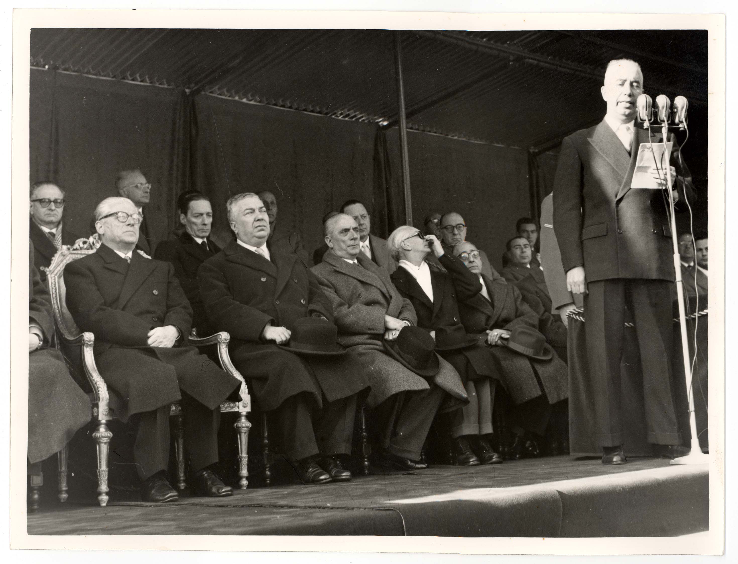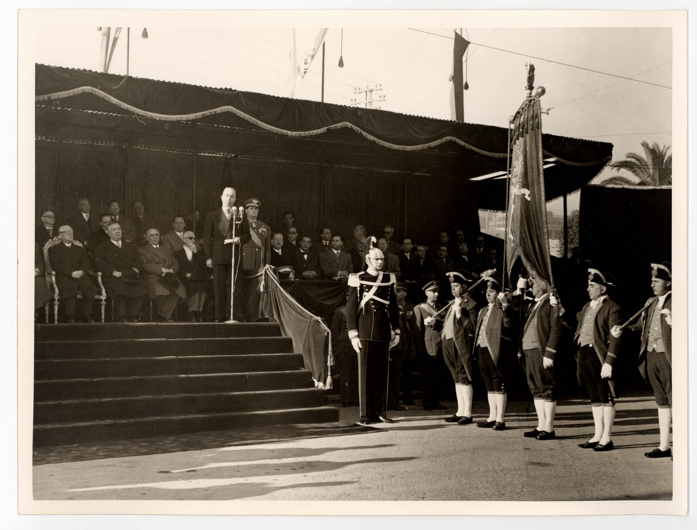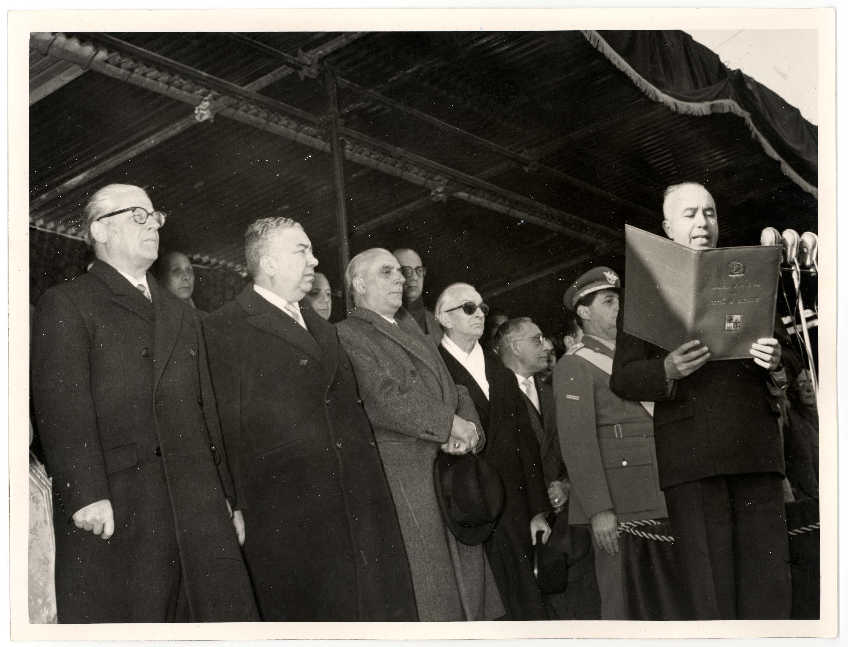- Nella foto vediamo il Sindaco di Cagliari Palomba e Il presidente dello Stato Gronchi sulla tribuna con altre personalità in occasione di una sua visita in città.