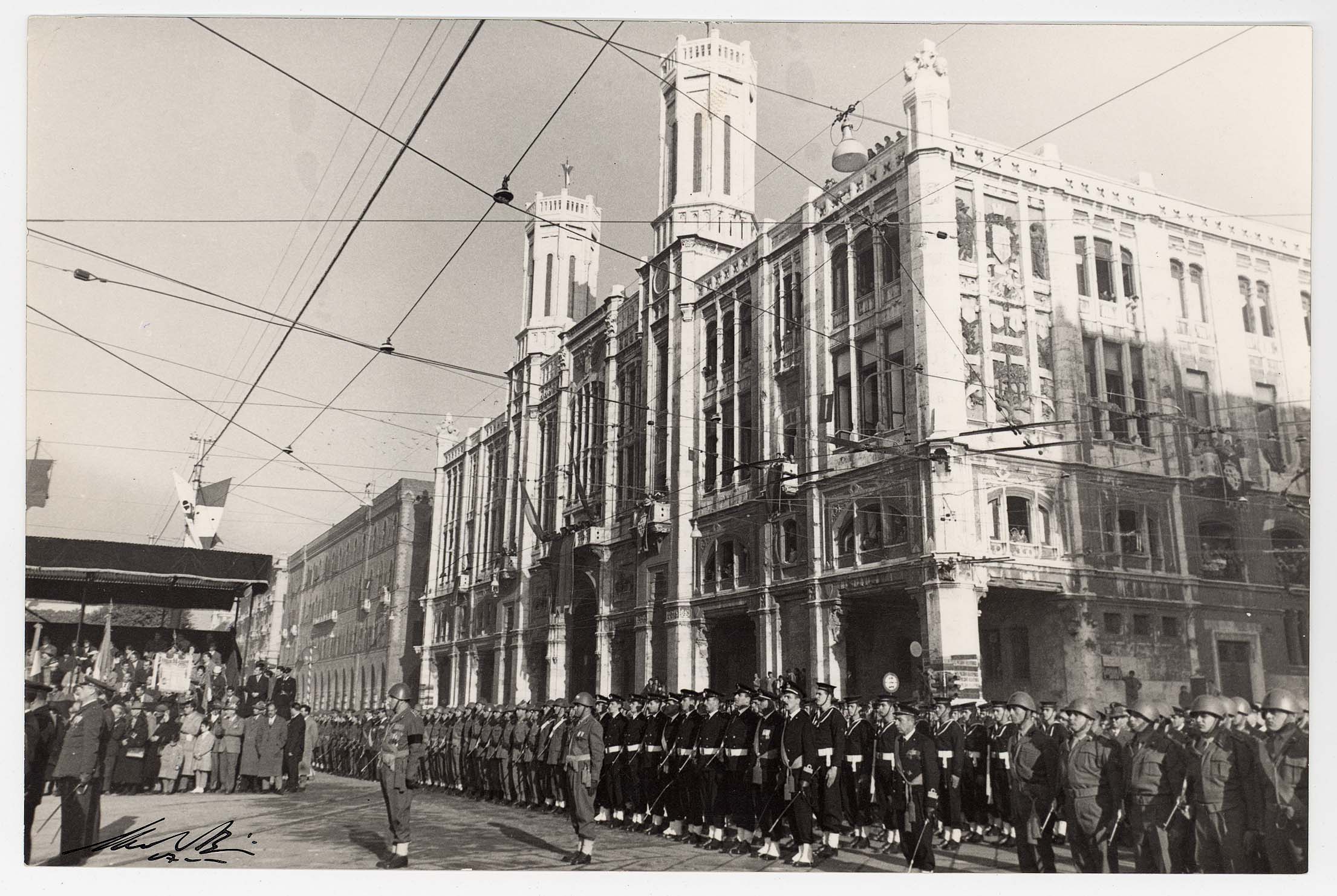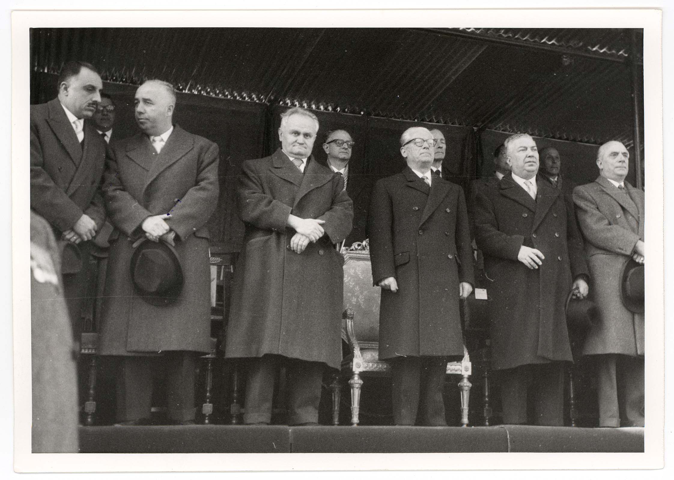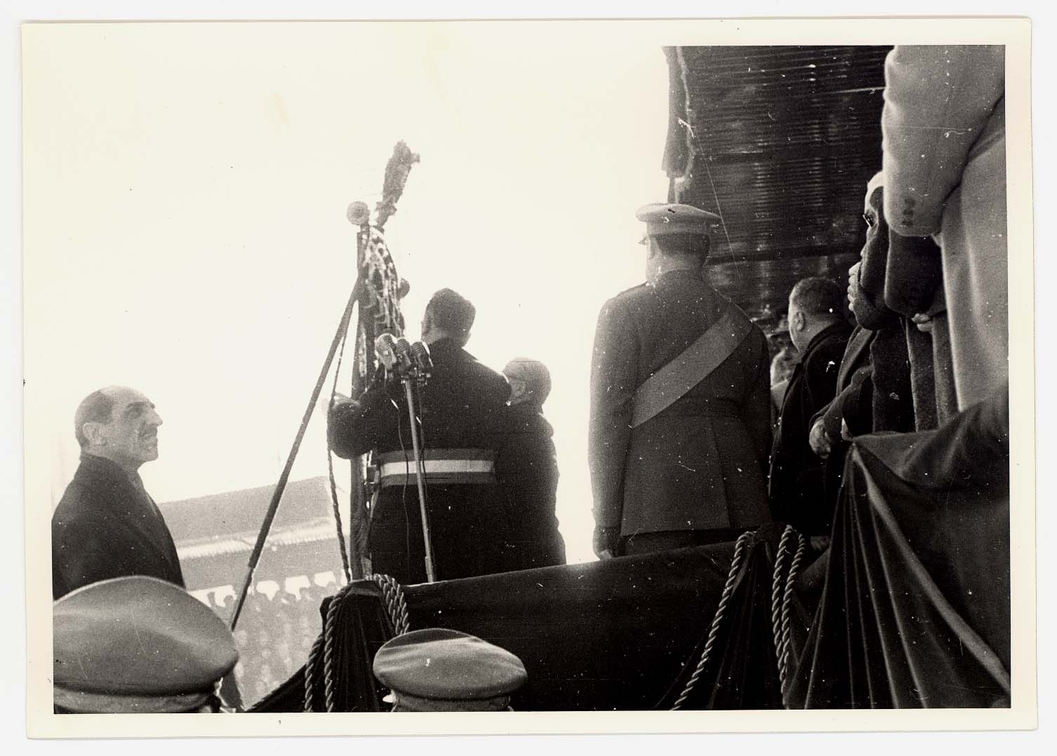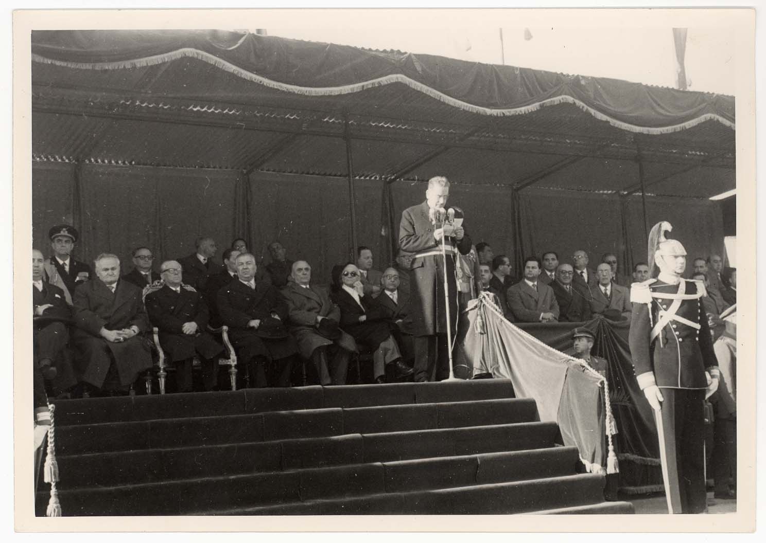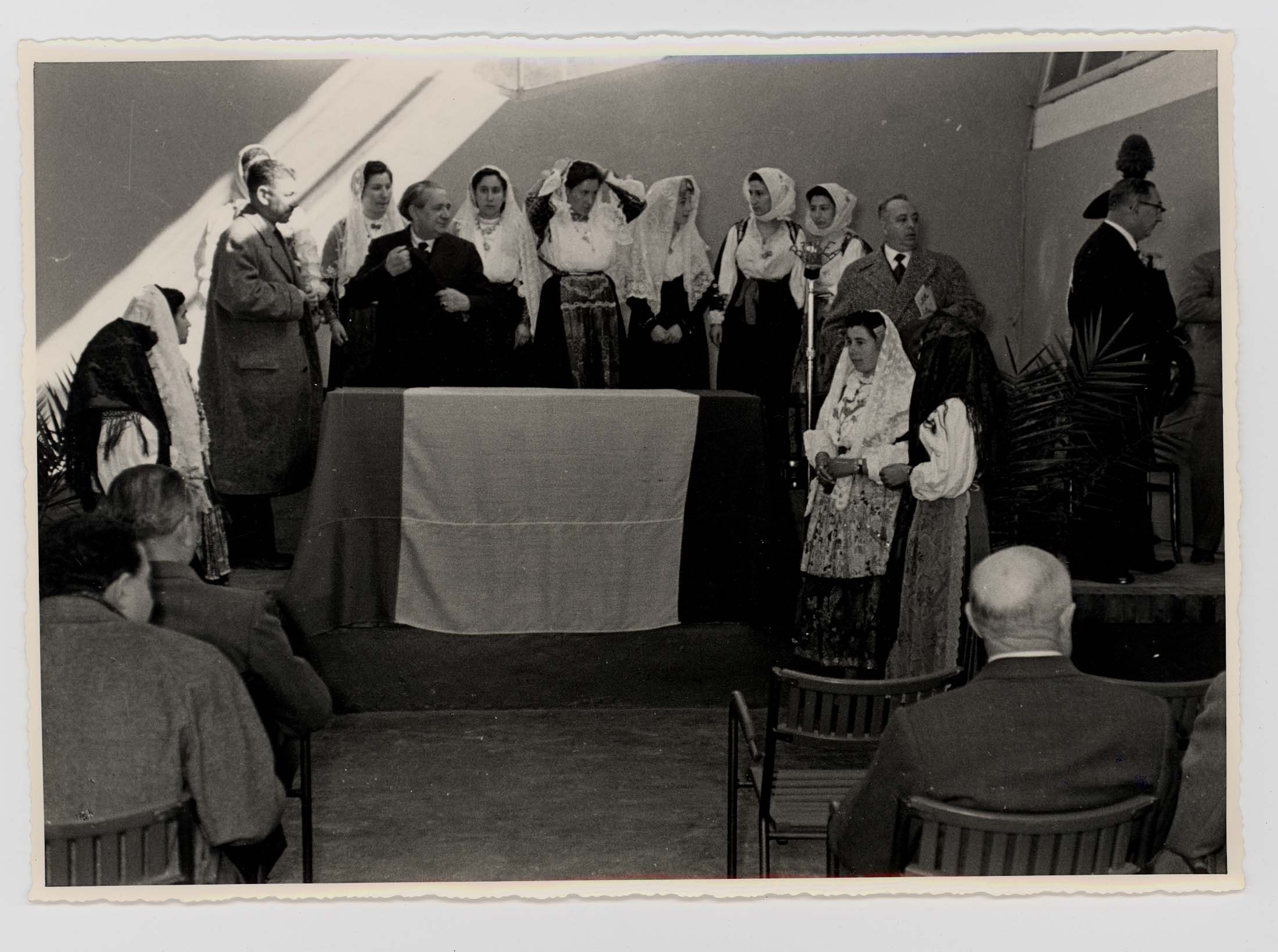 - Nella foto vediamo il Sindaco di Cagliari Palomba e Il presidente dello Stato Gronchi sulla tribuna con altre personalità in occasione di una sua visita in città.