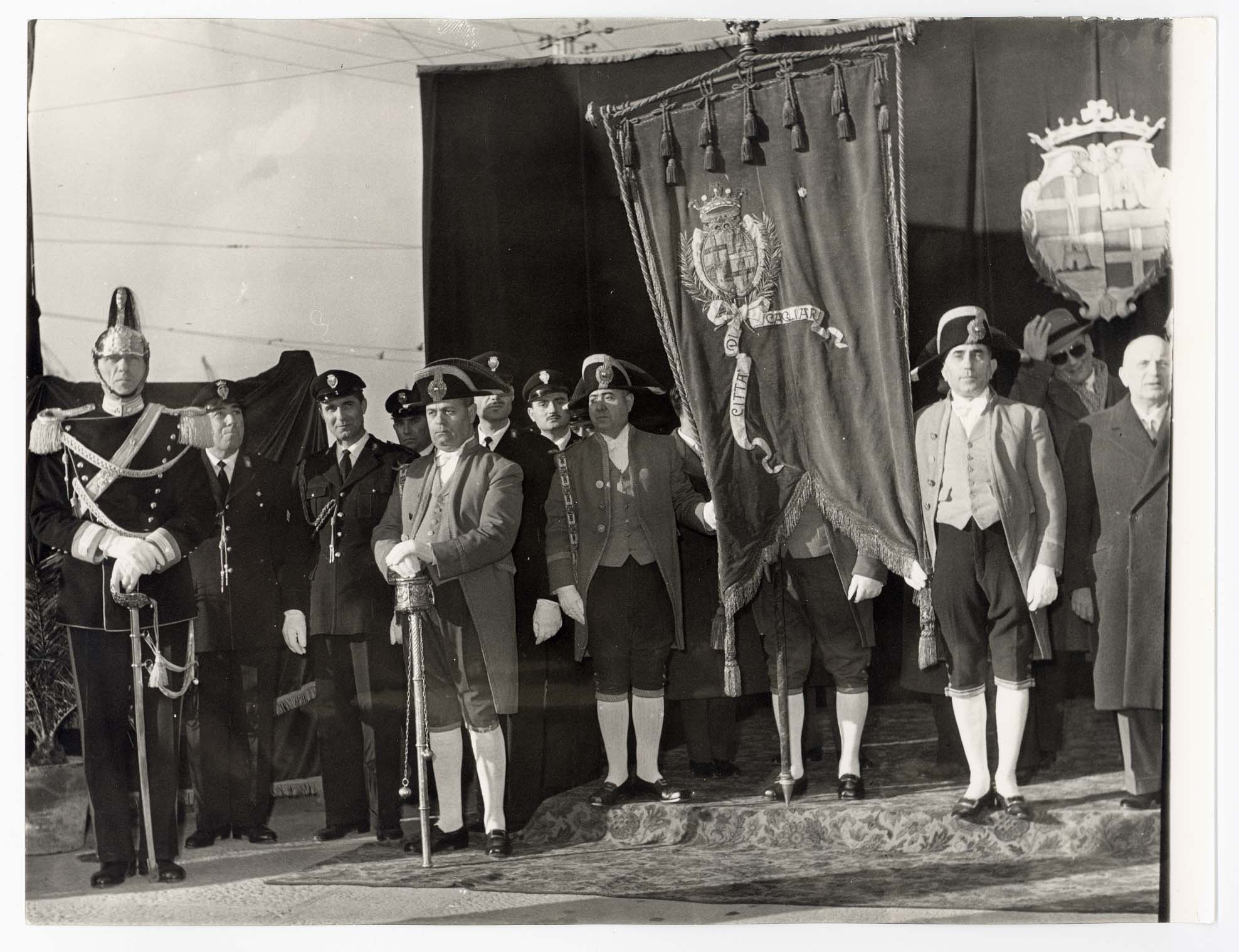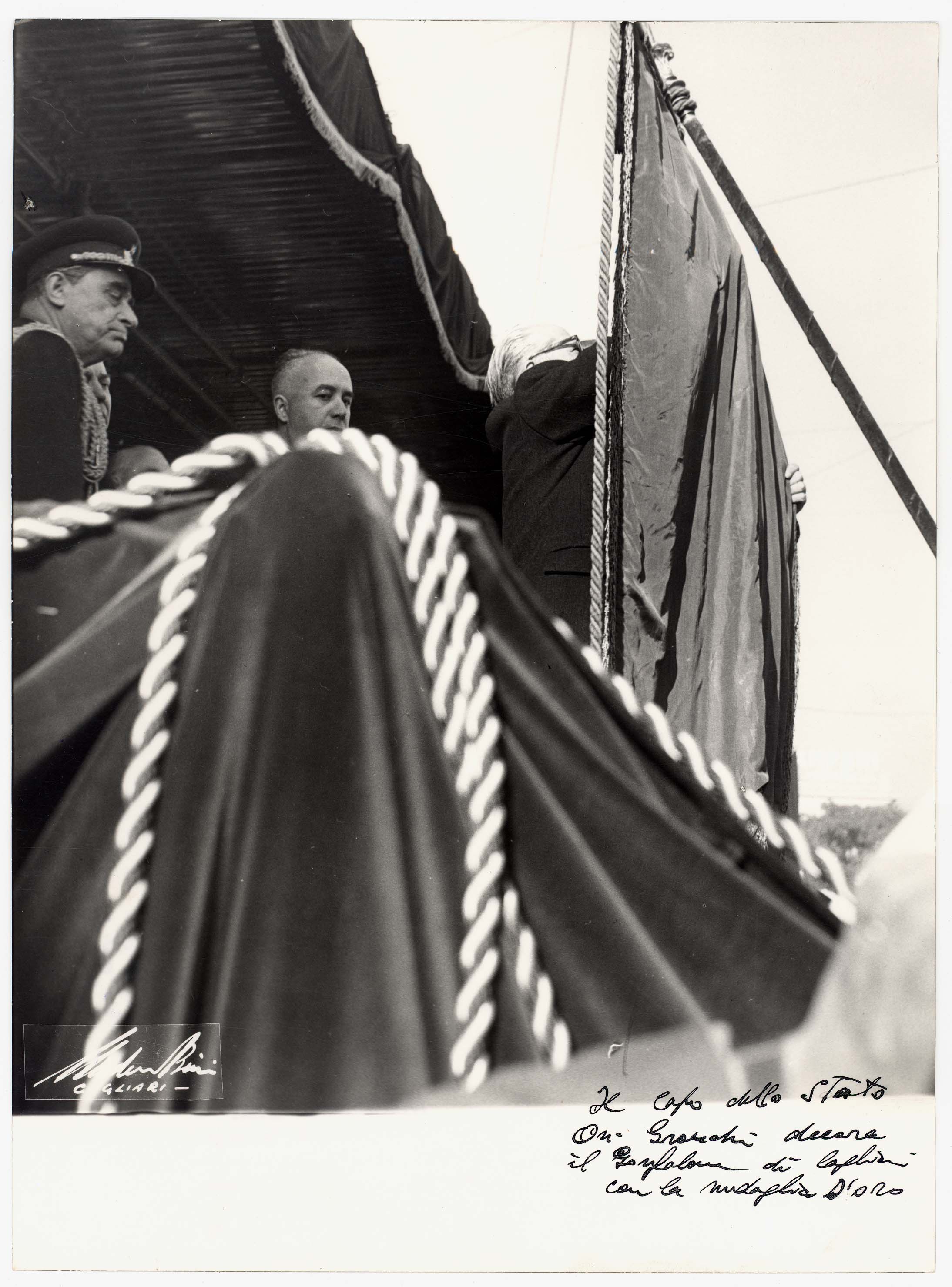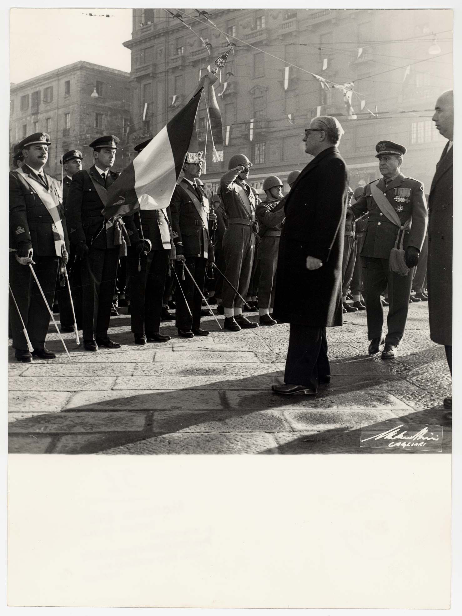 - Il Capo dello Stato Gronchi appunta sul gonfalone di Cagliari la medaglia d'oro.