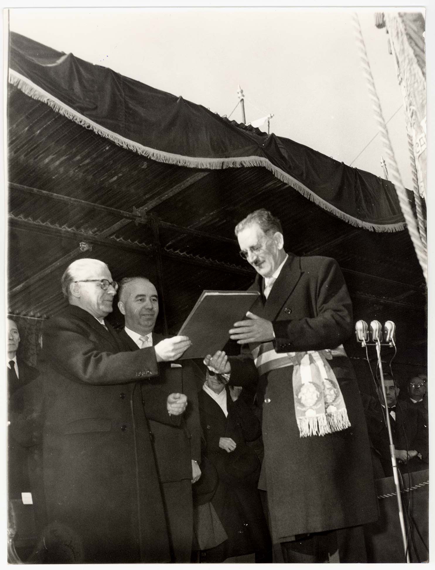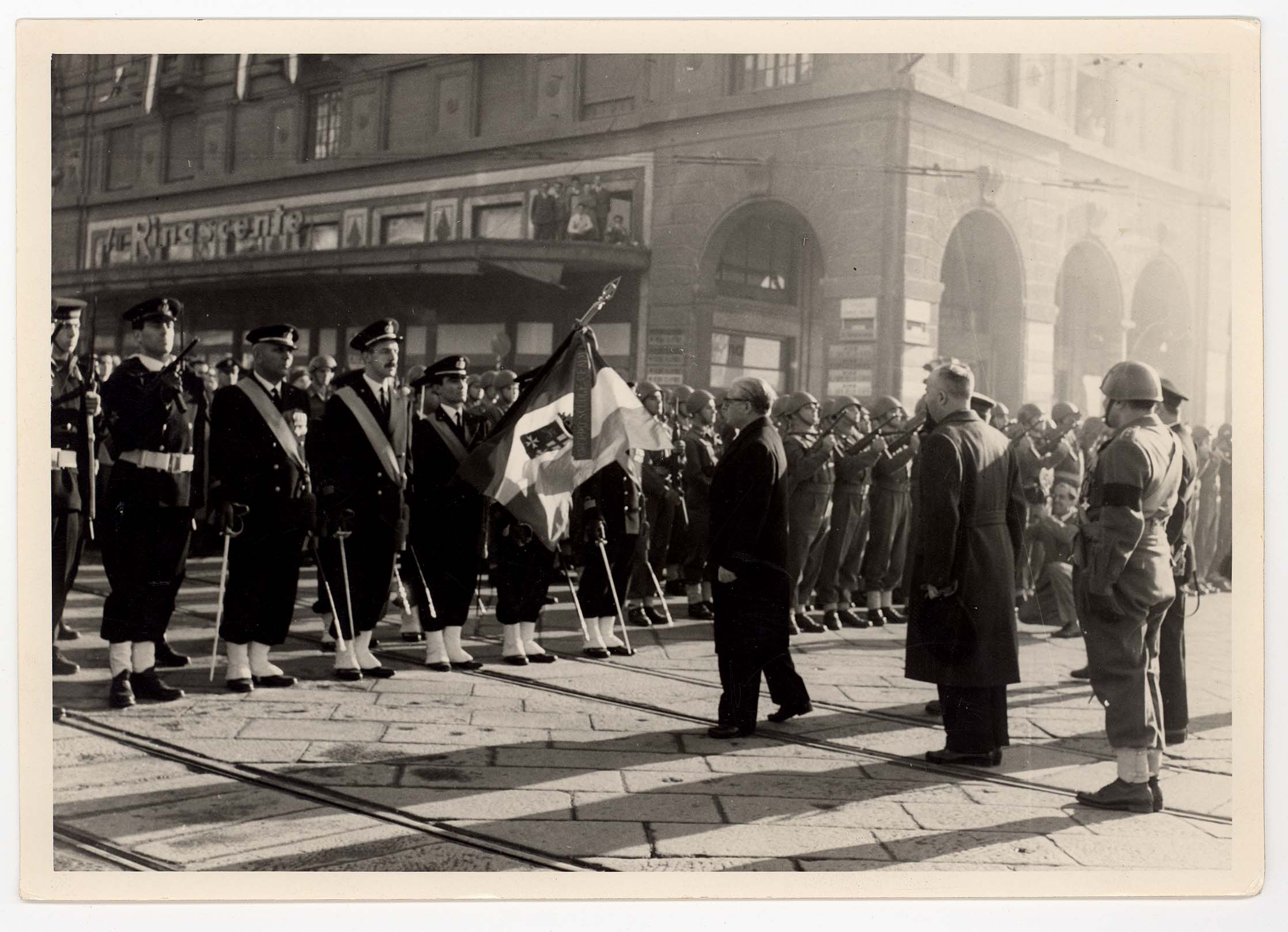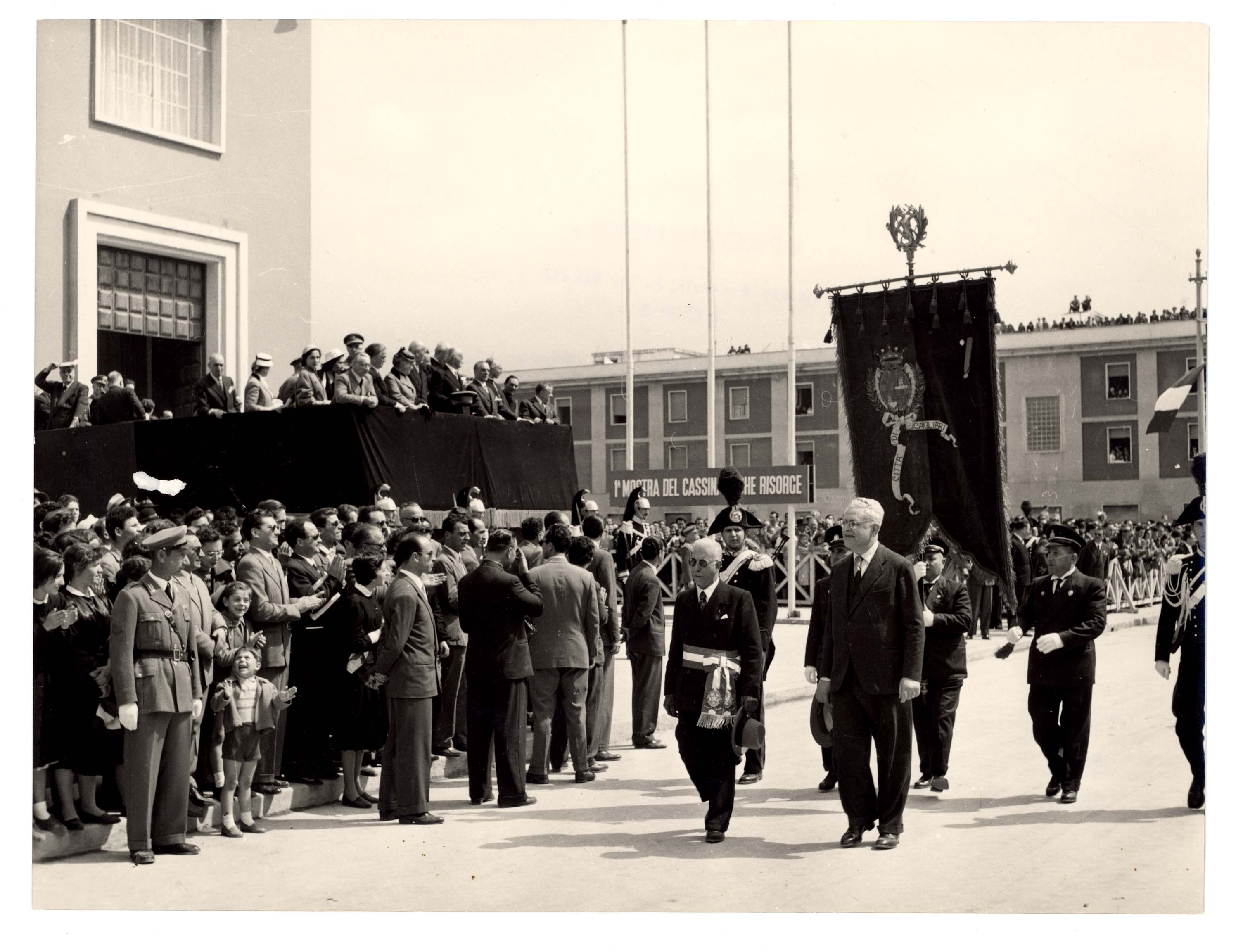 - Il Capo dello Stato Gronchi appunta sul gonfalone di Cagliari la medaglia d'oro.