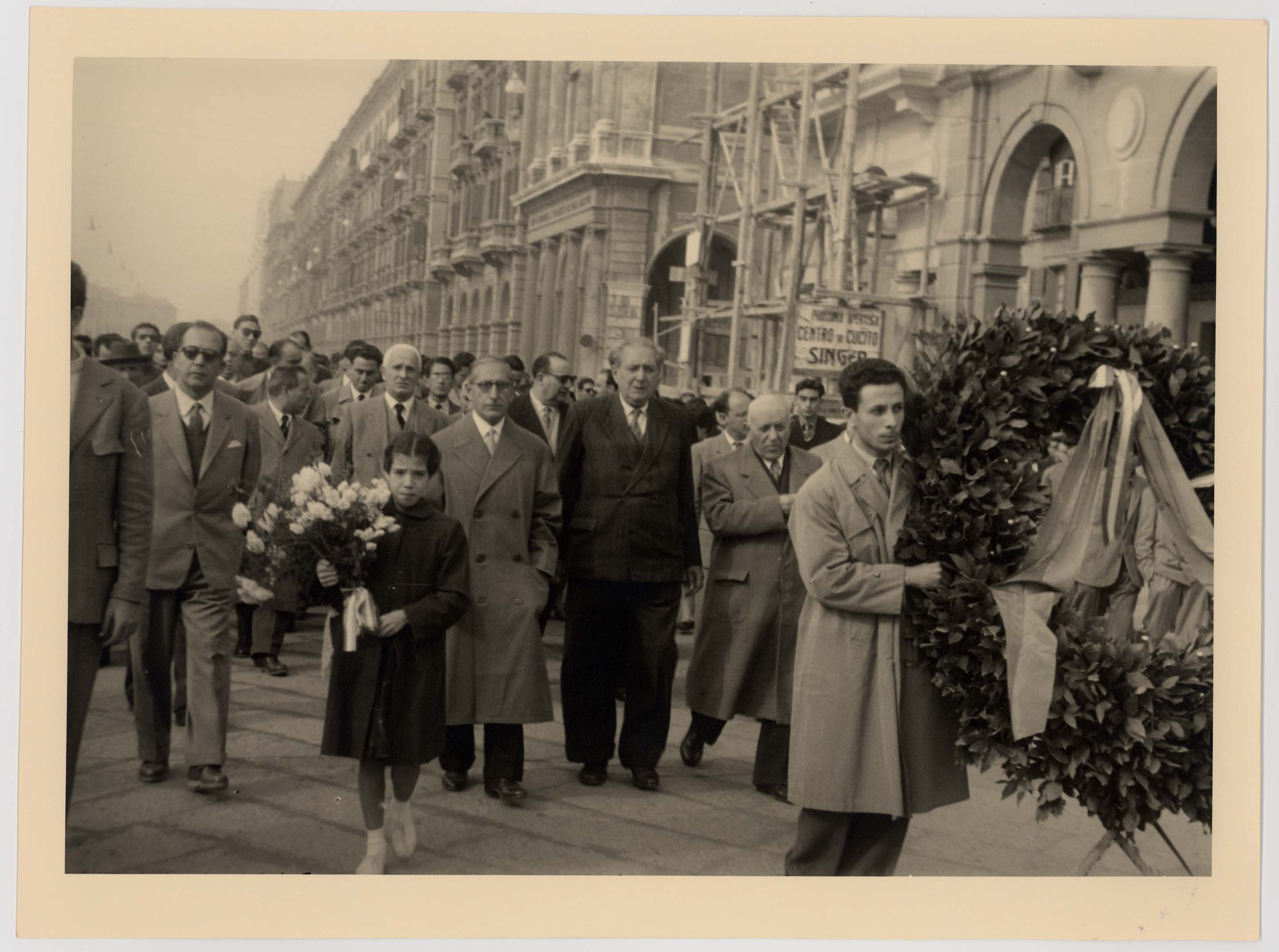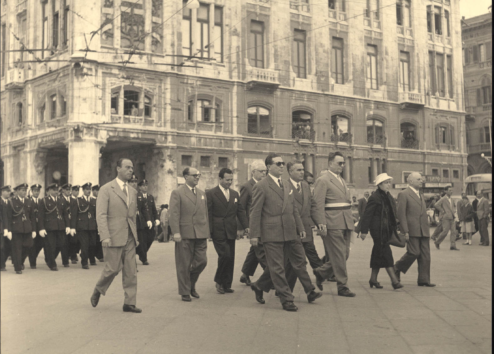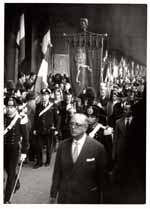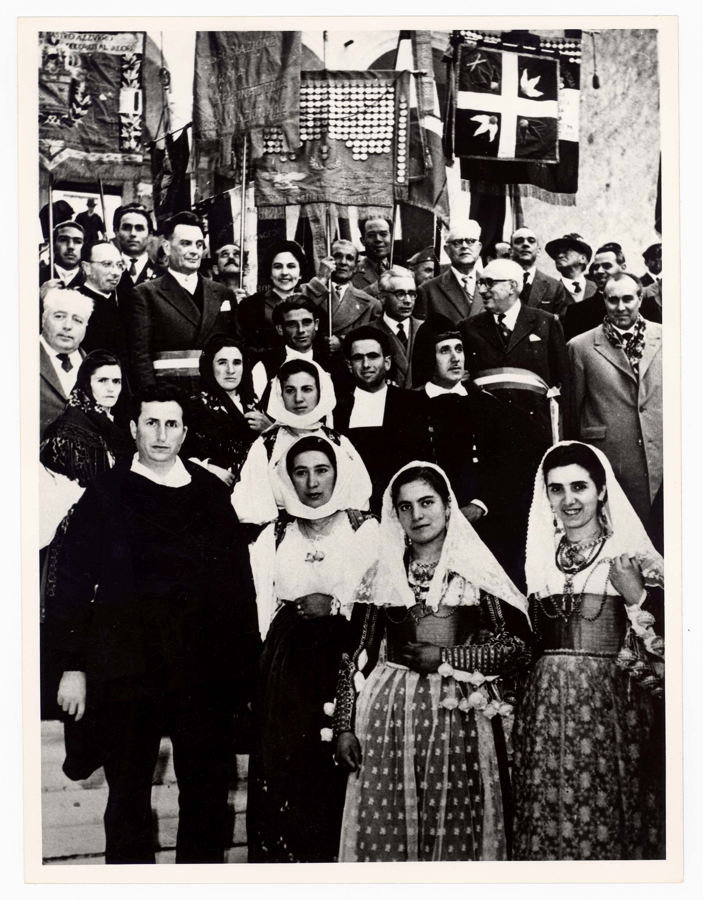 - Sfilata nella Via Roma dei rappresentanti dell'amministrazione comunale in occasione della festività di San Sebastiano, patrono dei vigili urbani. Nella foto sono visibili a partire da destra: Bonaccorso Fontana, Maria Teresa Atzori, Mario Floris, Luigi Fantola, Enrico Garu, Brunello Massazza, Michele Romagnino assessori del Comune di Cagliari sino al 1960