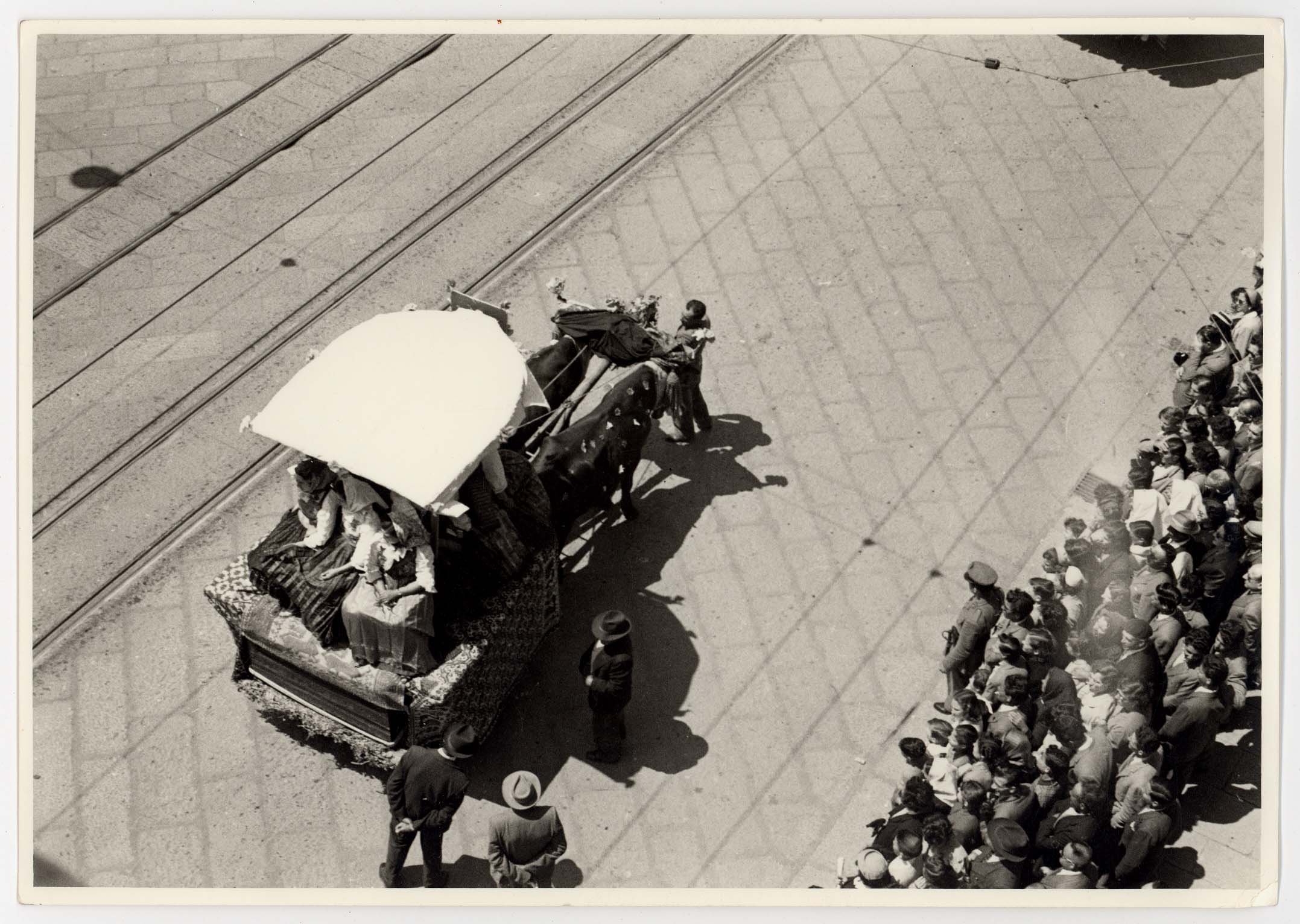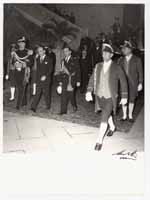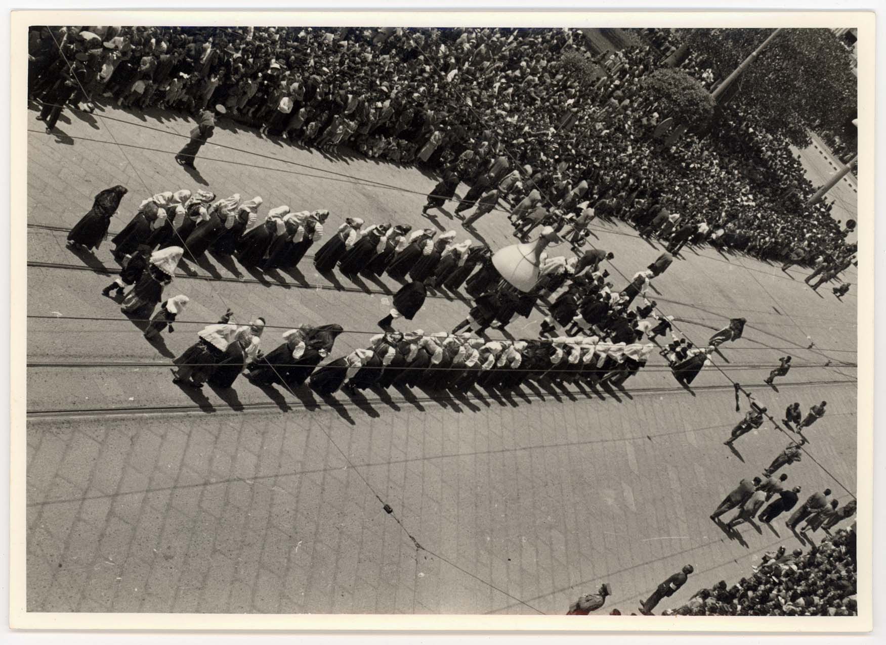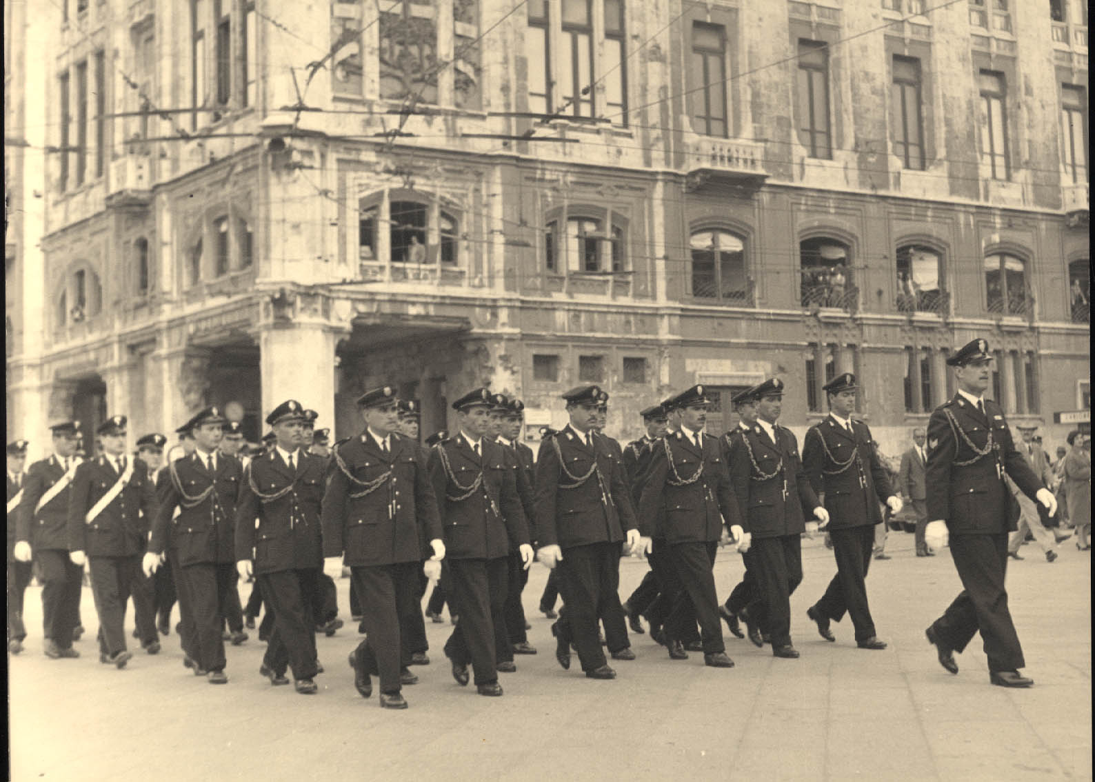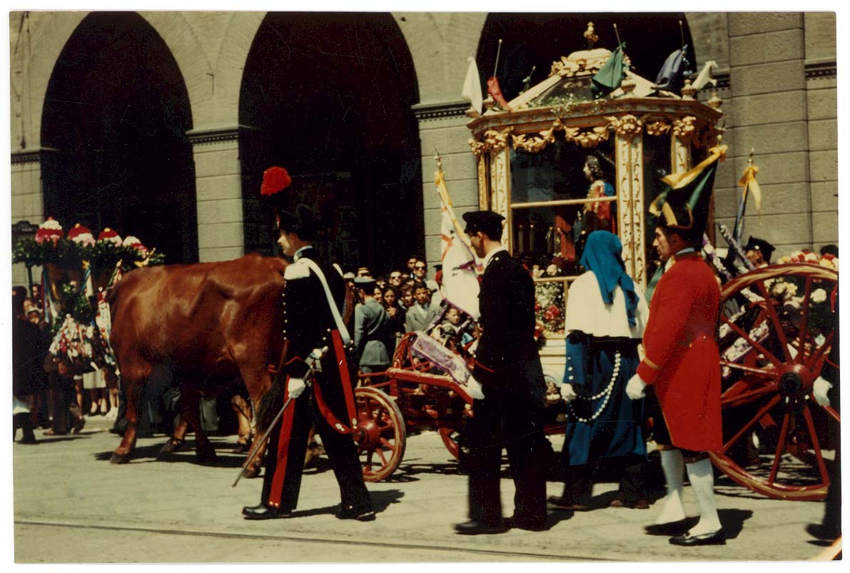 - Sfilata nella Via Roma dei rappresentanti dell'amministrazione comunale in occasione della festività di San Sebastiano, patrono dei vigili urbani. Nella foto sono visibili a partire da destra: Bonaccorso Fontana, Maria Teresa Atzori, Mario Floris, Luigi Fantola, Enrico Garu, Brunello Massazza, Michele Romagnino assessori del Comune di Cagliari sino al 1960