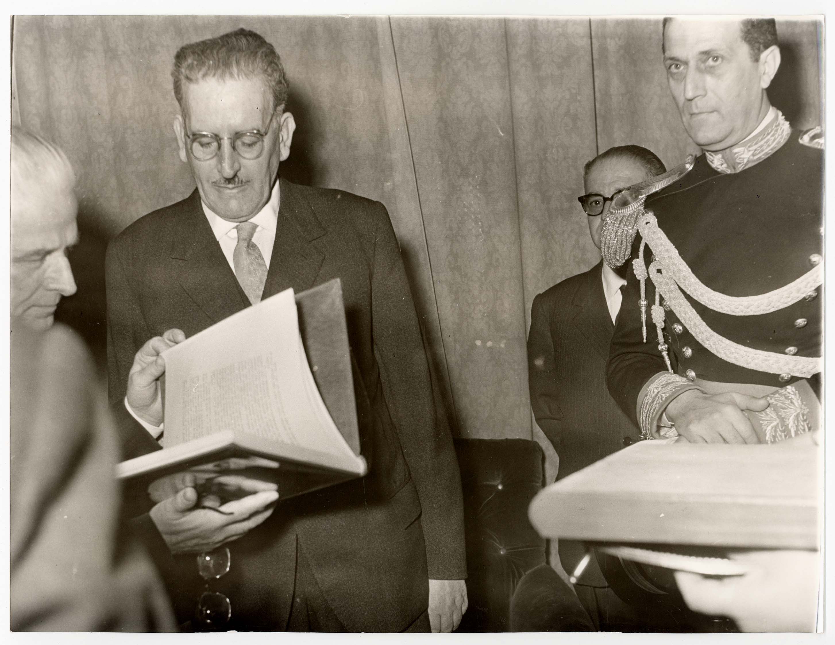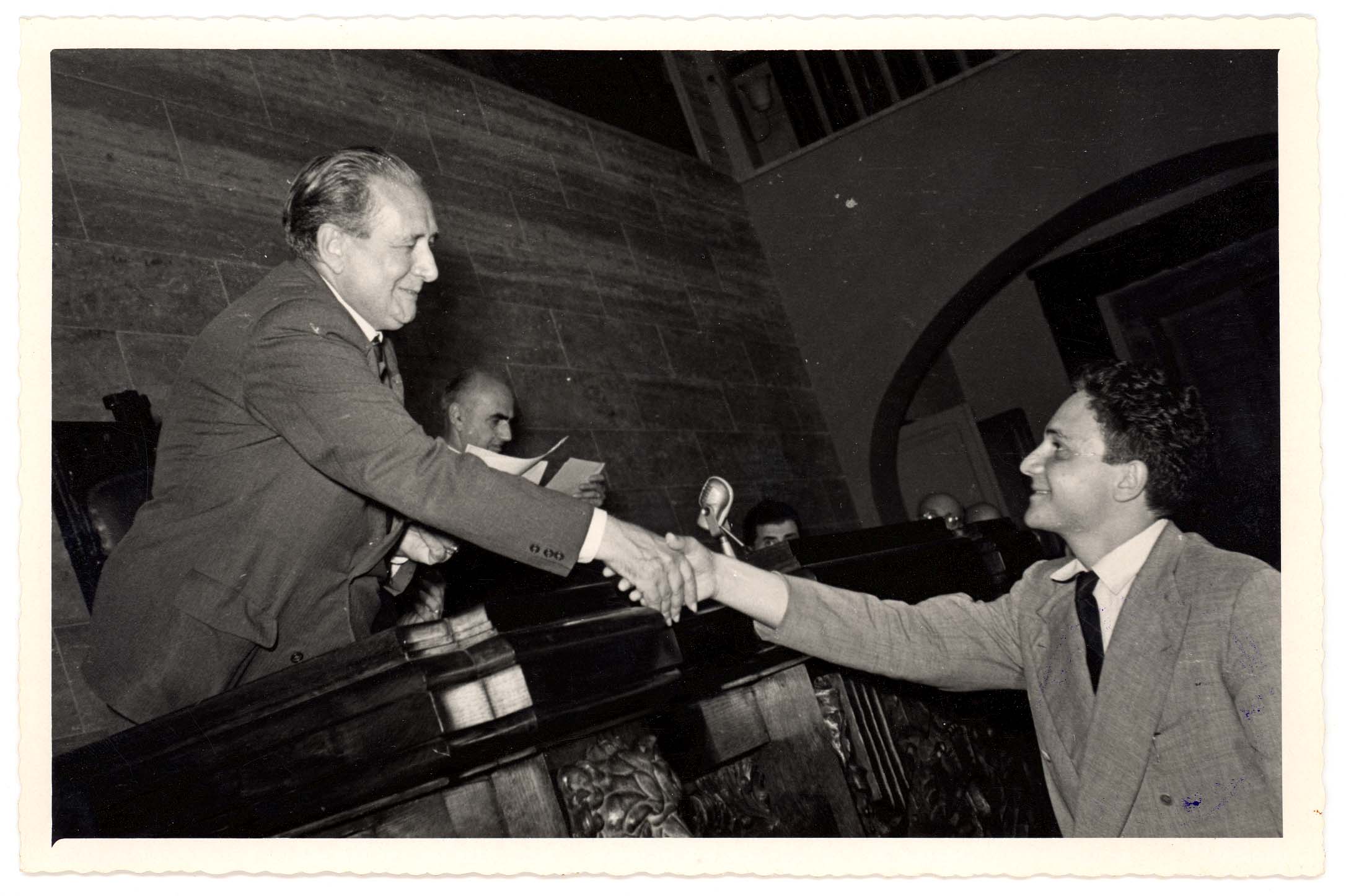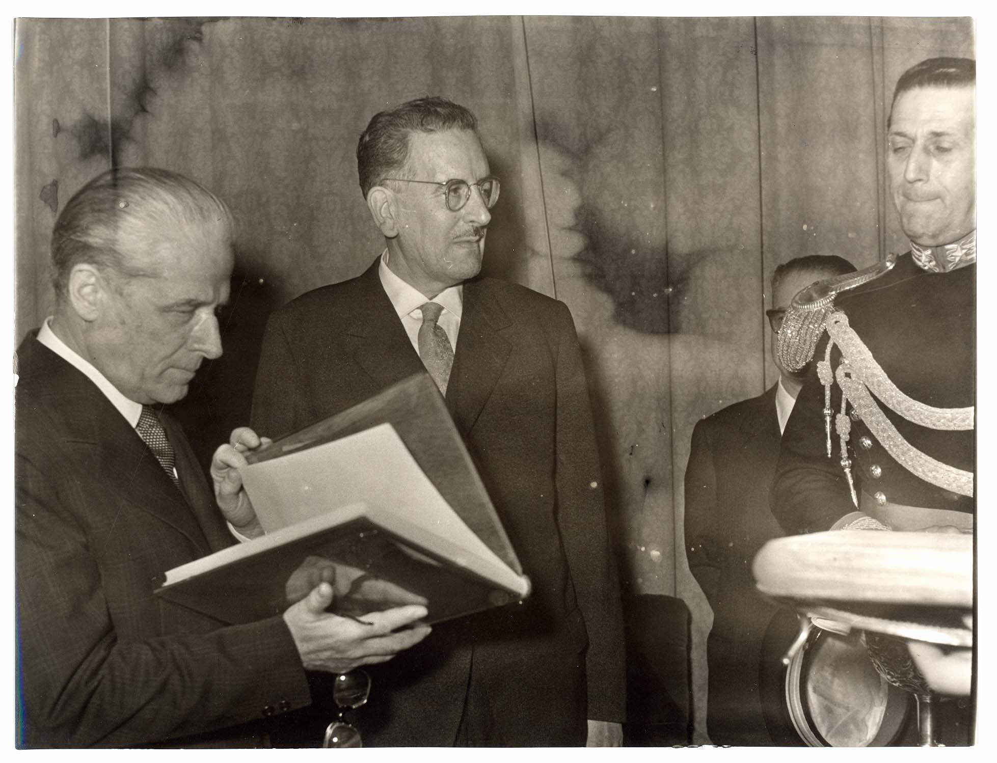 - Il Sindaco di Cagliari Palomba riceve il Capo dello Stato Gronchi in Comune in occasione di una sua visita in città.