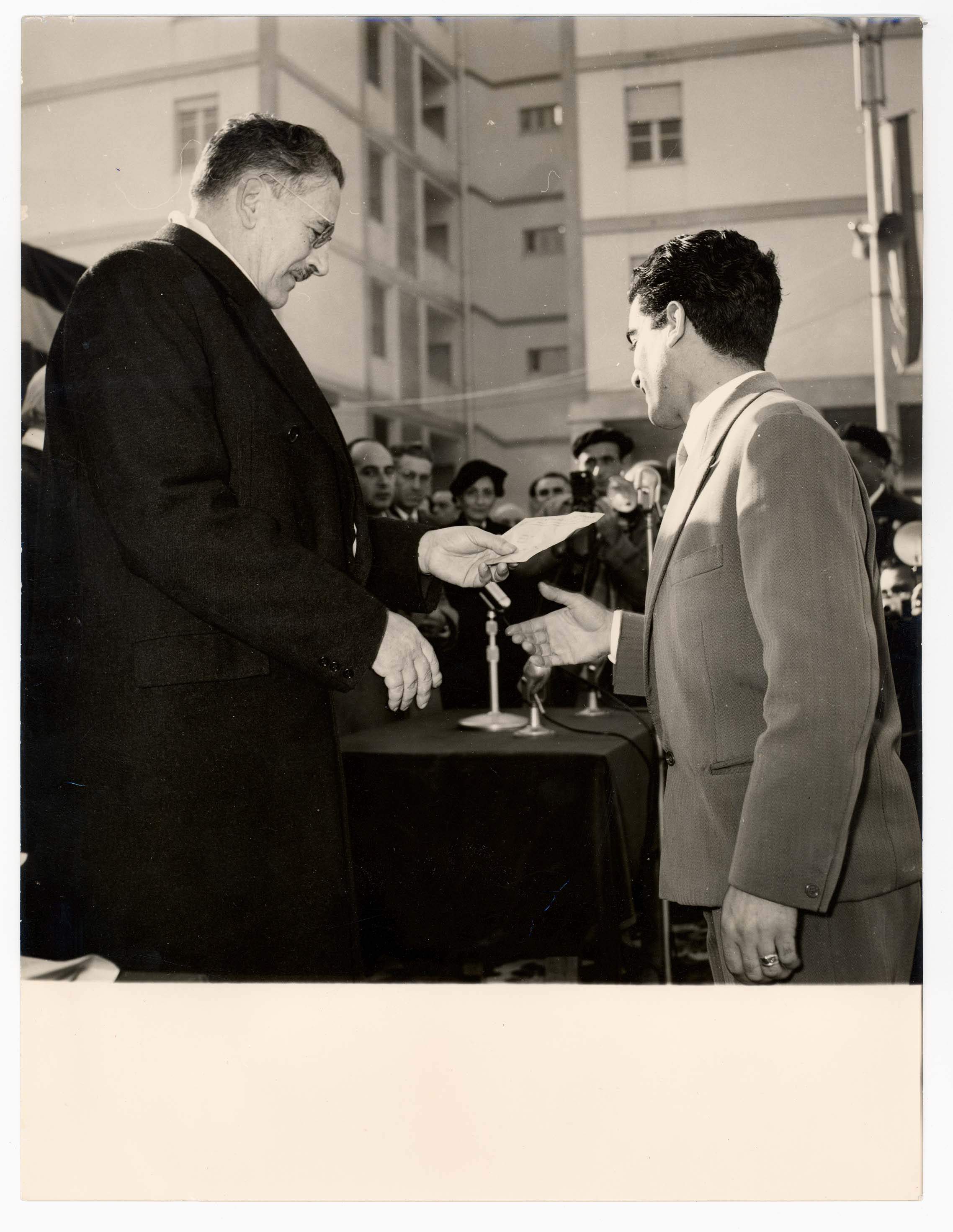 - Inaugurazione del complesso I.N.A. casa ad Is Mirrionis alla presenza del sindaco Palomba.