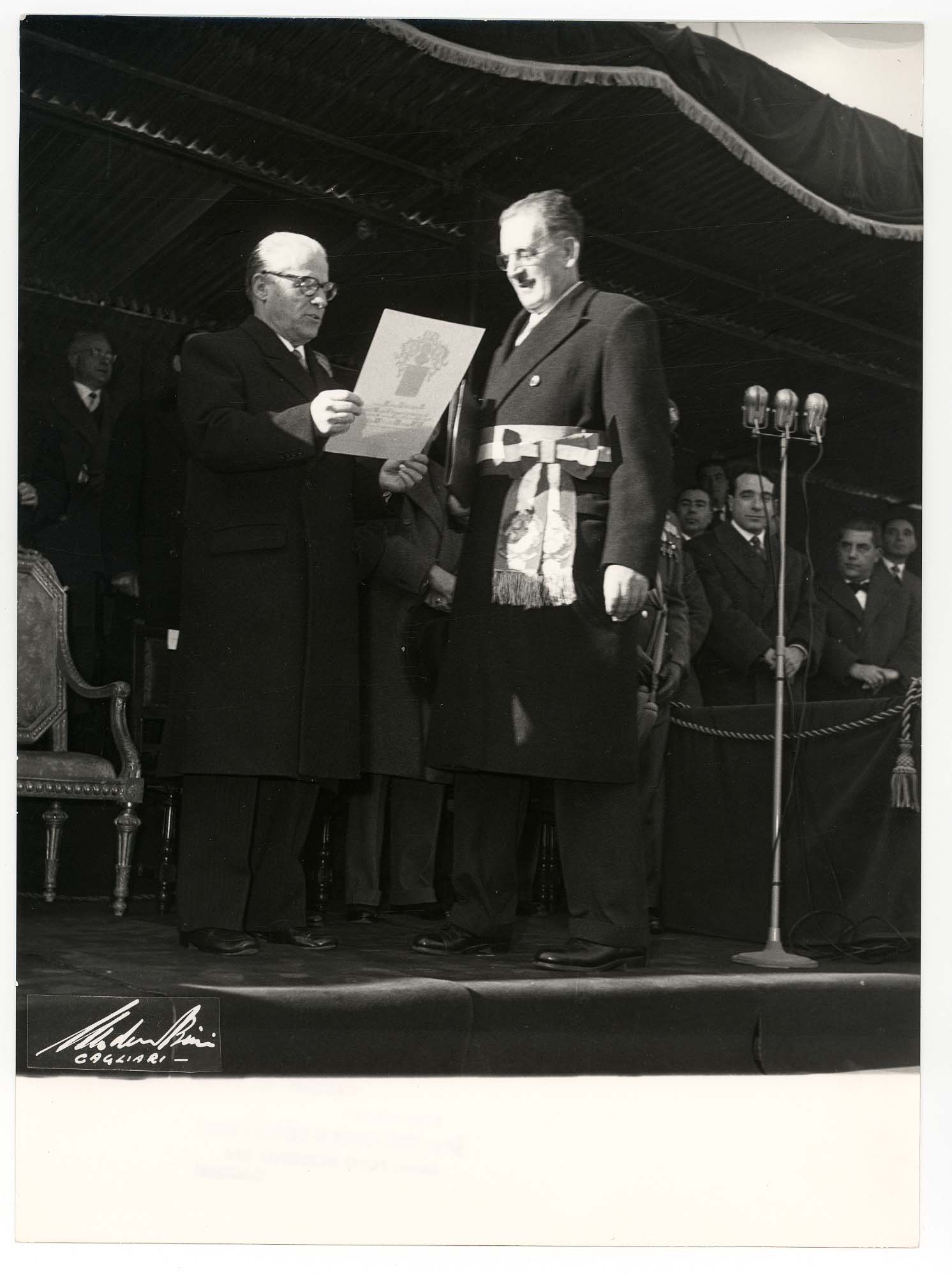 - Nella foto vediamo il Sindaco di Cagliari Palomba con Il presidente dello Stato Gronchi in occasione di una sua visita in città.