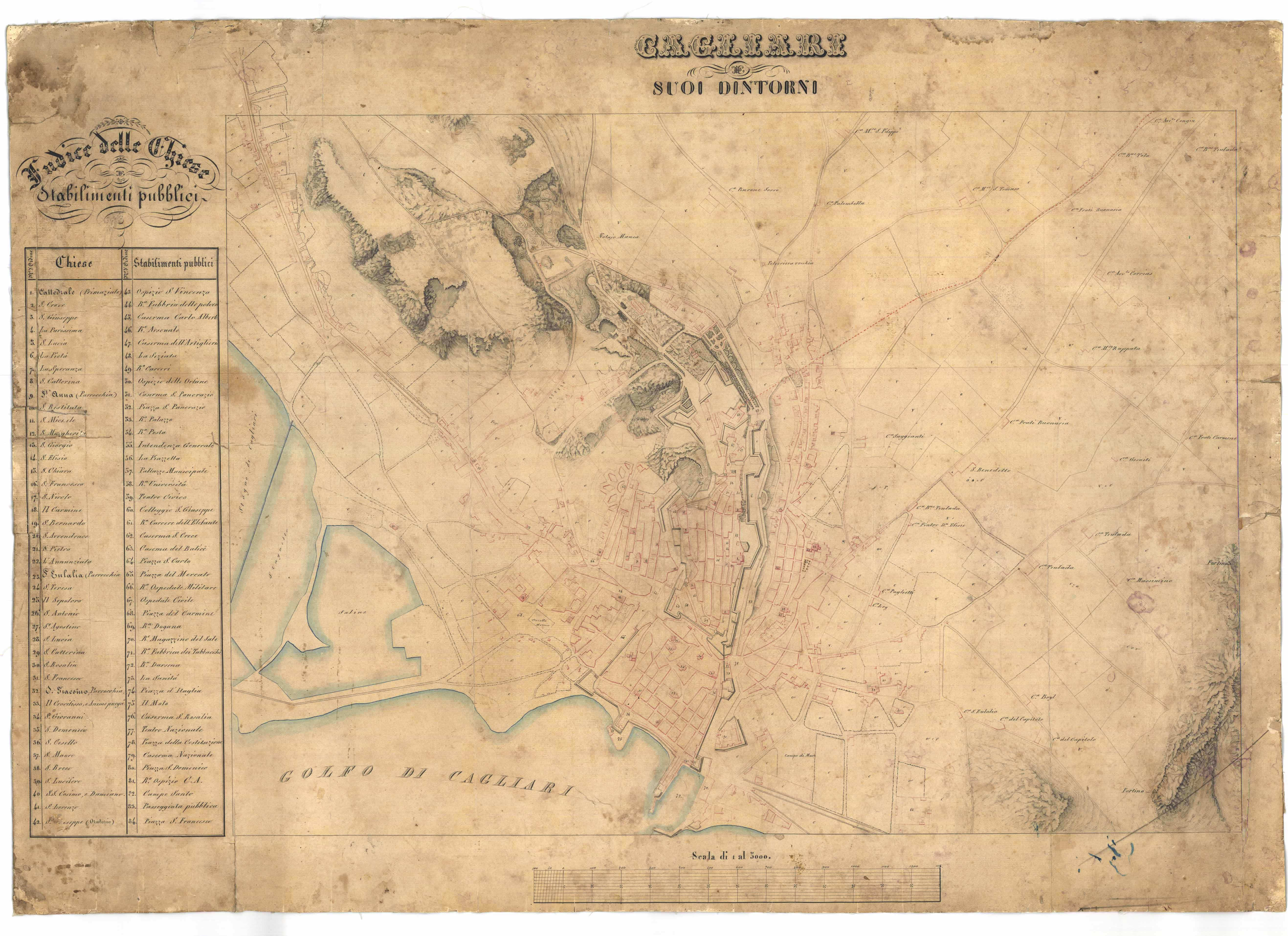 - Cagliari-Plan of cagliari list of pubblic buildings and churches