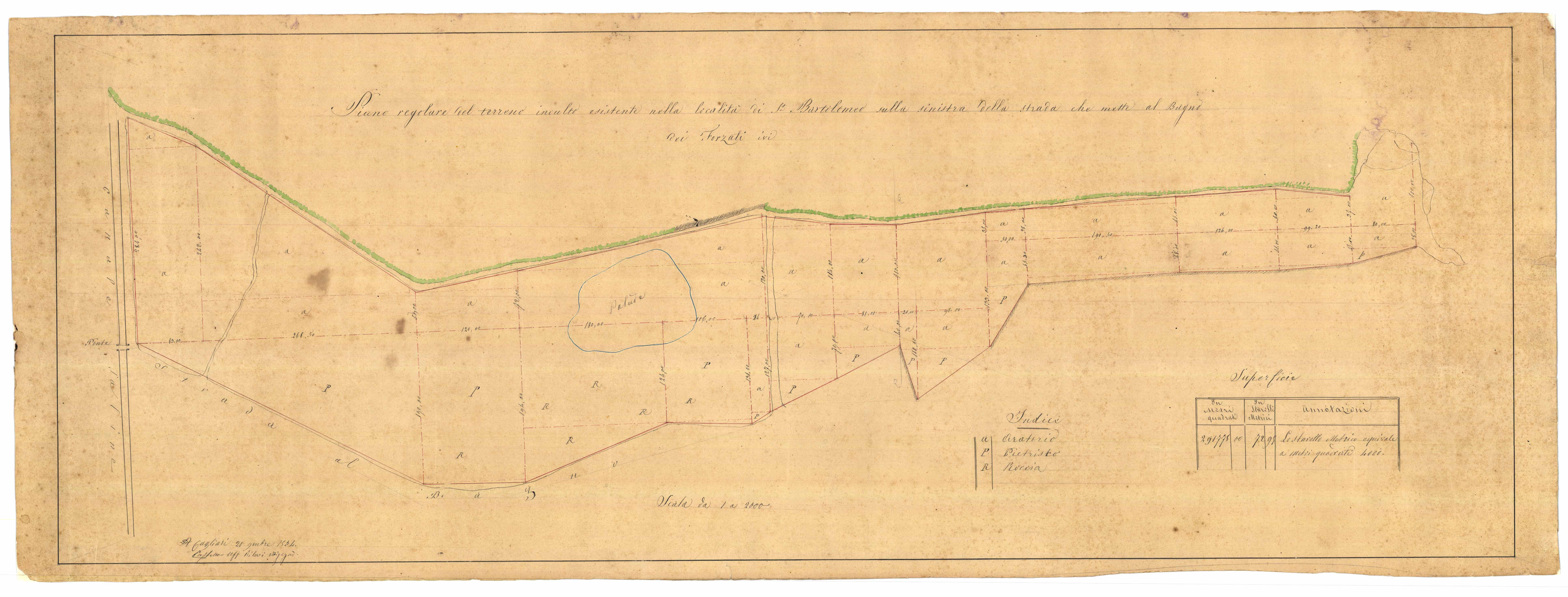 - Piano regolare del terreno inculto (sic) esistente nella località di s. Bartolomeo sula sinistra della strada che mette al bagno dei forzati ivi