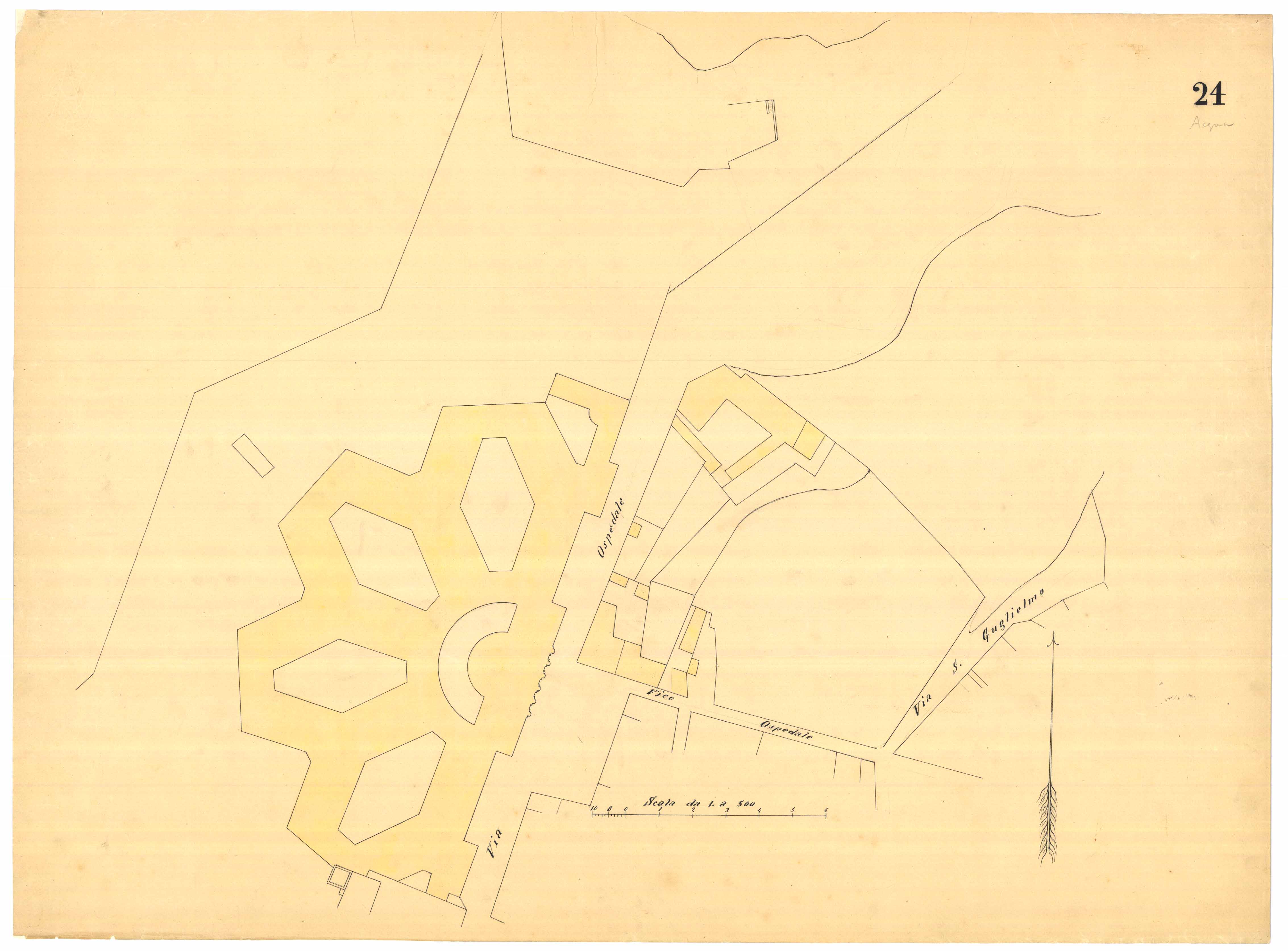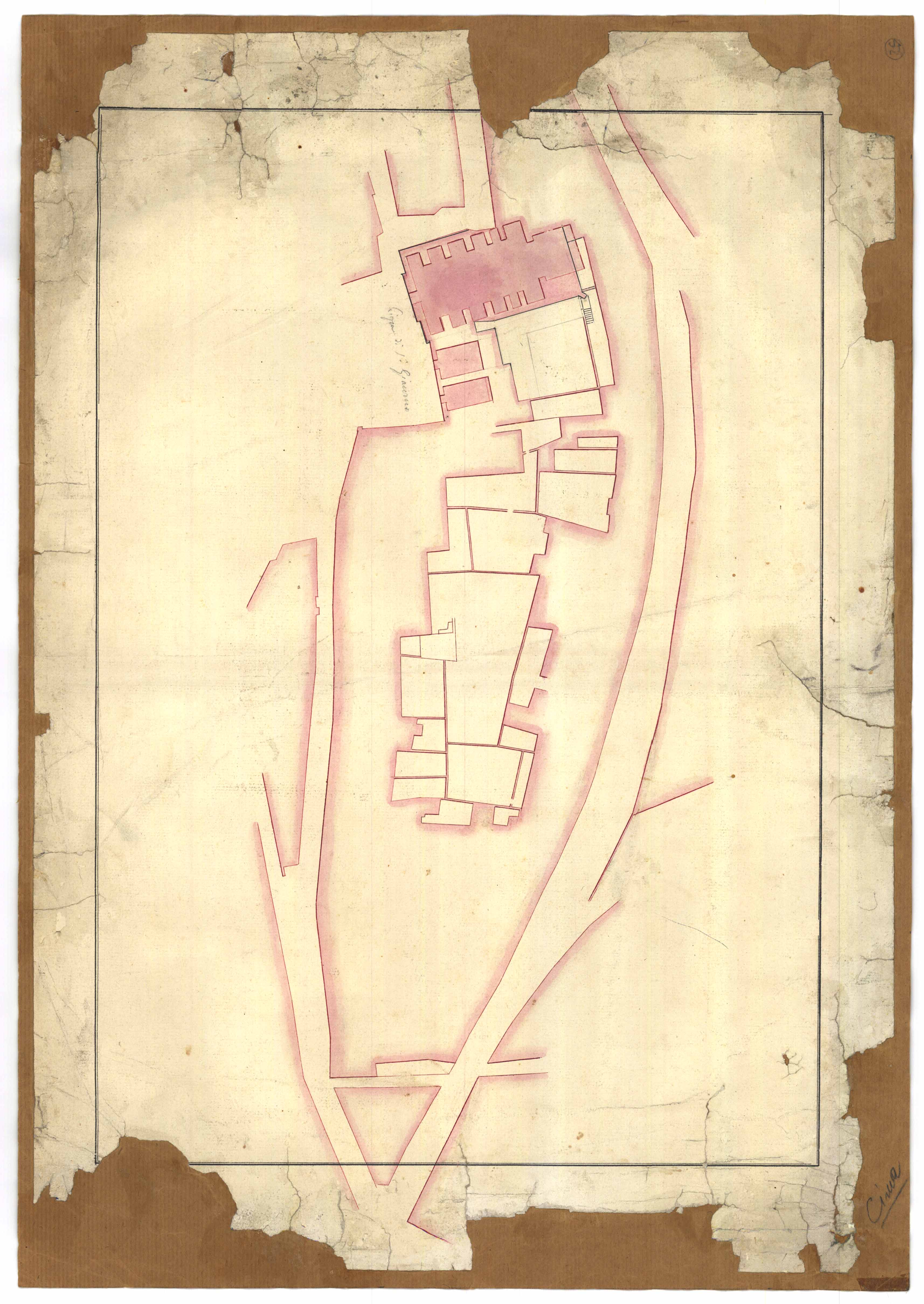 - Planimetria dell'area dell'ospedale civile nel quartiere di Stampace.