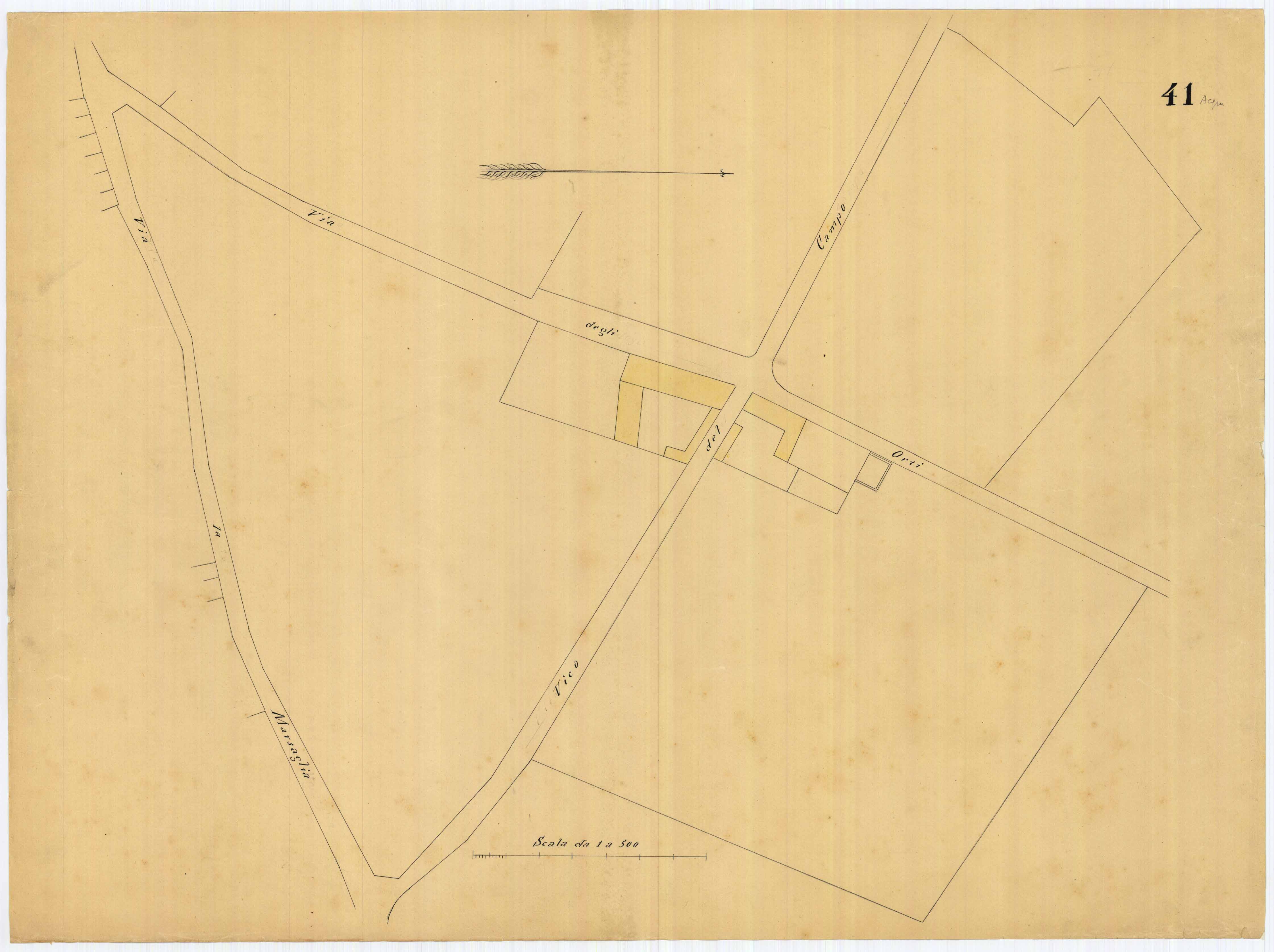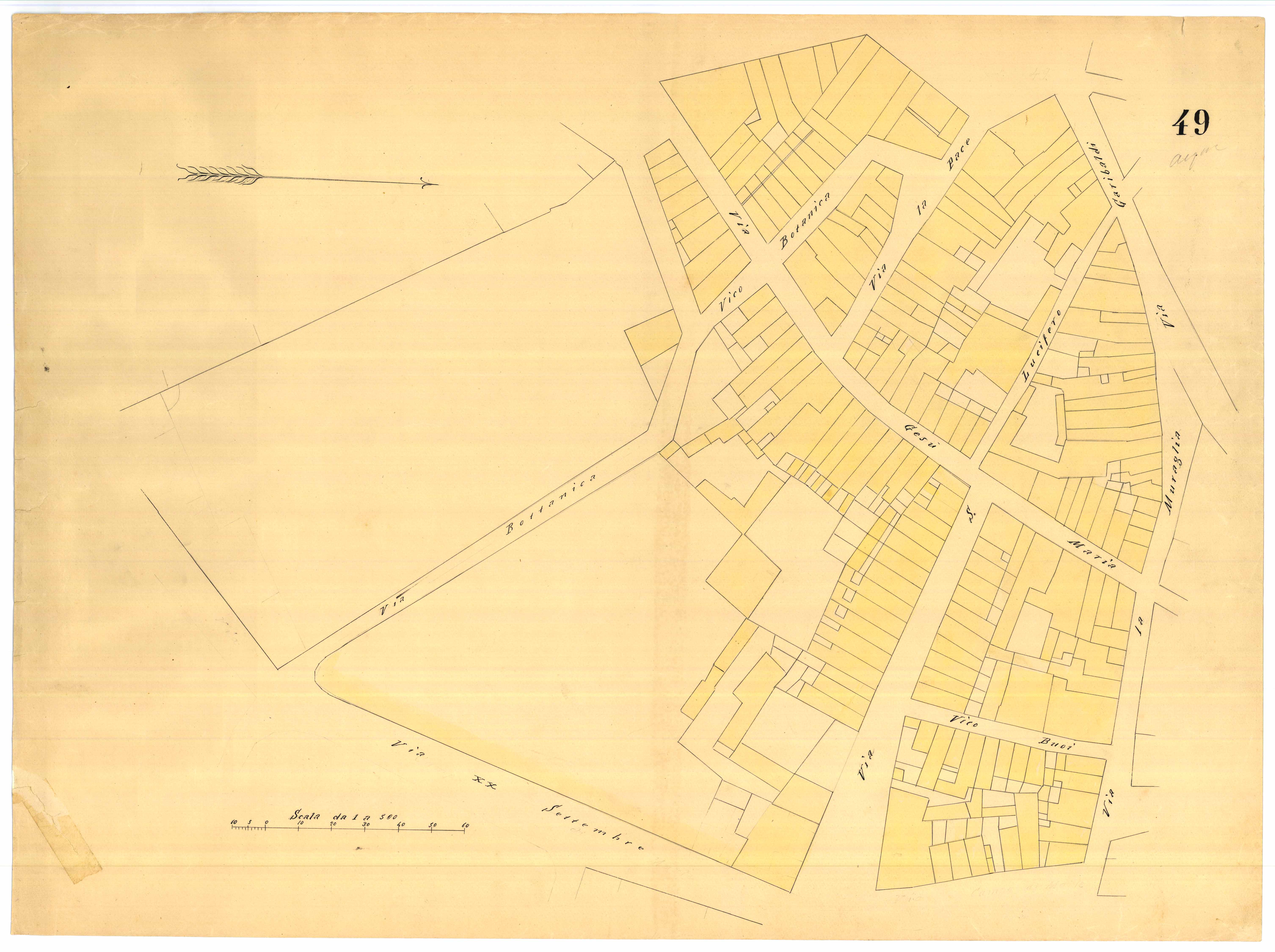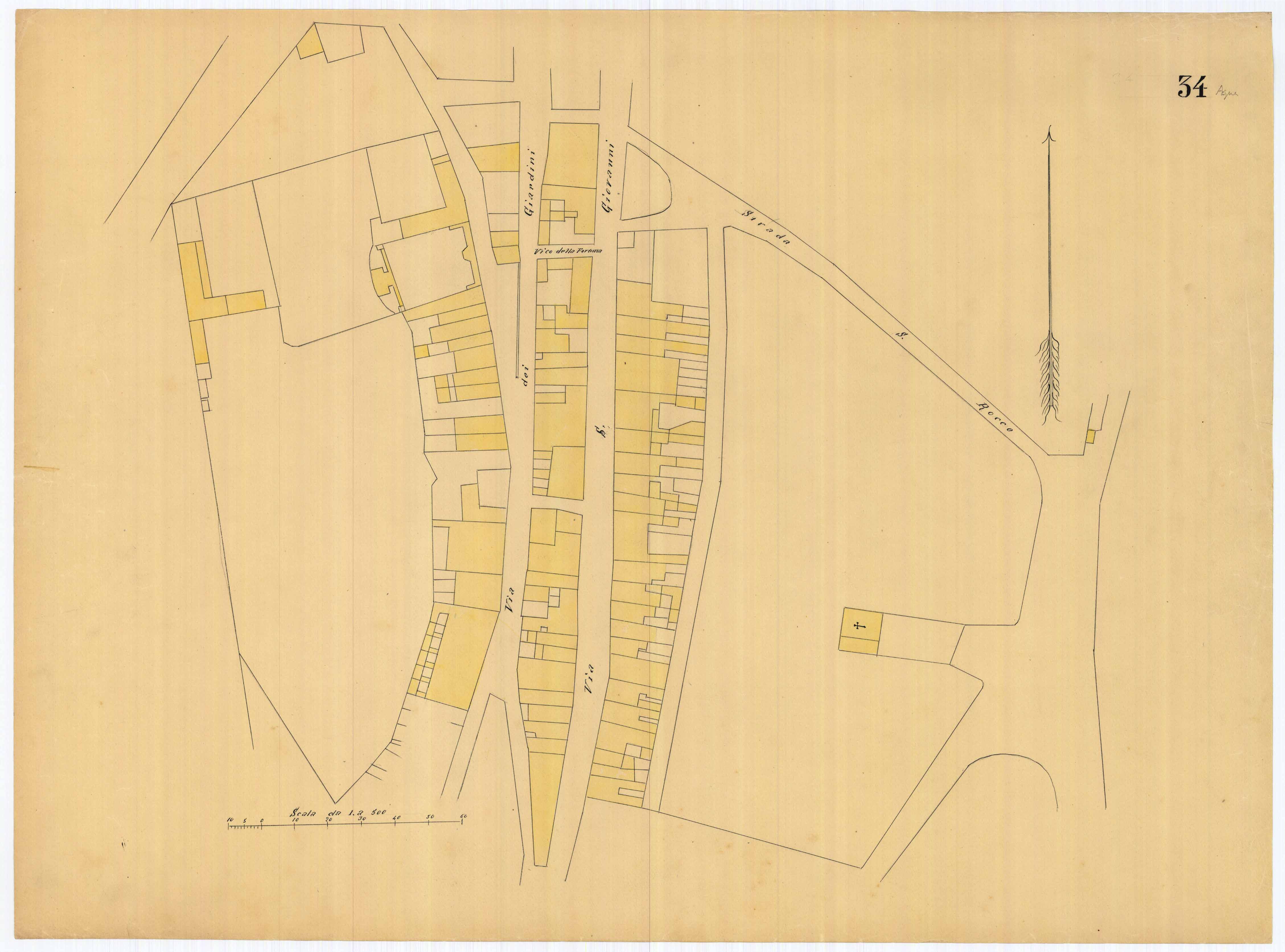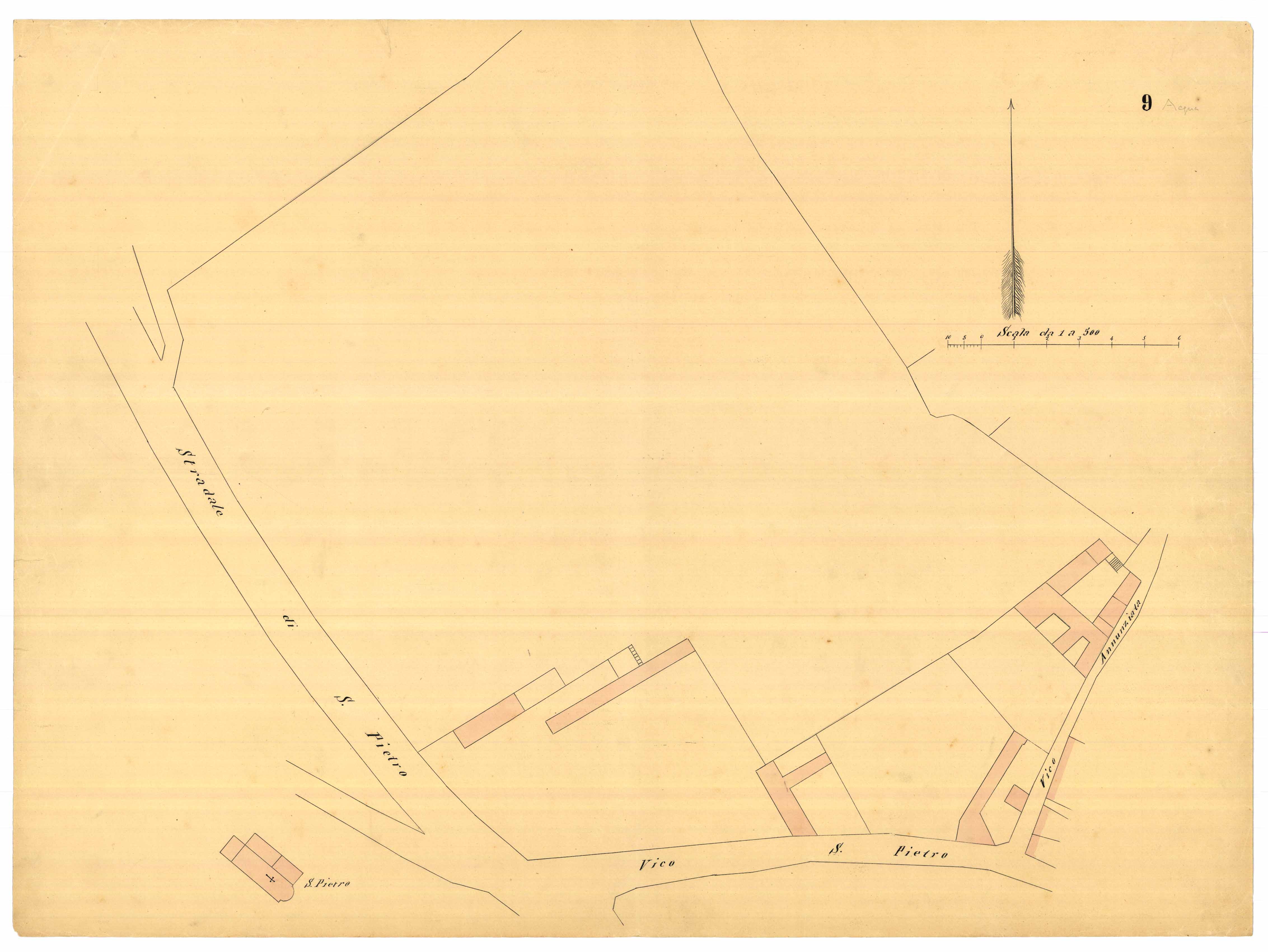 - La pianta comprende l'area estesa tra via roma, vico Circonvallazine (attuale via Concezione), via Cavour, via Darsena (attuale via Porcile)