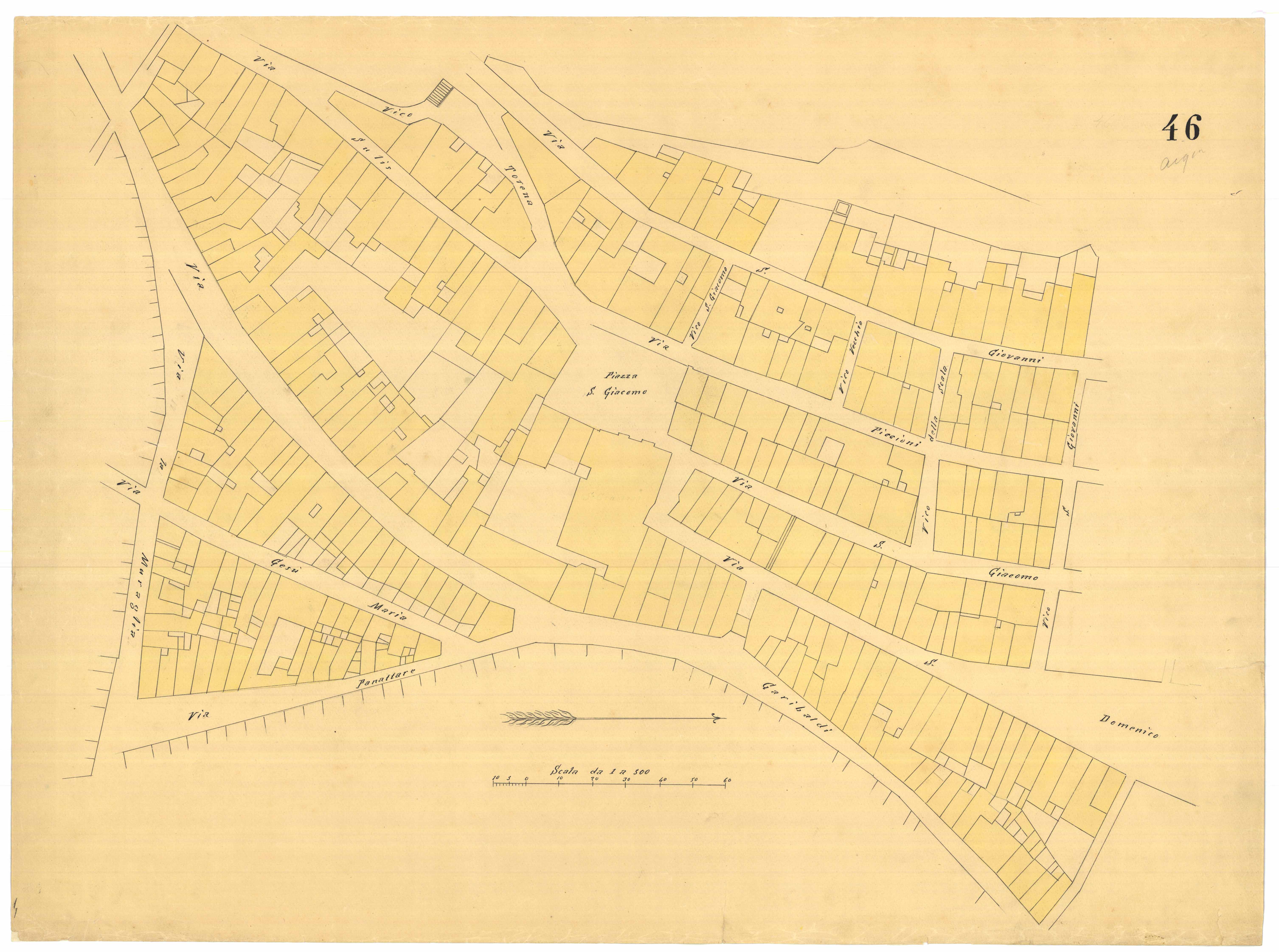 - Pianta della piazza S. Giacomo e delle varie abitazioni situate tra via Sulis e via Garibaldi.