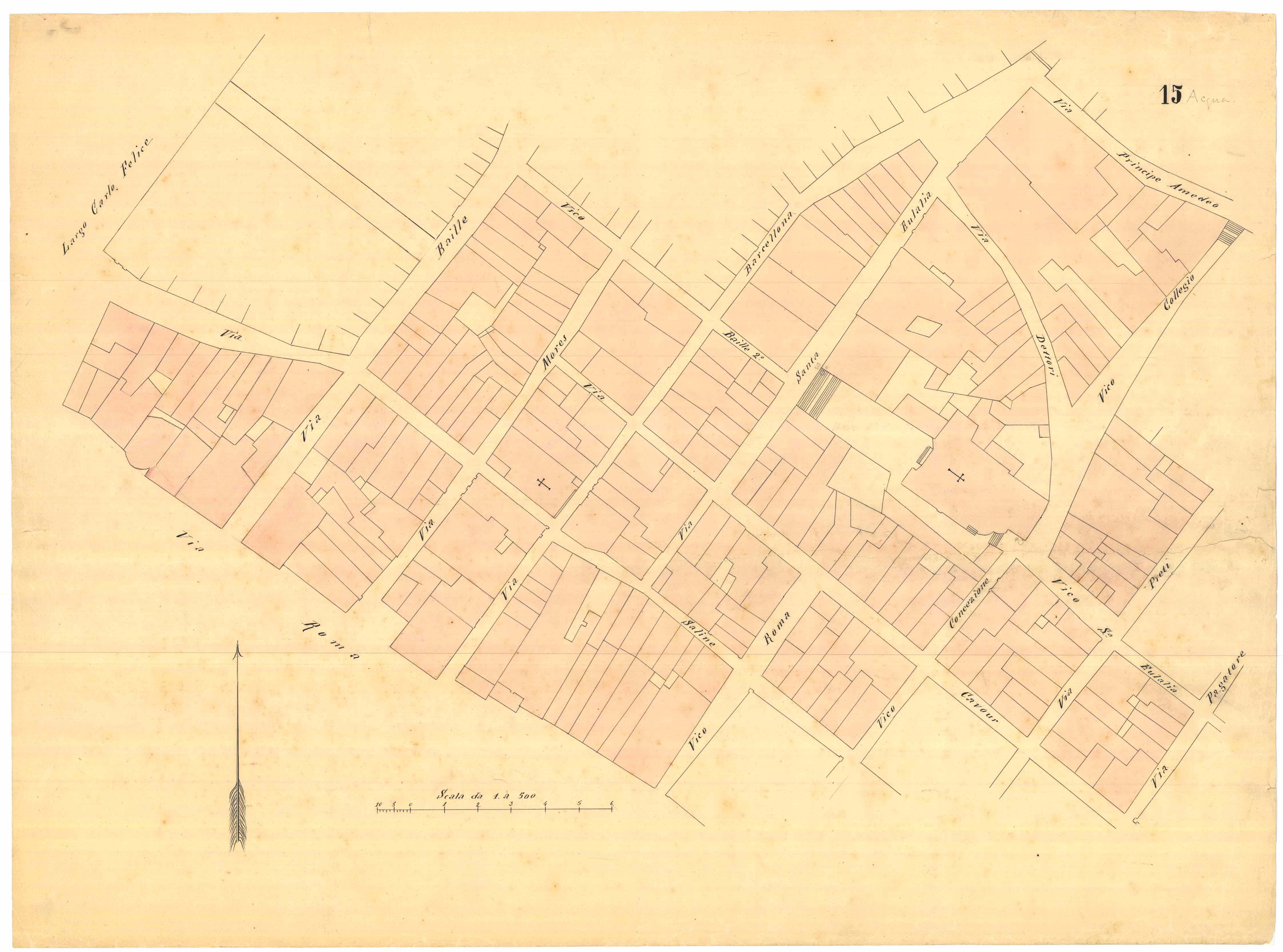 - La Planimetria comprende l'area tra via Roma, piazza Carlo Felice (attuale Largo Carlo Felice), via Azuni, via Sassari.