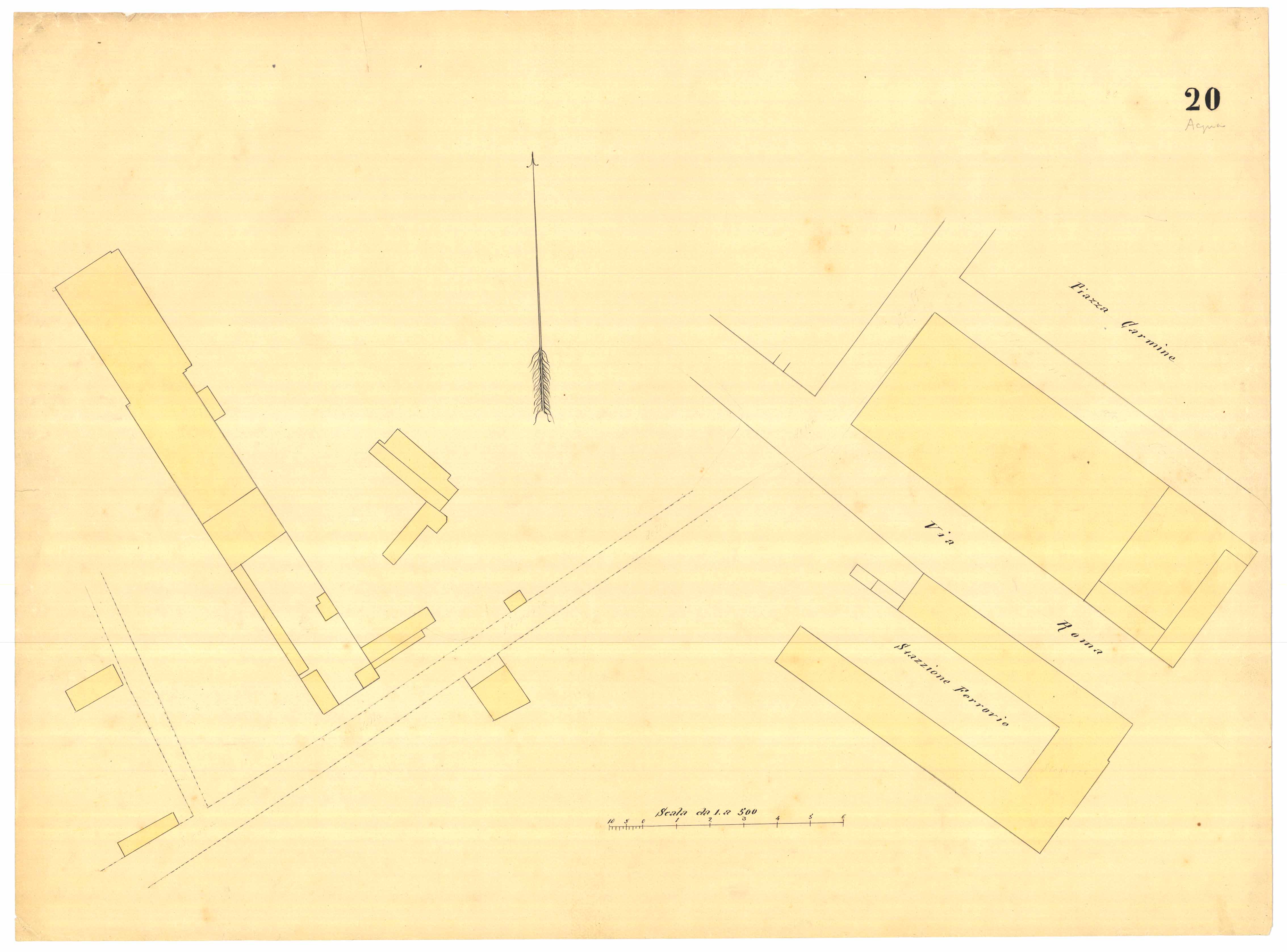 - La pianta comprende l'area estesa tra via Umberto I 8attuale viale Regina Margherita) e via XX Settembre.