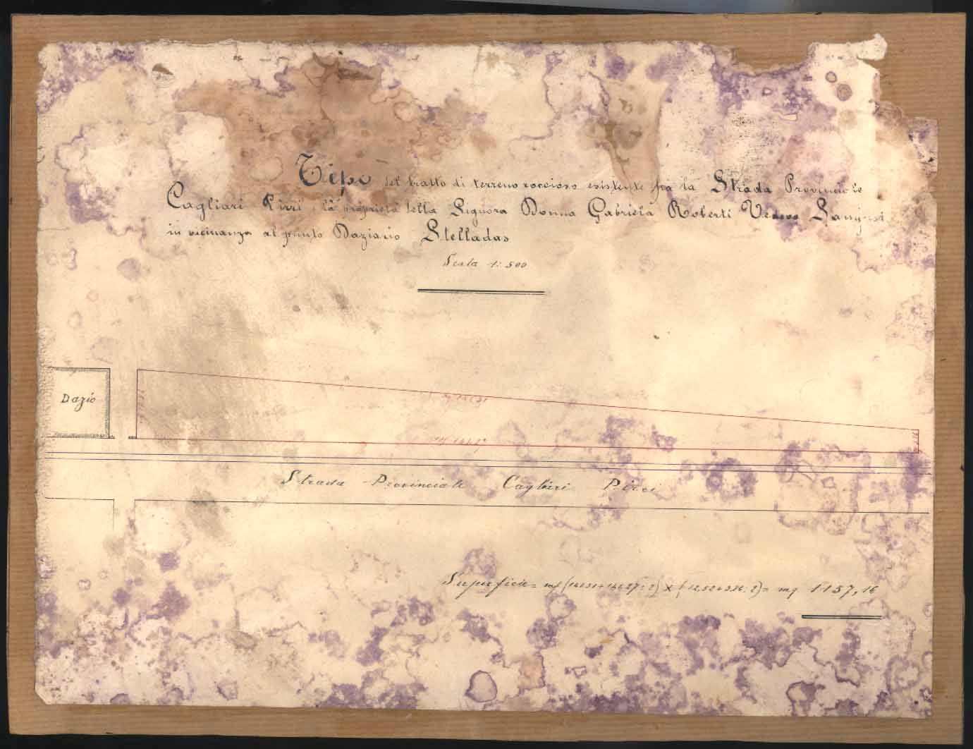 - Tipo del tratto di terreno roccioso esistente tra la Strada Provinciale Cagliari-Pirri e la proprietà della signora Dona Gabriela Roberti vedova Sanjust in vicinanza al punto daziario Stelladas.