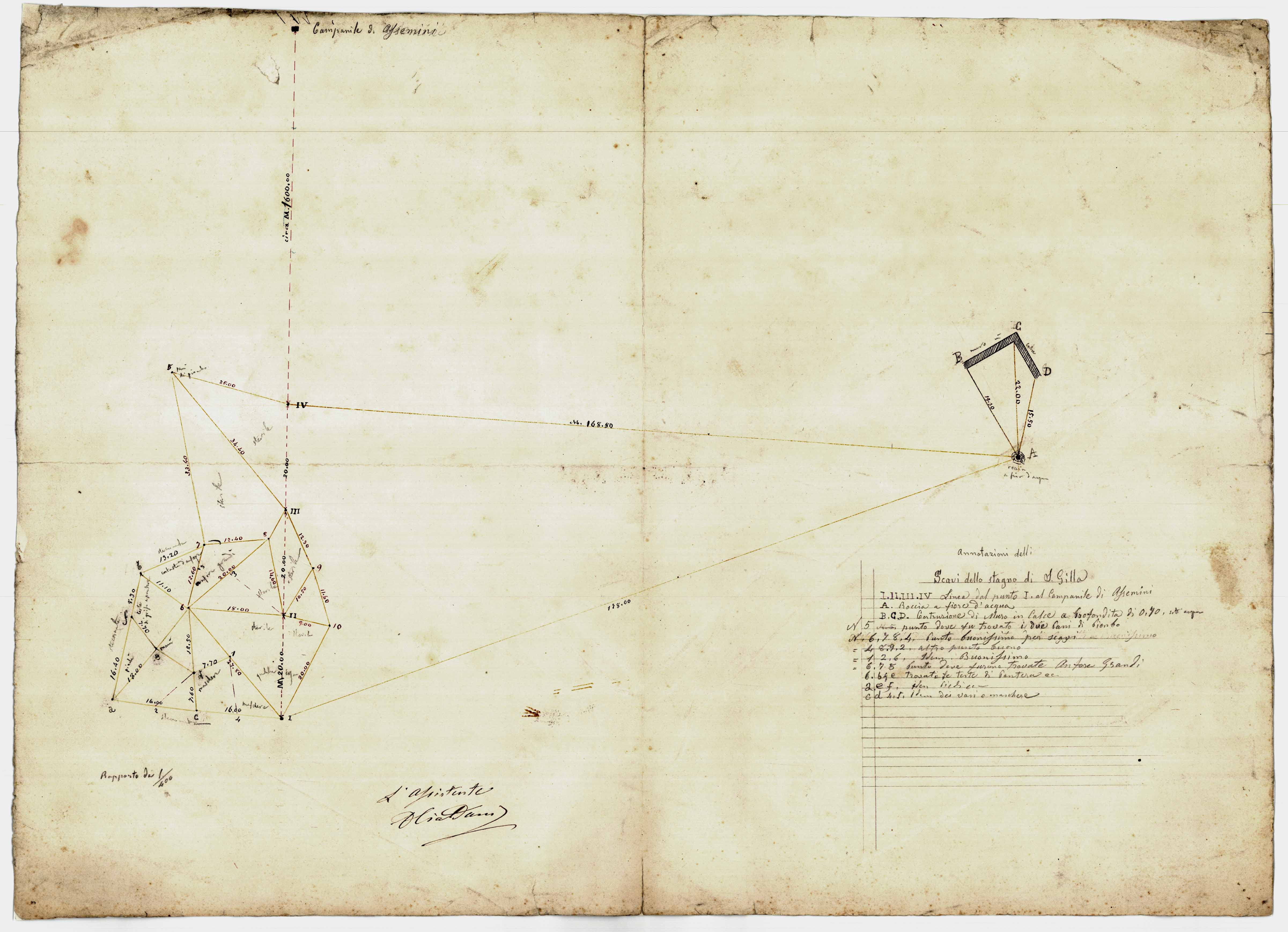 - Si tratta della pianta del sito archeologico di S. Gilla con indicate le varie triangolazione e una legenda indicante i reperti e i luoghi dei ritrovamenti archeologici.