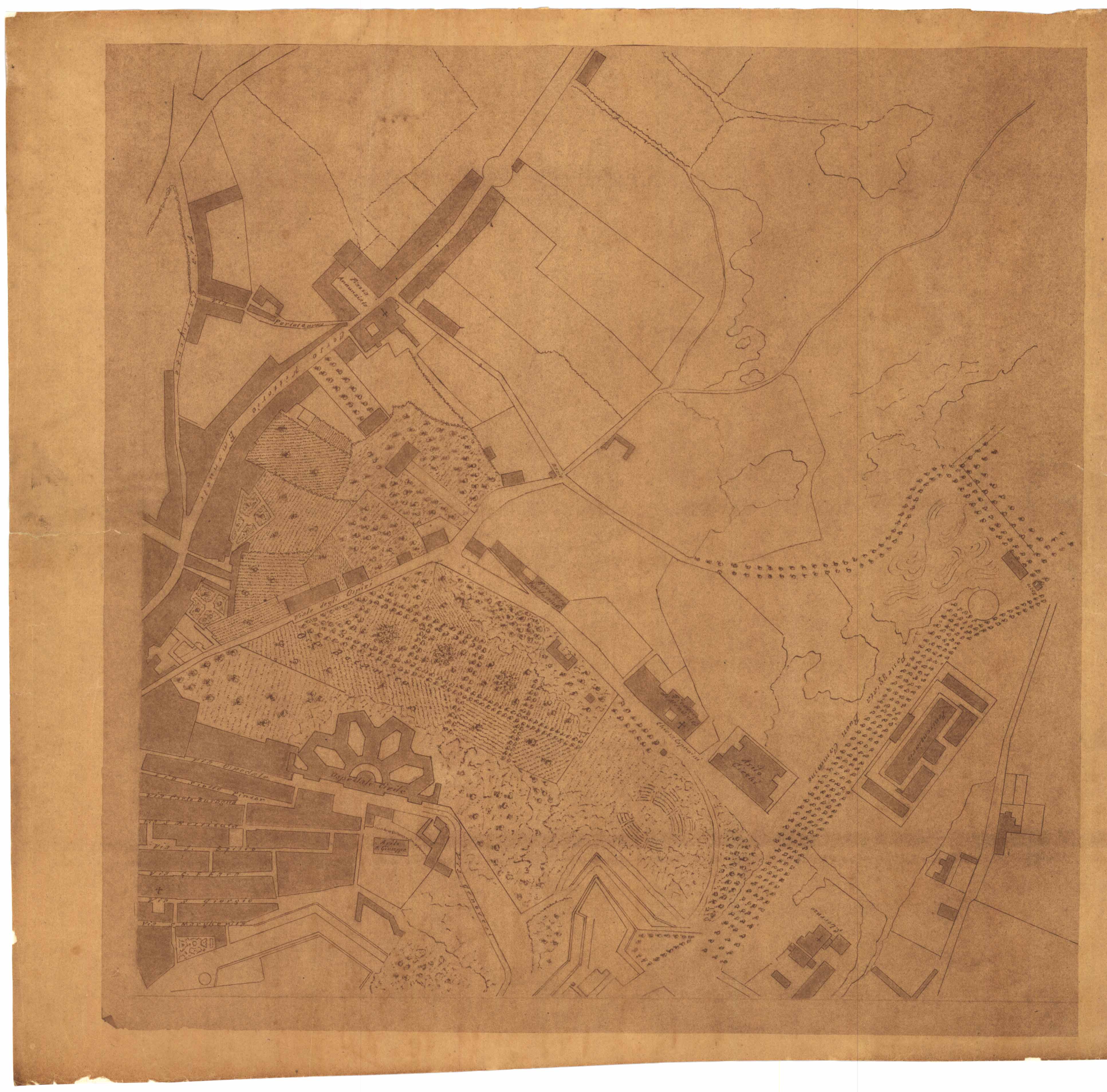 - Il disegno rappresenta la topografia della zona intorno al Ponte della Scaffa.