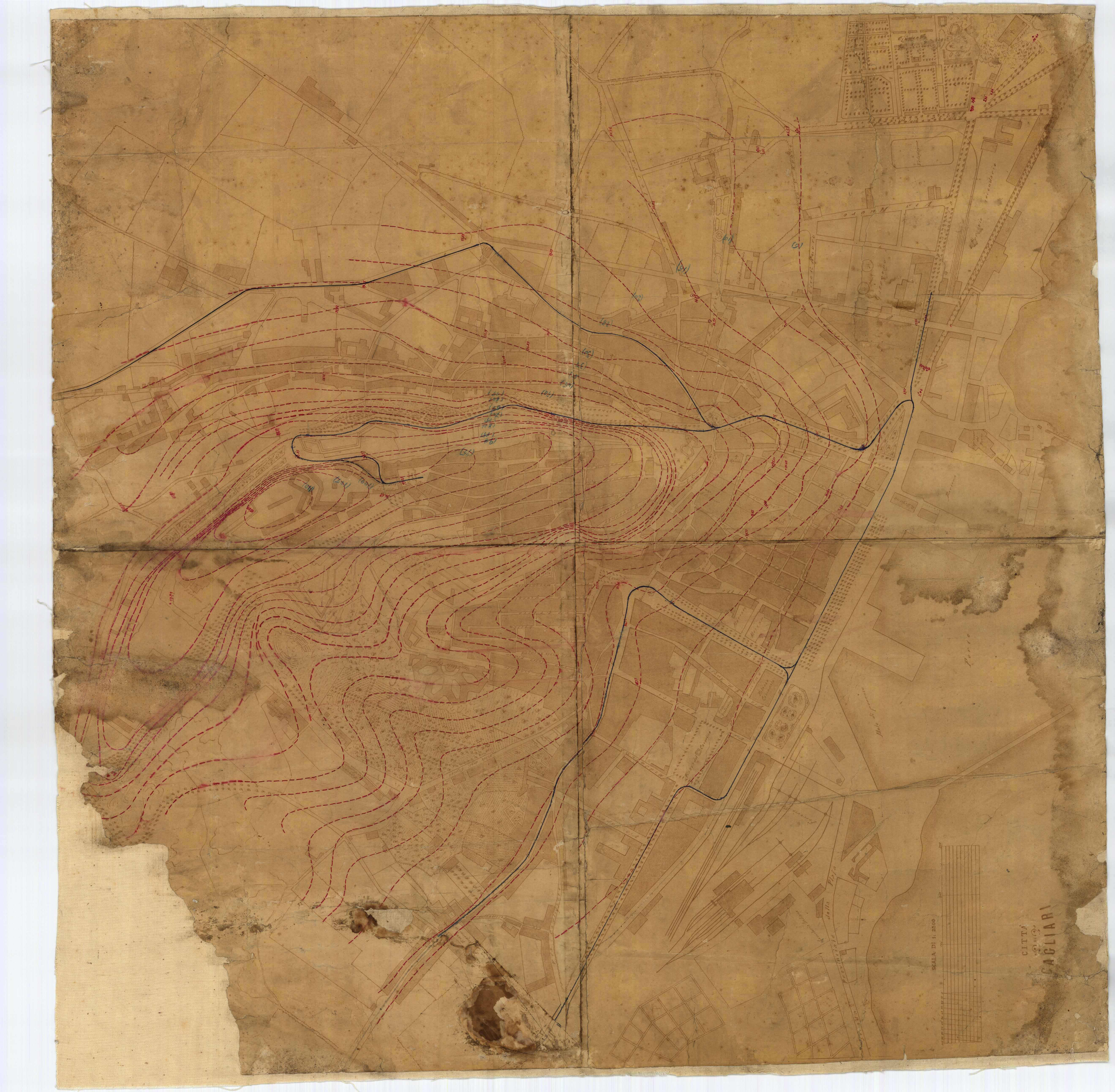 - Si tratta della pianta della città di Cagliari con indicate le curve di livello.