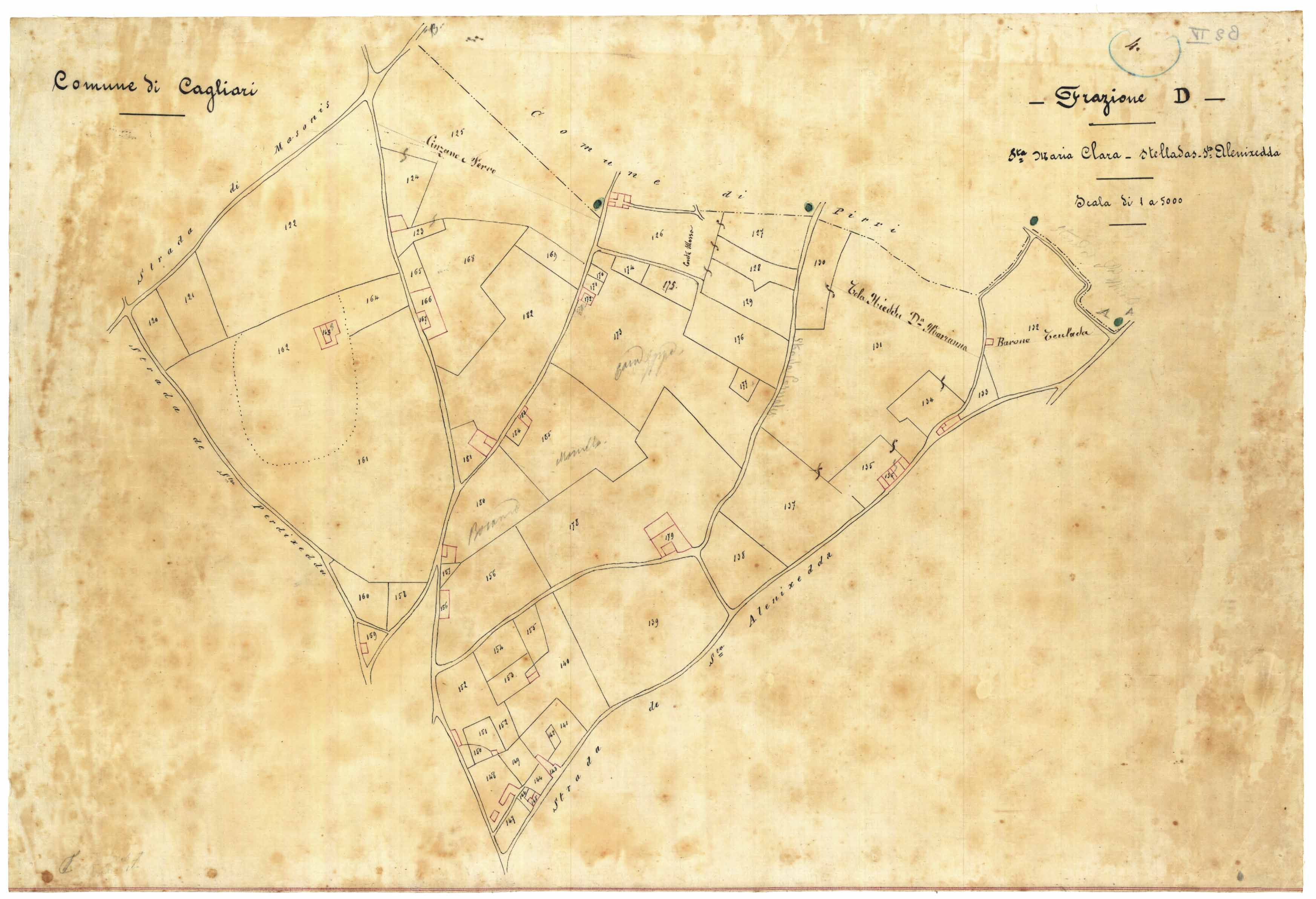- Si tratta della mappa catastale relativa alle frazioni di Cagliari denominate Santa Maria Clara, Stelladas e Santa Allenixedda.