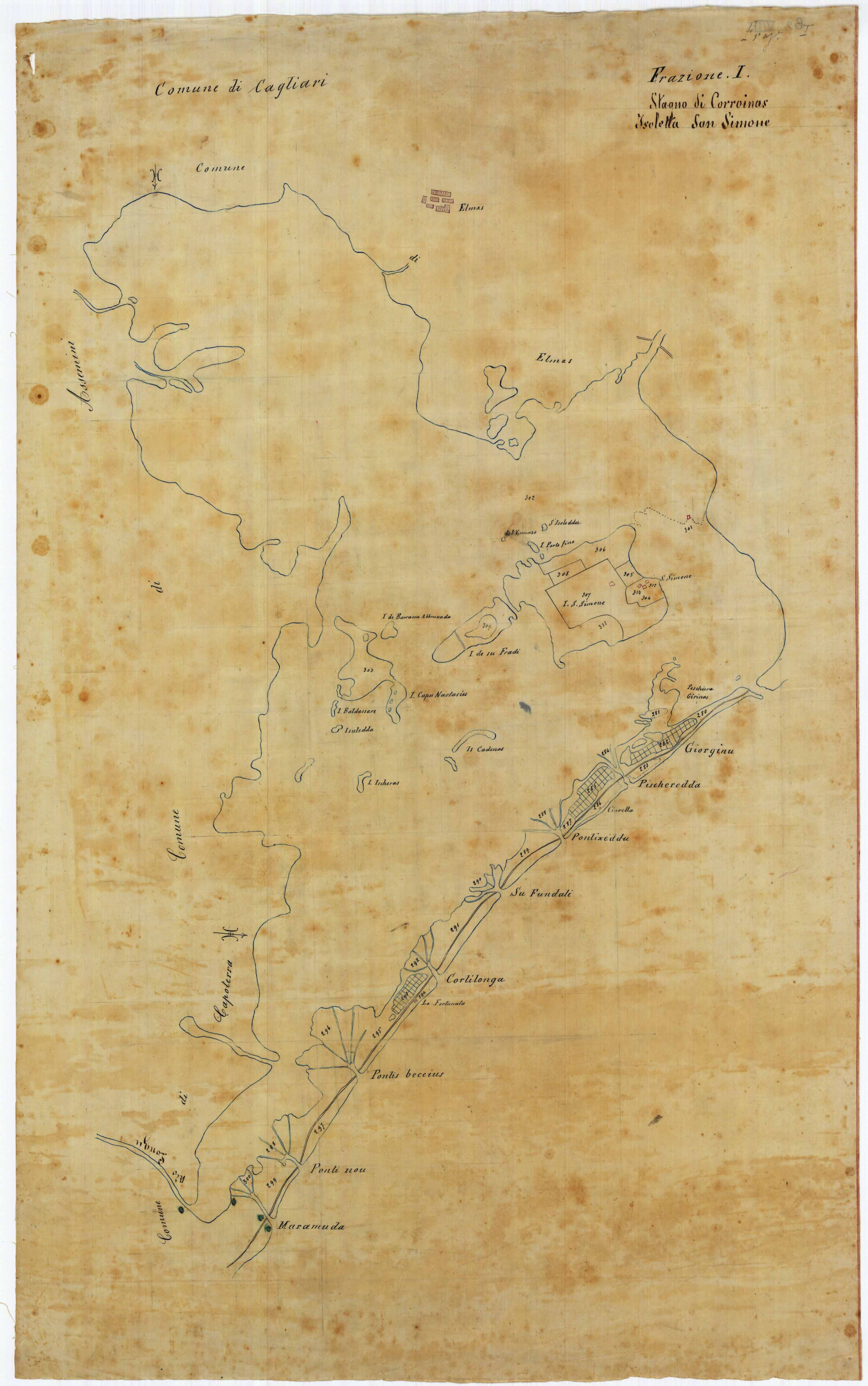 - Si tratta della mappa catastale relativa alle frazioni di Cagliari denominate Stagno di Corroinas e Isoletta San Simone