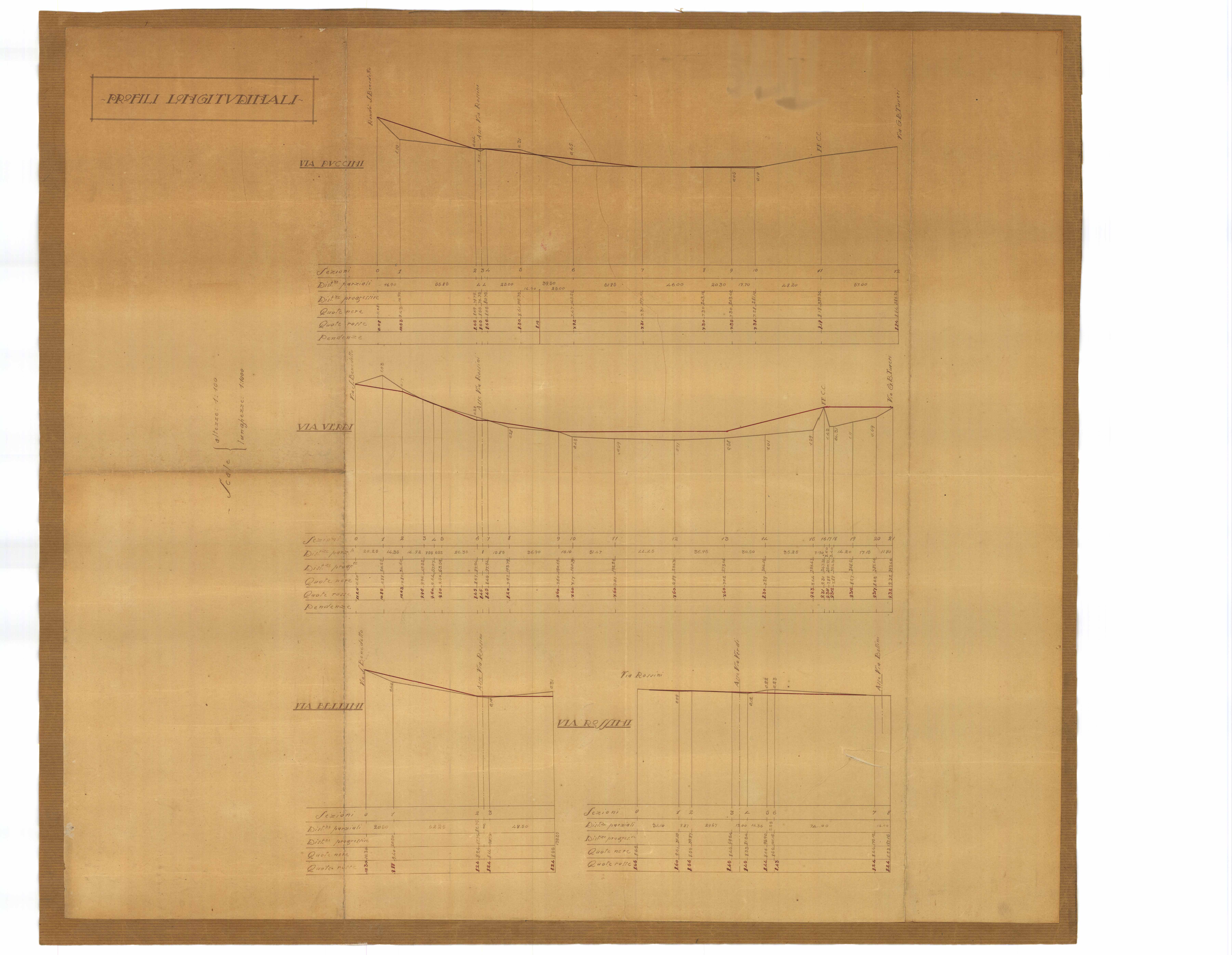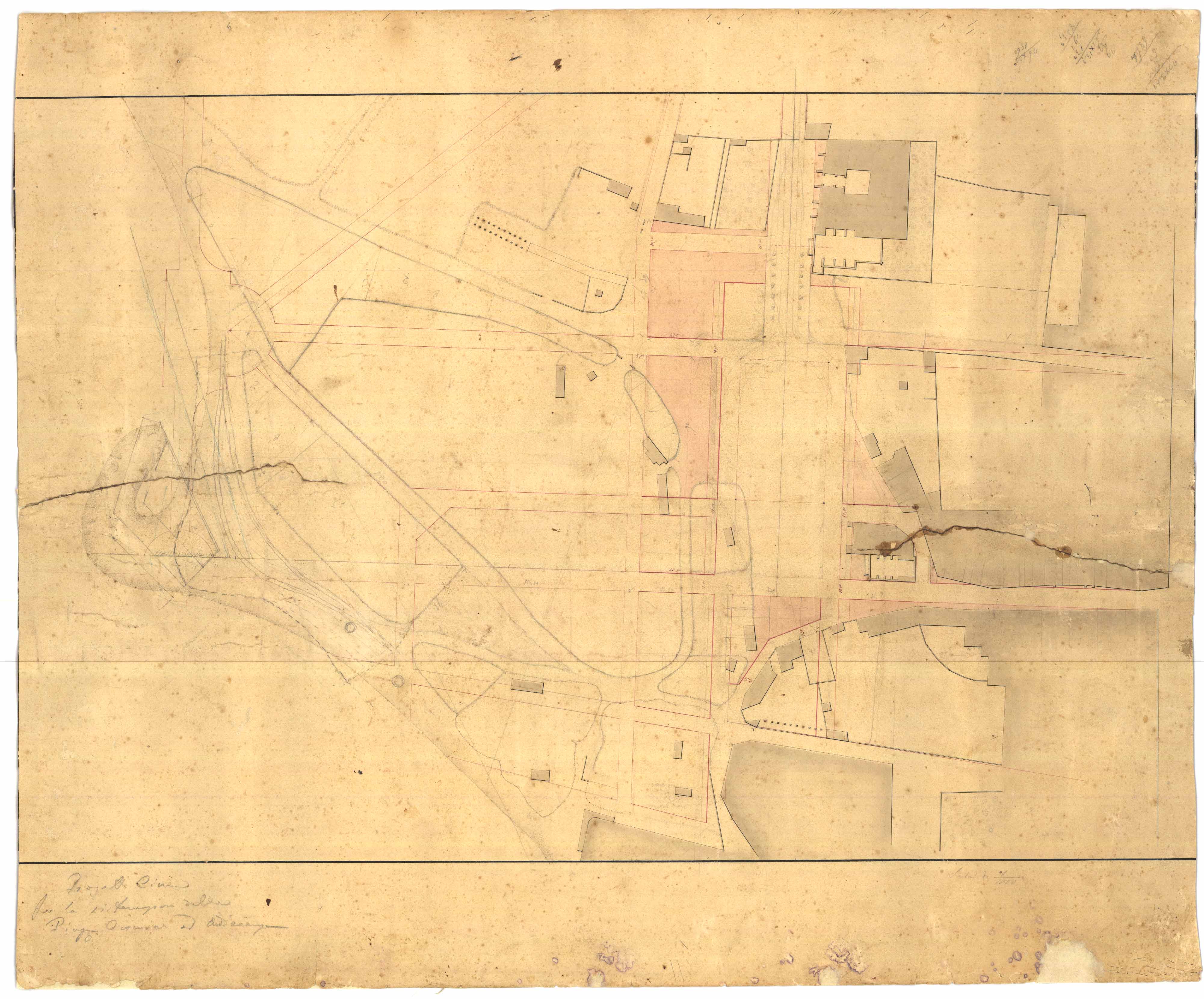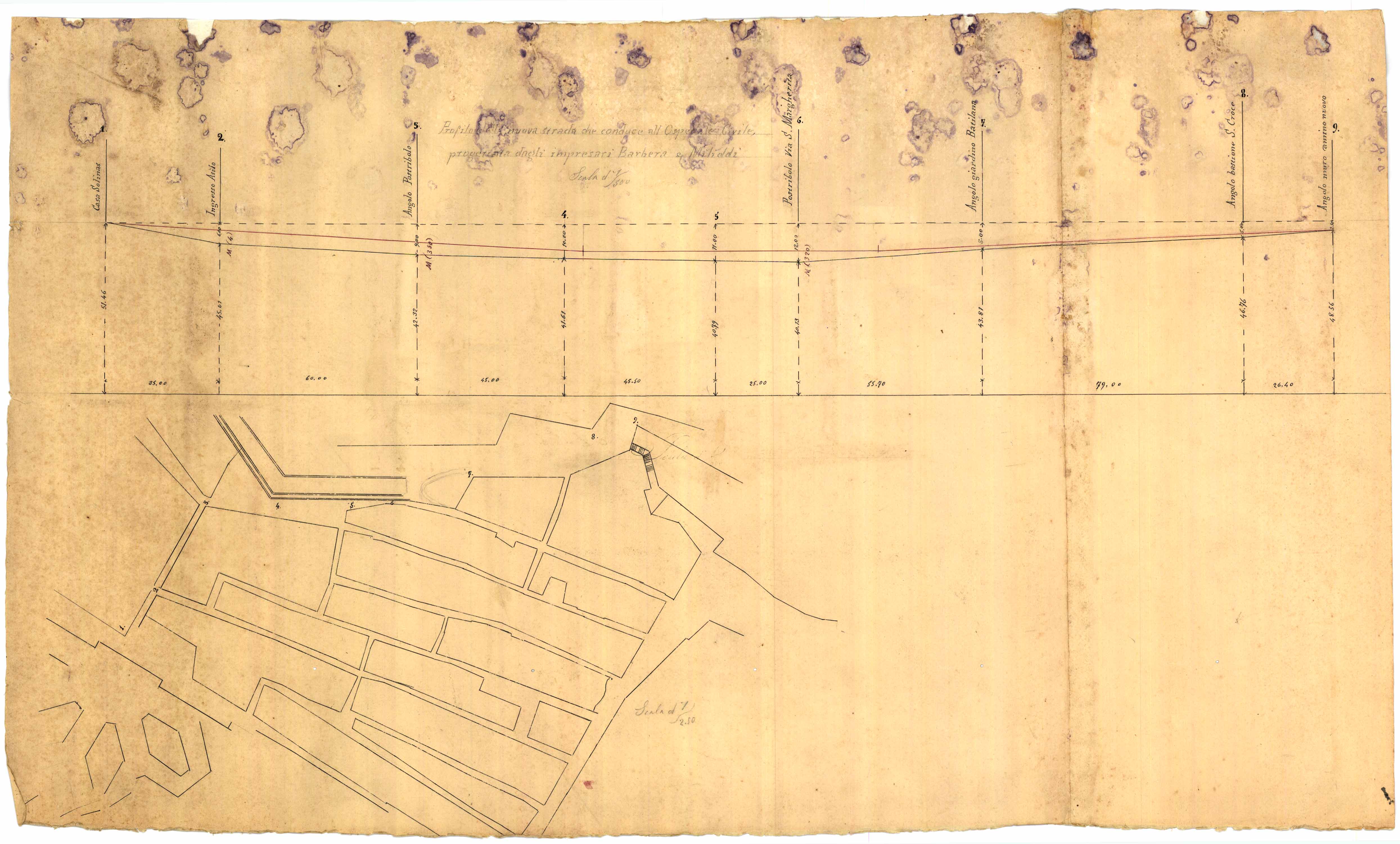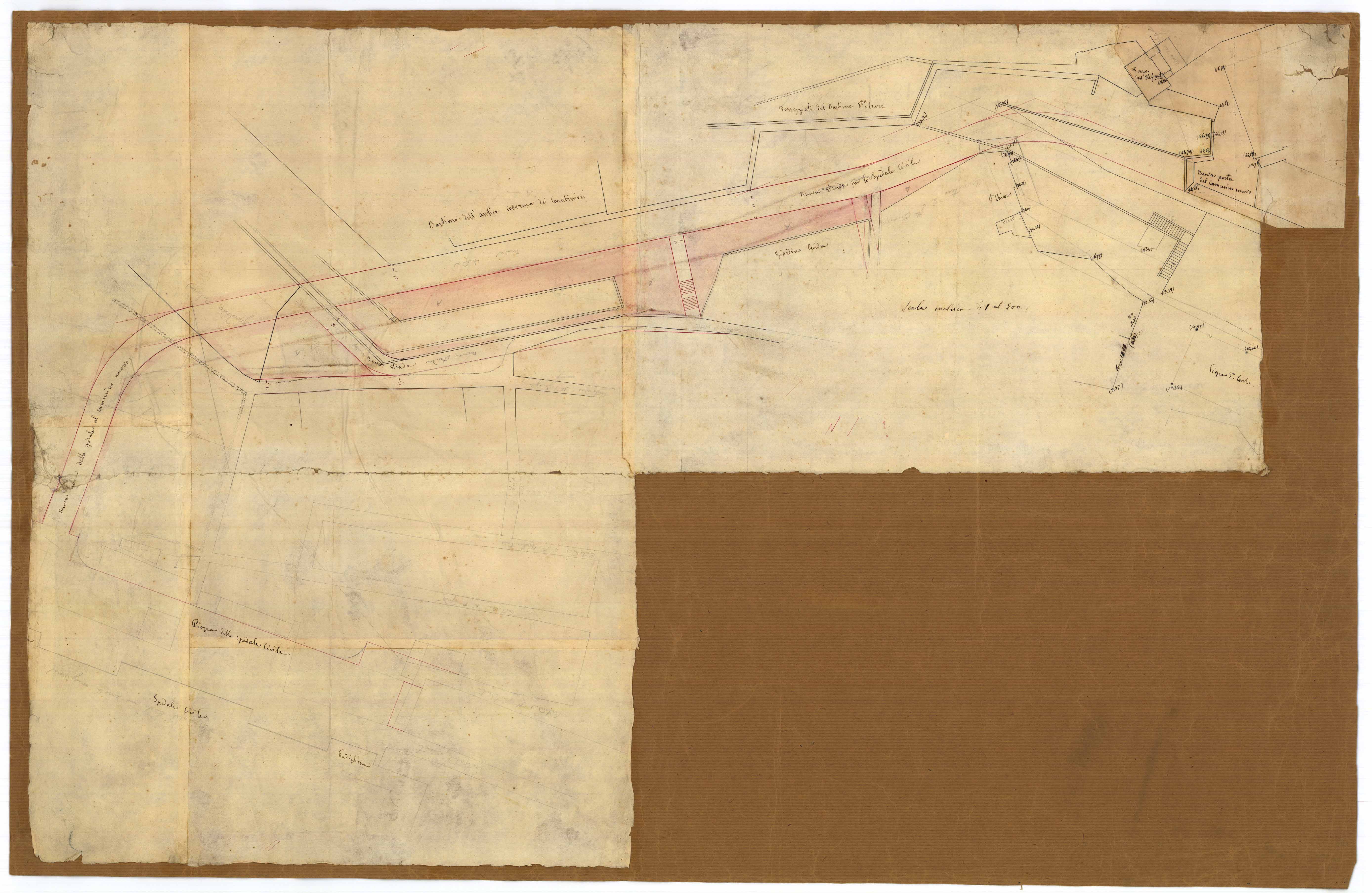 - Progetto di sistemazione della strada carrettiera da porta S. Agostino per le vie delle Concie e di S. Francesco con sbocco laterale al bastione della darsena.
