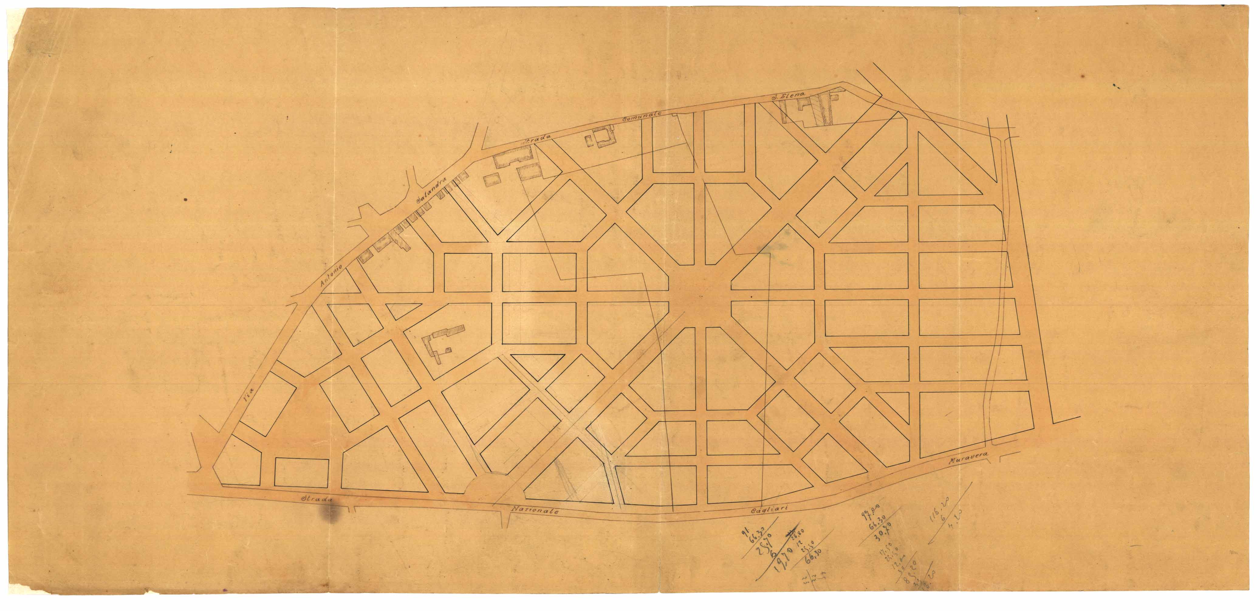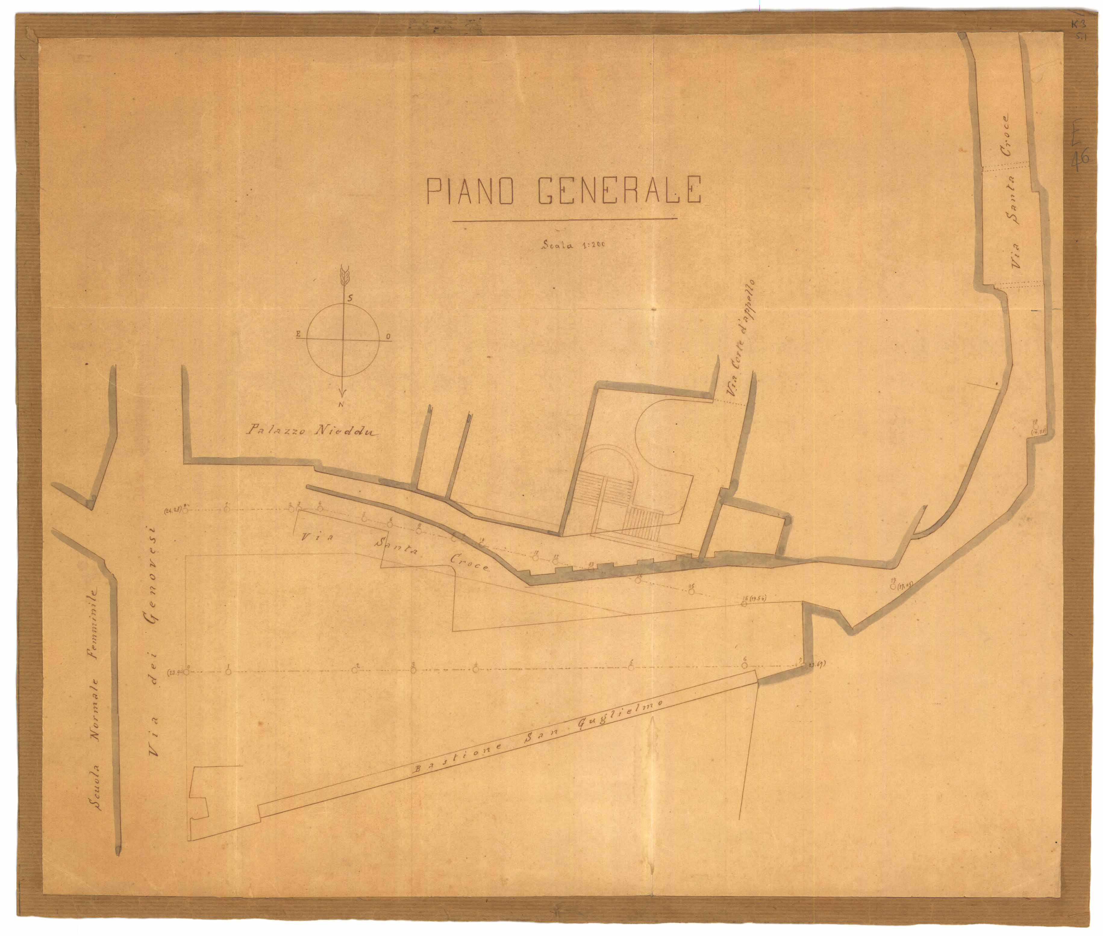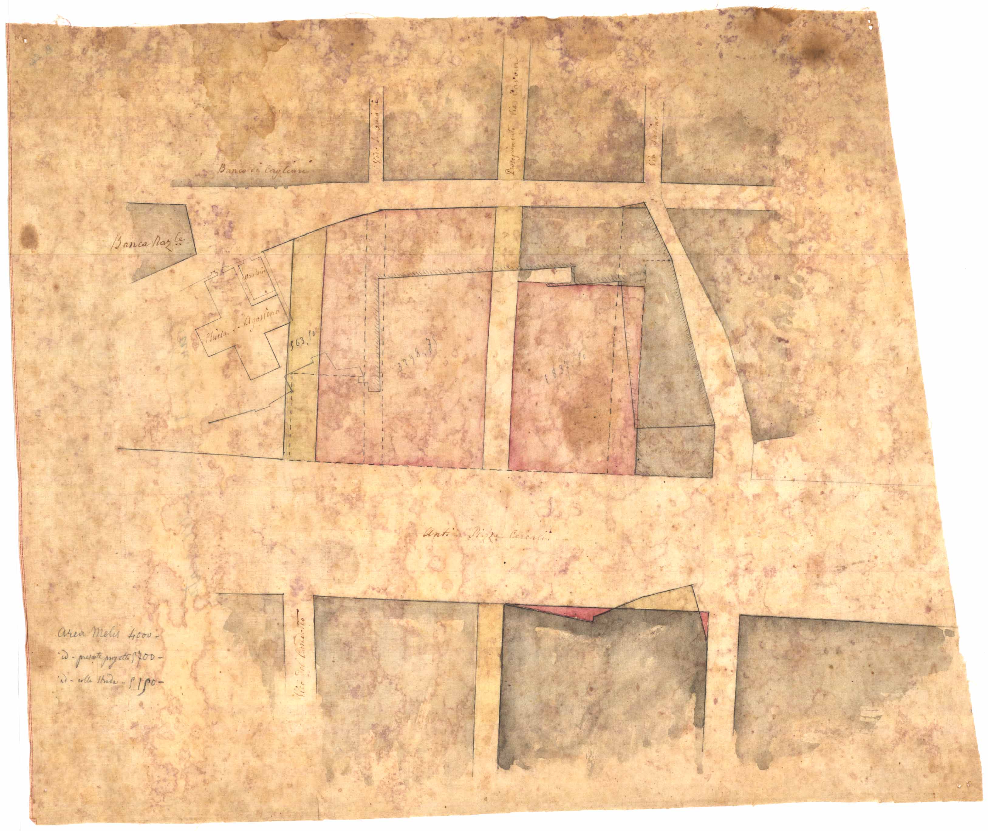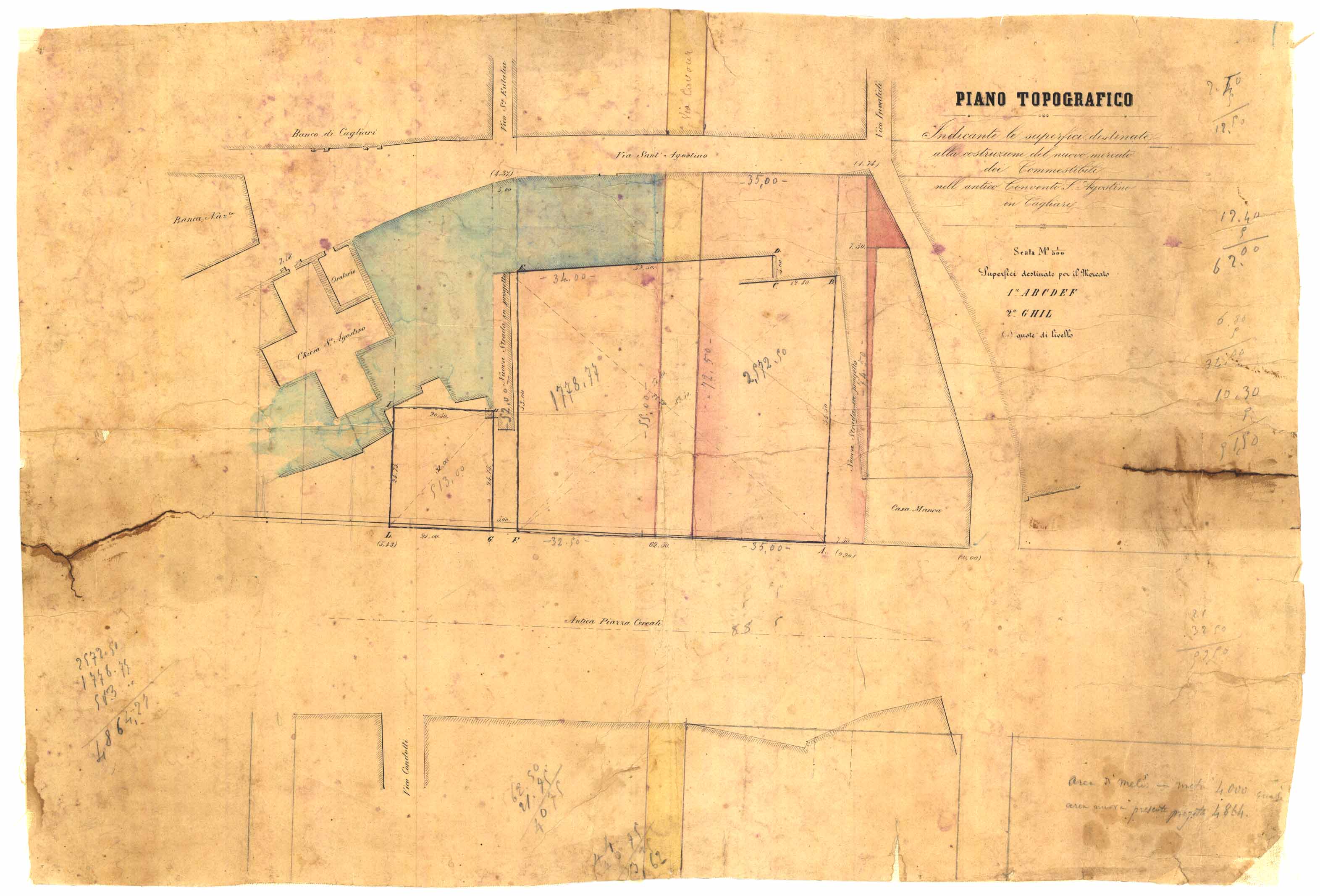 - Piano topografico indicante le superfici destinate alla costruzione del nuovo mercato di commestibili nell'antico convento S. Agostino in Cagliari