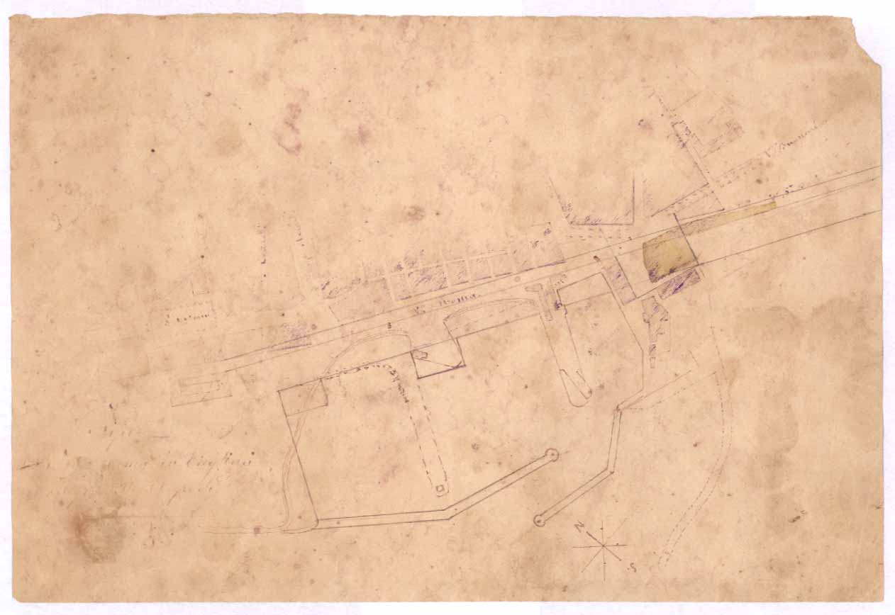 - Schizzo del progetto per la sistemazione della nuova via di Circonvallazione e planimetria dell'area circostante la linea della ferrovia complementare