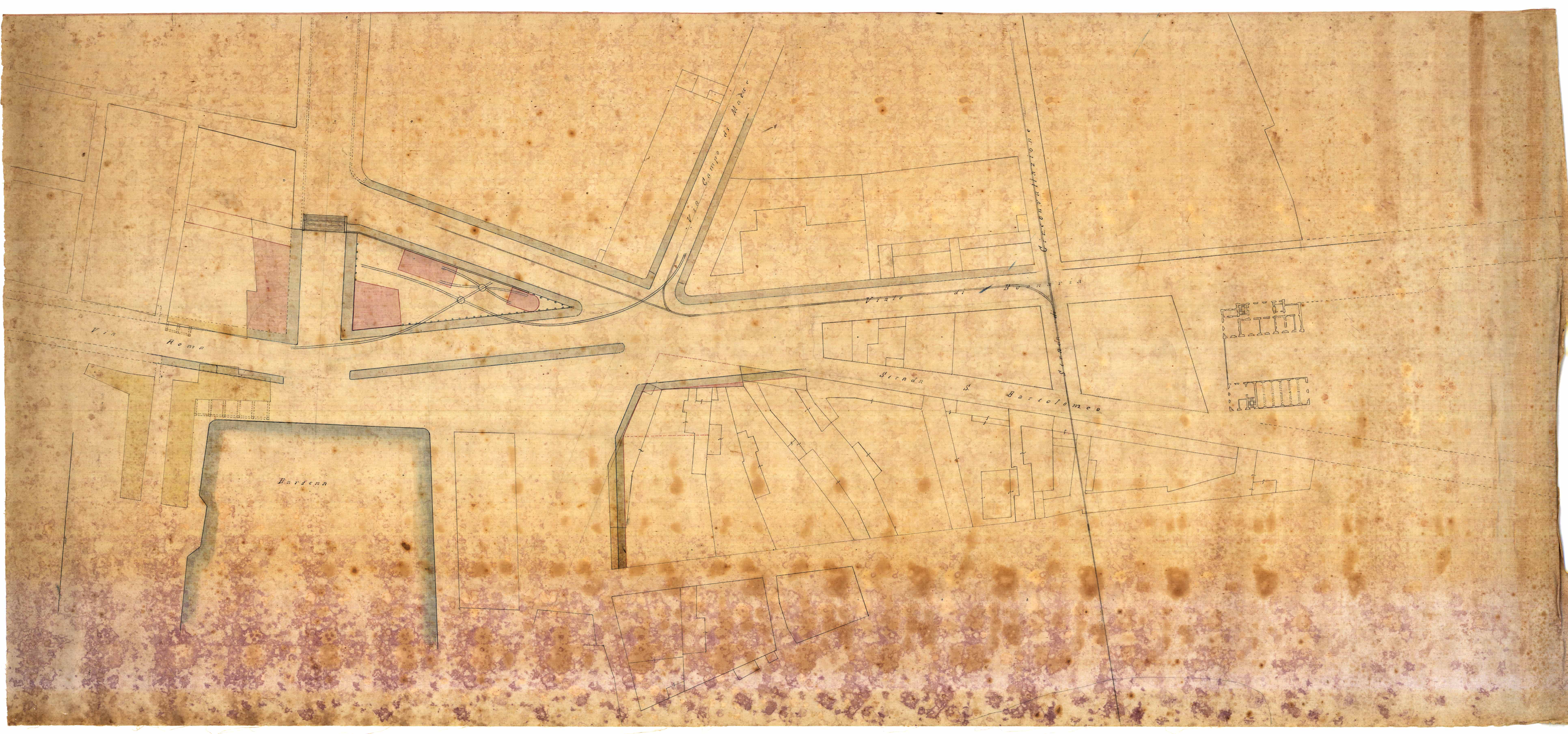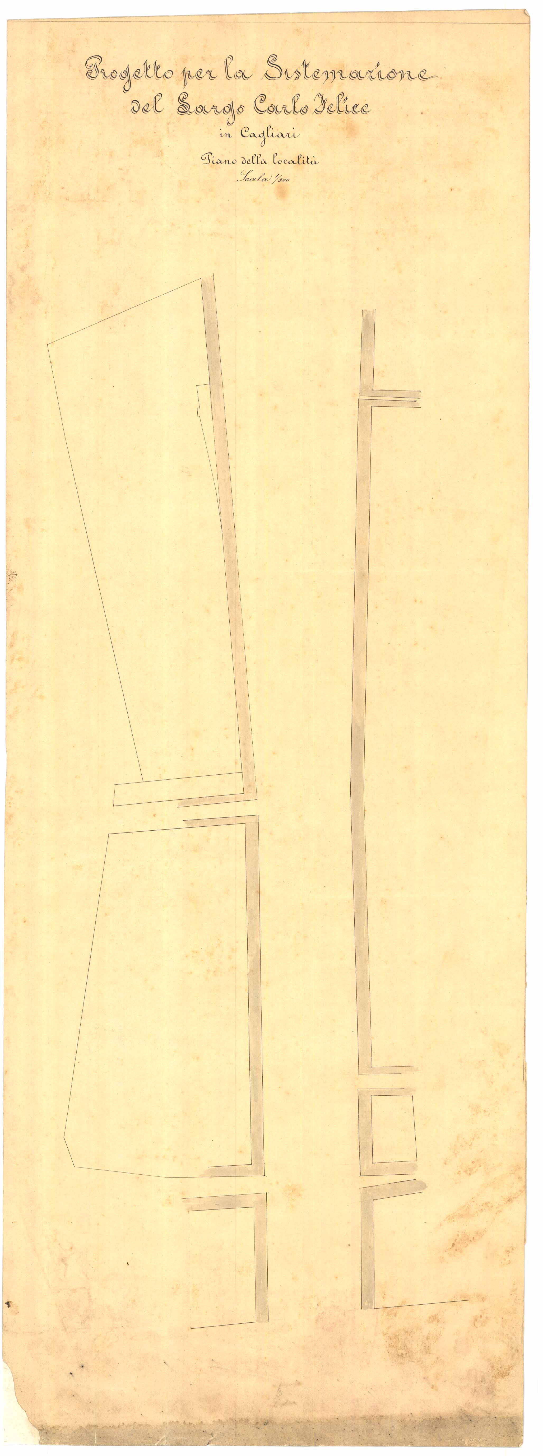 Sezione E: Sistemazioni urbane- Piano topografico che presenta il progetto di riduzione e di riforma della piazza del Carmine nel sobborgo di Stampace, da destinarsi per la vendita dei cereali, ed inoltre la continuazione e rettilineamento fino alla sponda mare della strada detta di San Niccolò.