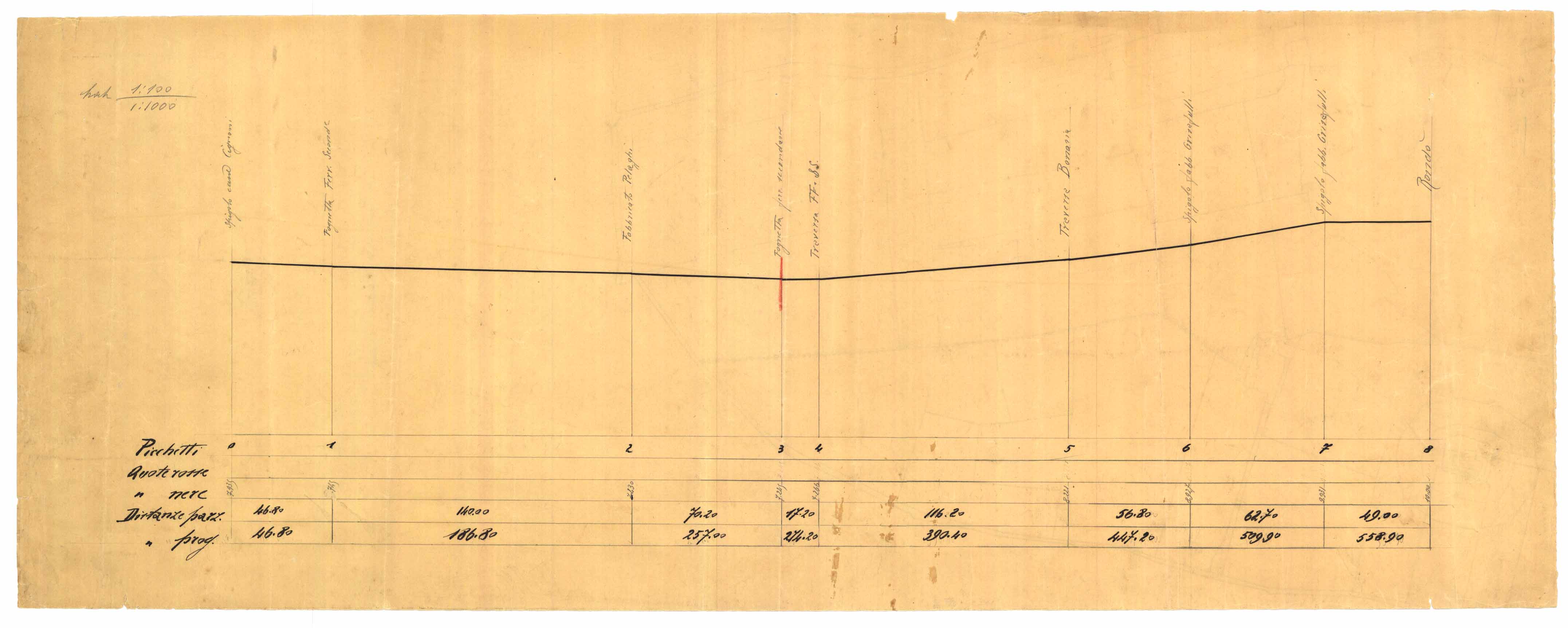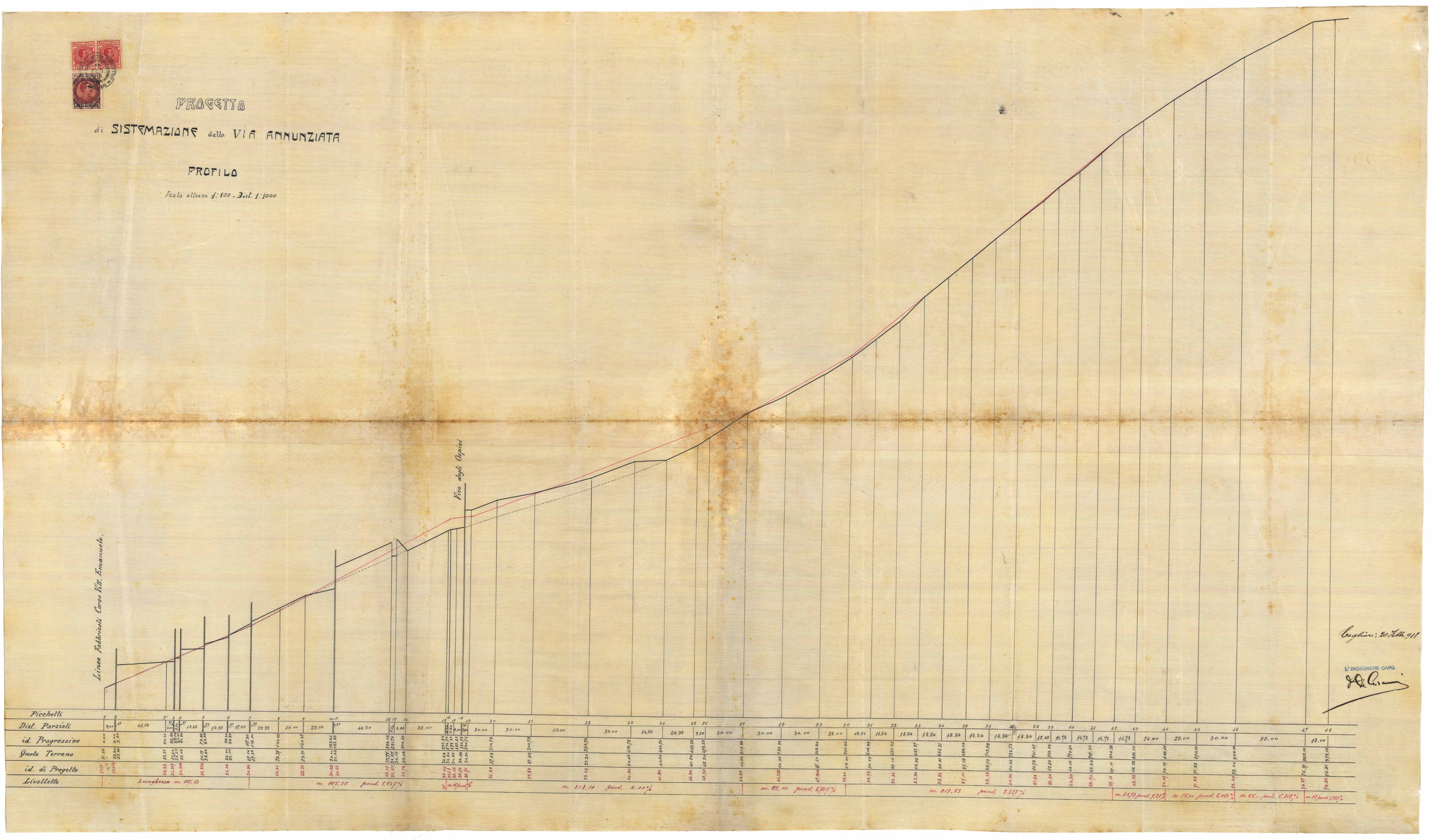 - Profilo longitudinale via Bainsizza. Scavo in roccia per apertura e sistemazione strada.